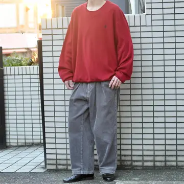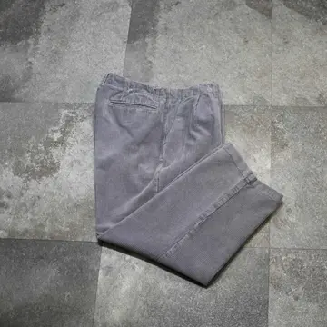 SIZE:- ウエスト88cm 総丈95cm 股下65.5cm わたり36cm 裾幅25cm fabric/質感よりcotton 着用画像 173cm/58kg ずどんとワイドなコーデュロイパンツ。 灰色に少し紫色を混ぜたような、独特な色合いと 太畝のコーデュロイ生地から、存在感を纏う1本です。 暗めのカラーだけでなく、 こんな落ち着いたカラーでありながら、 存在感のある1本を手元にどうでしょう。 ※右腿あたりに薄い汚れあり。 購入前に、必ずご連絡お願い致します。 ※撮影状況により、実物と多少色が異なる 場合がございます。 ※古着を取り扱っているため、気づかない汚れや ほつれがある場合がございます。 ※サイズは着用感で選んでおり、 表記サイズではございません。 表記サイズは説明欄の最初に記載しております。 古着 オーバーサイズ old vintage ヴィンテージ used 80's 90's アメリカ古着 ユーロ古着 POLO RALPH LAUREN Eddie Bauer OLD GAP LANDS' END ランズエンド LLBean エルエルビーン オールドギャップ エディーバウアー ラルフローレン ブルックスブラザーズ Brooks Brothers 灰色 太畝 などがお好きな方 #vintage #オーバーサイズ #old #used #90s #80s #古着 #ヴィンテージ #アメリカ古着 #ユーロ古着 #LLBean #エルエルビーン #EddieBauer #エディーバウアー #oldgap #オールドギャップ #LANDSEND #ランズエンド #NAUTICA #ノーティカ #ラルフローレン #POLORALPHLAUREN #ブルックスブラザーズ #BrooksBrothers #コーデュロイパンツ #ワイドパンツ #タックパンツ #スラックス