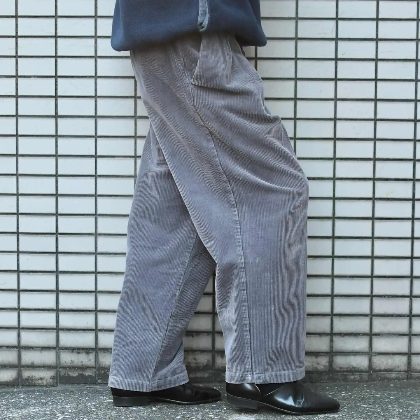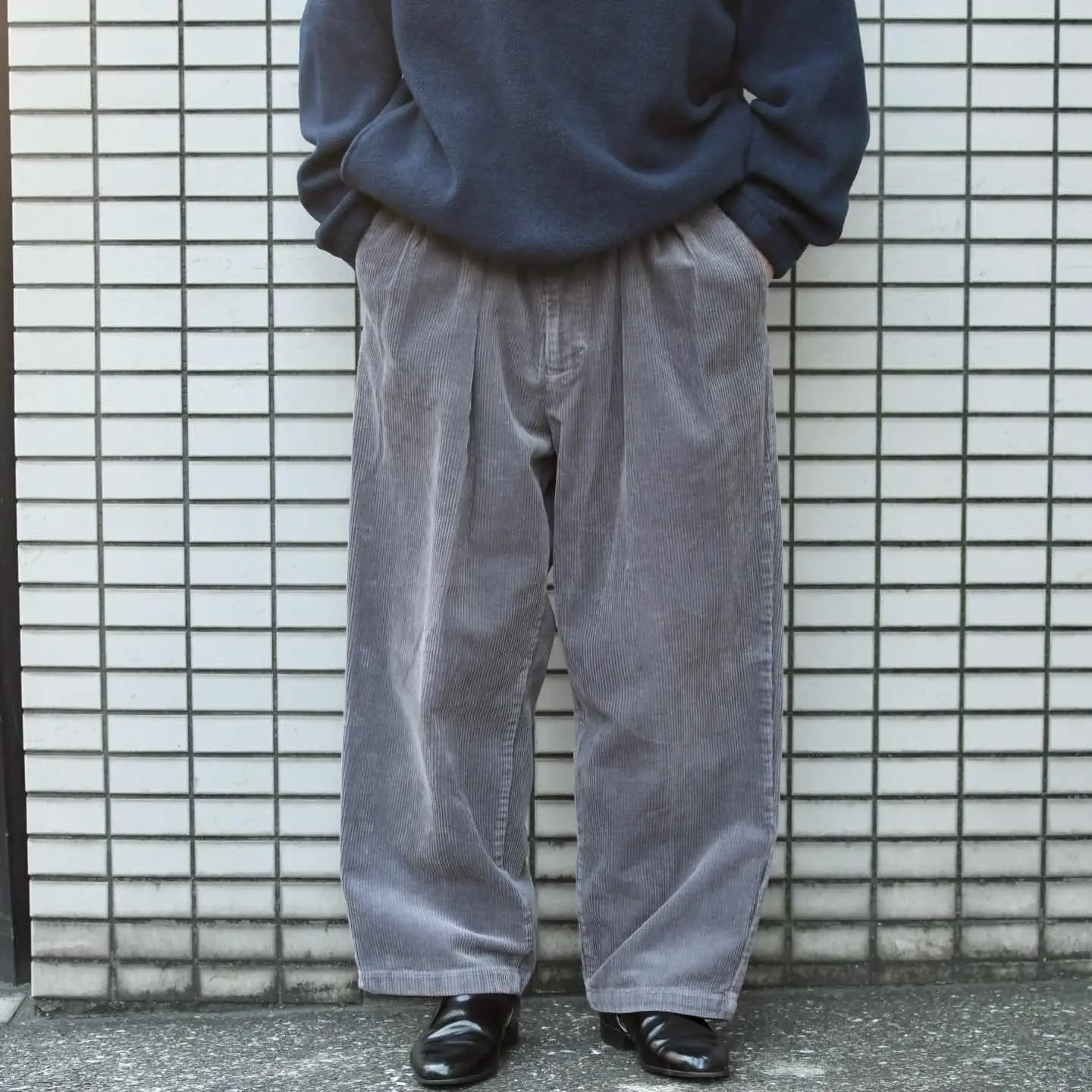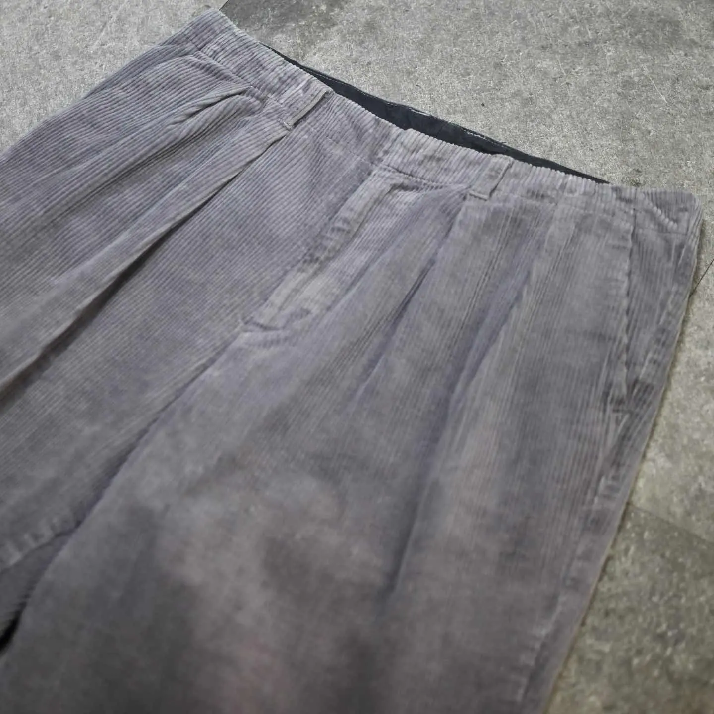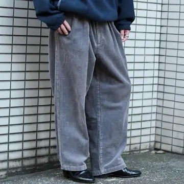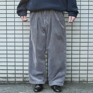 古着 グレー コーデュロイパンツ ワイドパンツ スラックス タックパンツ 灰色