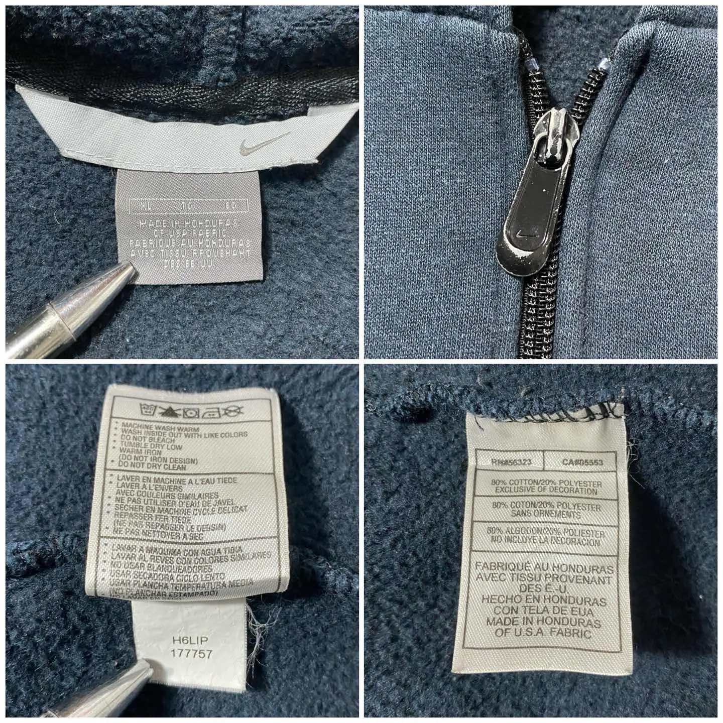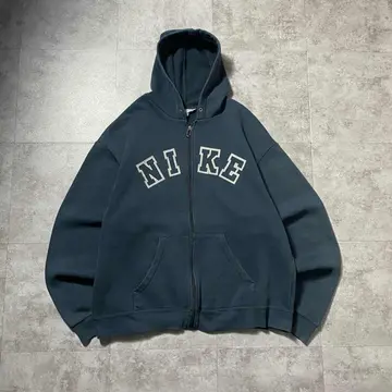 【XL】00s NIKE ナイキ アーチロゴ プリント ダメージ ジップパーカー