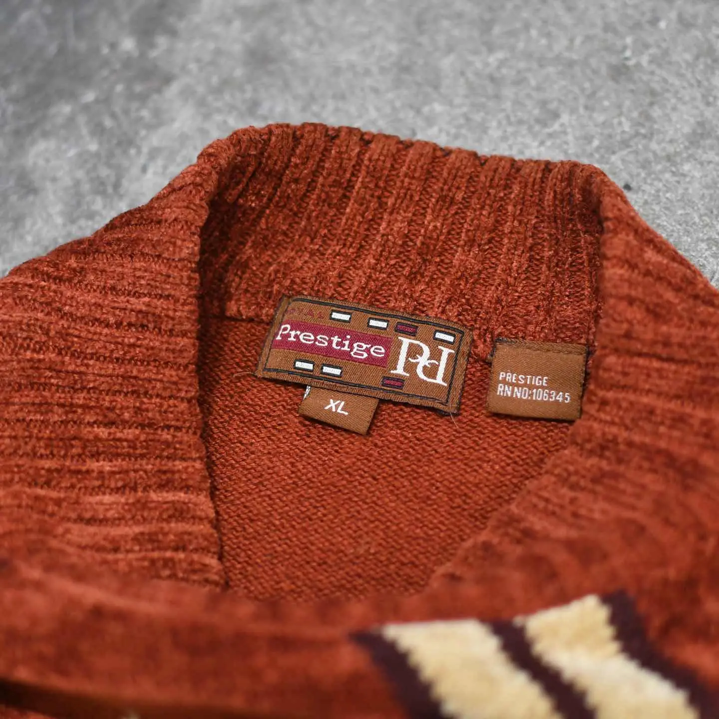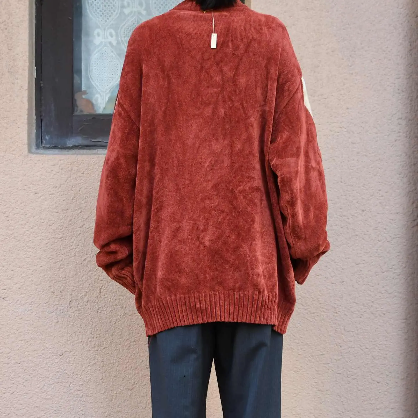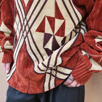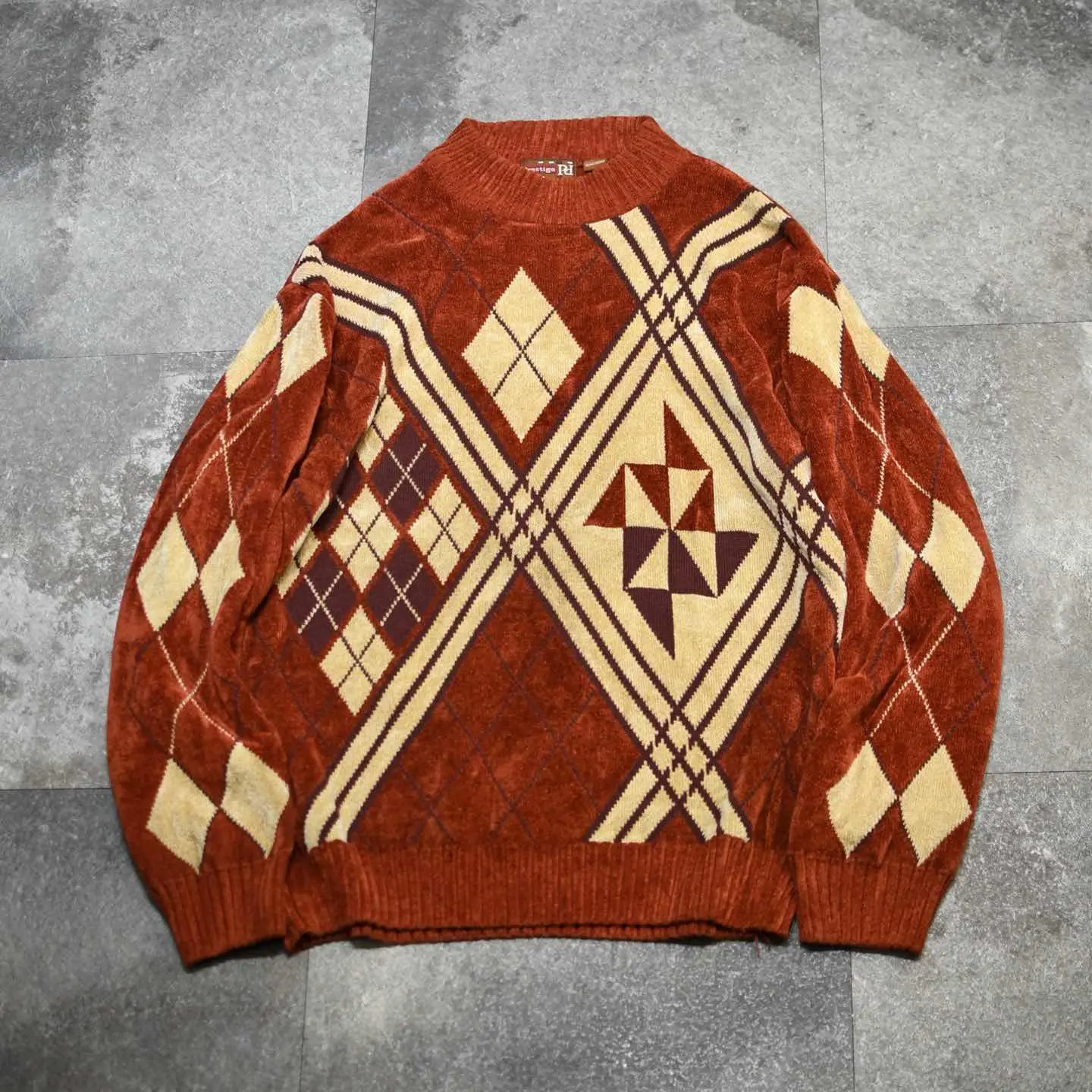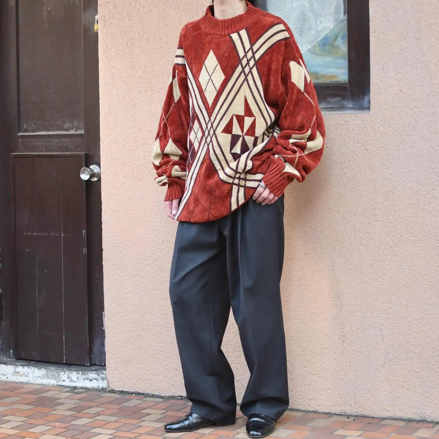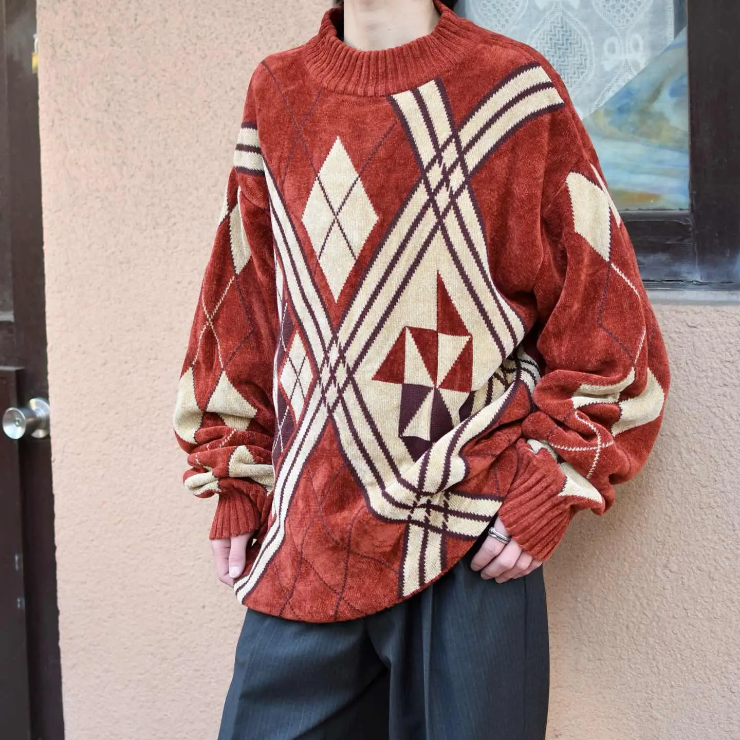 古着 オーバーサイズ アーガイル柄 モールニット デザインニット ニット レッド