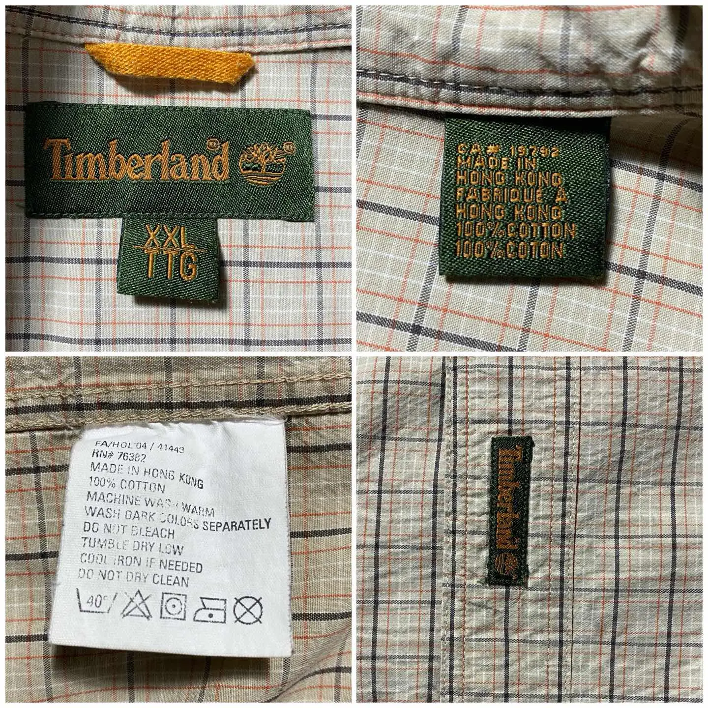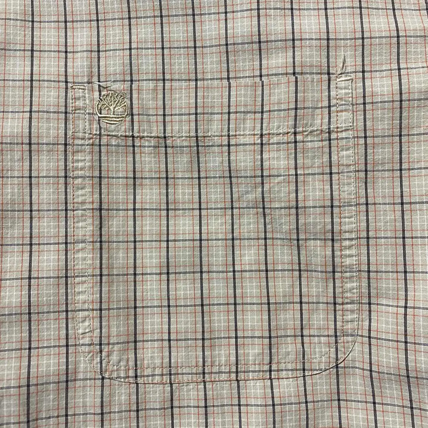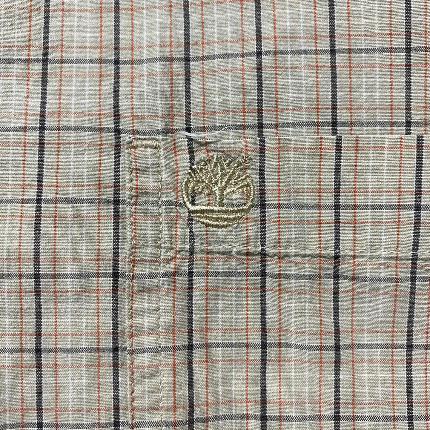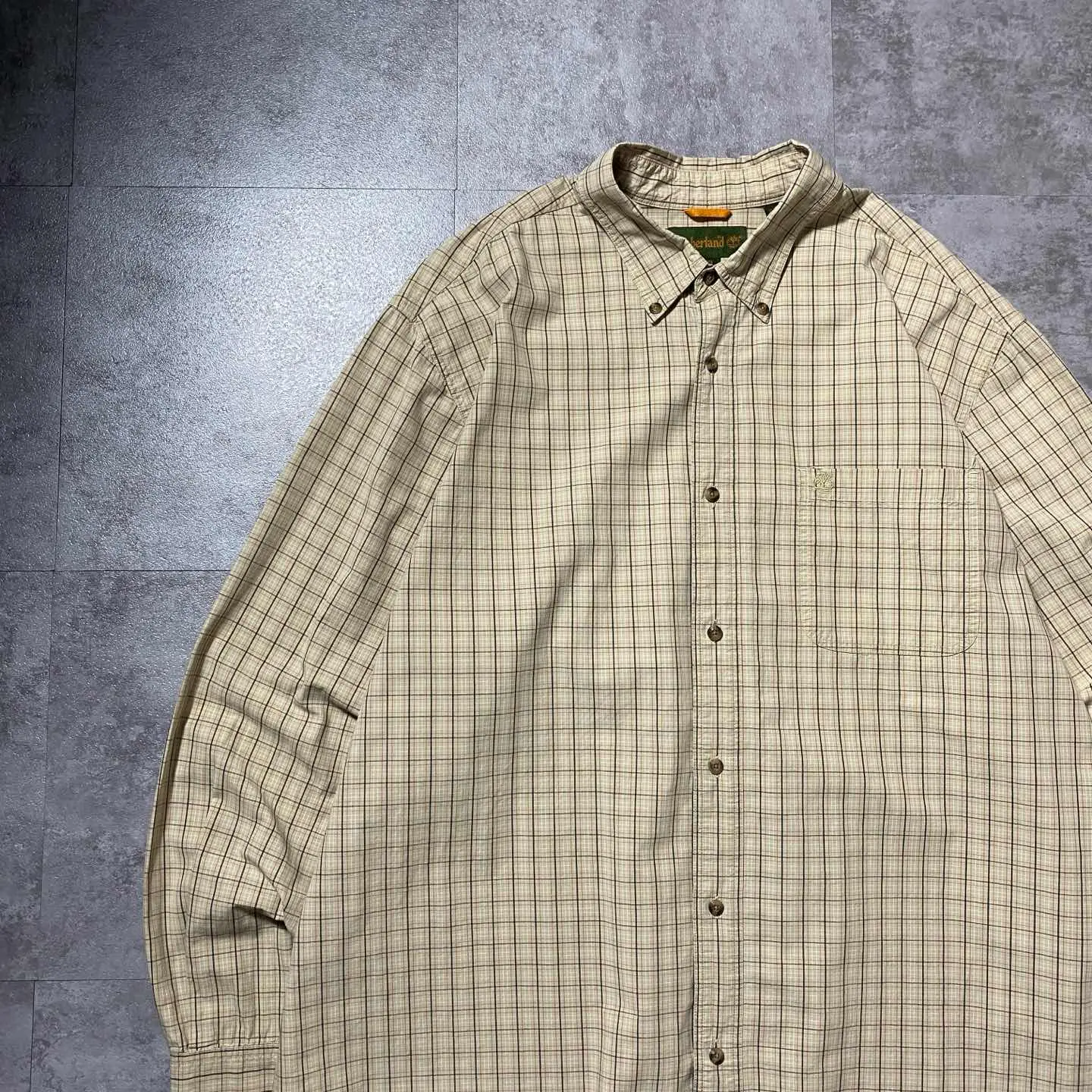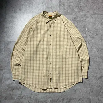 90s ティンバーランド 刺繍ロゴ 胸ポケット チェック総柄 ボタンダウンシャツ
