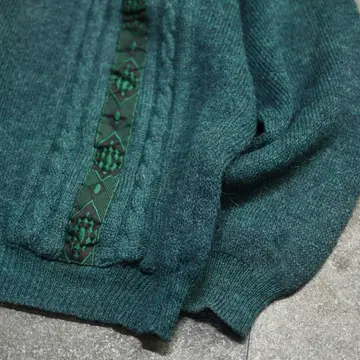 SIZE:52 着丈67cm 肩幅58cm 身幅67cm 袖丈61cm fabric/acrylic・wool・alpaca 着用画像 173cm/58kg ニットの中でもデザイン性に富んだ逸品。 編み込みのデザインだけでなく、左右対称に施された肩のリアルレザーやフロントのリボン。 またアルパカの素材を含むことで毛足が長く、 他よりも上品さを纏い、コーデに落とし込むことが 出来るのも◎ レザーパンツやレザージャケットなど、 スタイリングの一部にレザーを落とし込んで 纏まりのあるコーデで楽しみたいなと。 ※撮影状況により、実物と多少色が異なる場合が ございます。 ※古着を取り扱っているため、気づかない汚れや ほつれ等がある場合がございます。 ※サイズは着用感で選んでおり、 表記サイズは説明欄の最初に記載しております。 古着 オーバーサイズ old vintage ヴィンテージ used 80's 90's アメリカ古着 ユーロ古着 POLO RALPH LAUREN Eddie Bauer OLD GAP LANDS' END ランズエンド LLBean エルエルビーン オールドギャップ エディーバウアー ラルフローレン ブルックスブラザーズ Brooks Brothers 緑 ウールニット アクリルニット セーター などがお好きな方 #vintage #オーバーサイズ #old #used #90s #80s #古着 #ヴィンテージ #アメリカ古着 #ユーロ古着 #LLBean #エルエルビーン #EddieBauer #エディーバウアー #oldgap #オールドギャップ #LANDSEND #ランズエンド #NAUTICA #ノーティカ #ラルフローレン #POLORALPHLAUREN #ブルックスブラザーズ #BrooksBrothers #ニット #セーター #デザインニット #ウールニット #アクリルニット