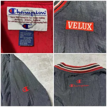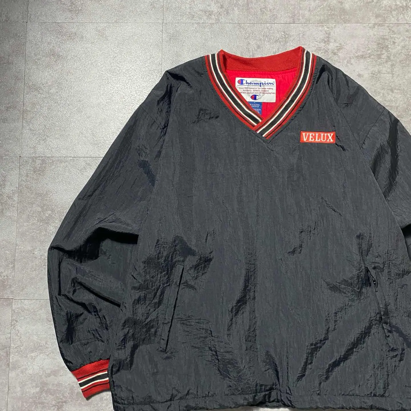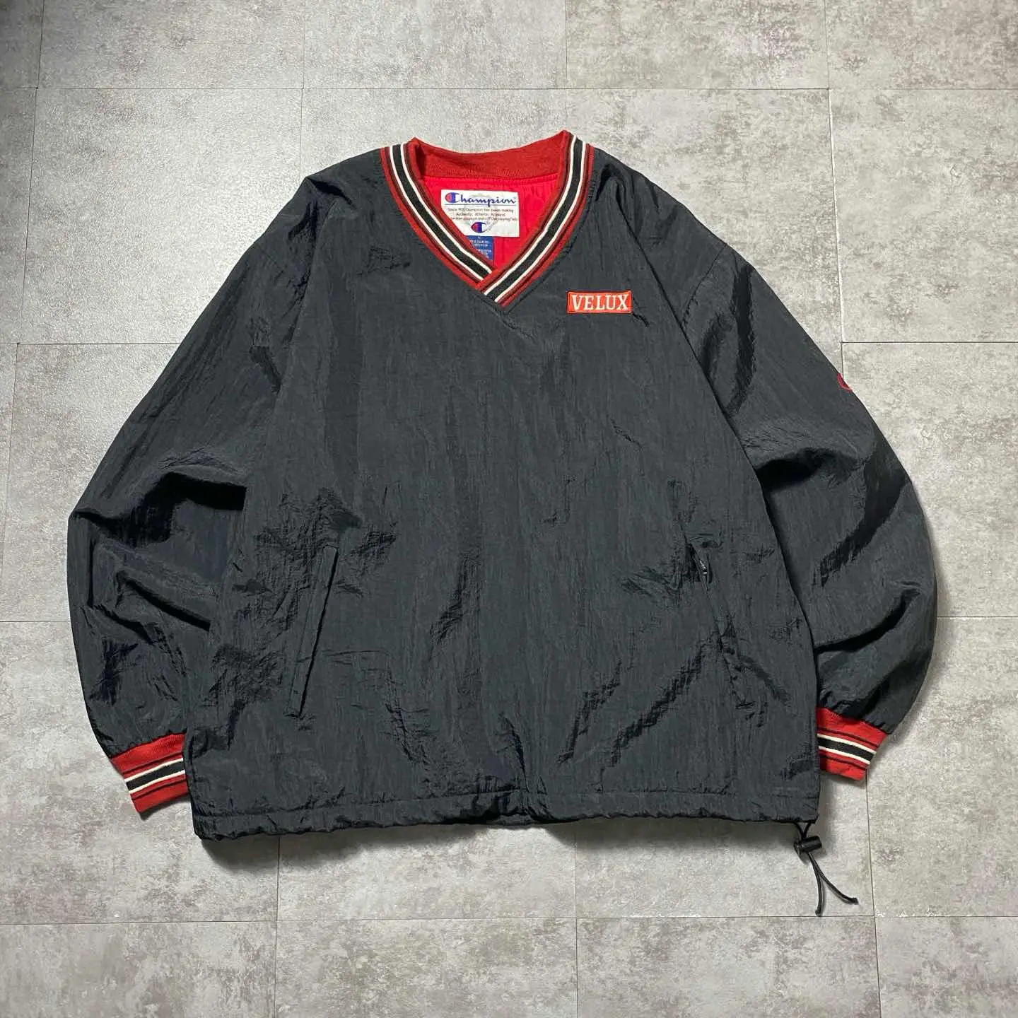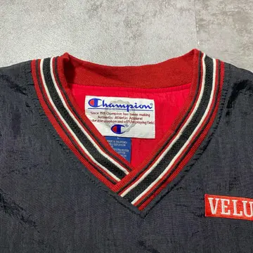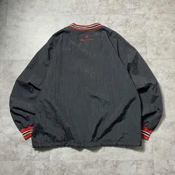 90s チャンピオン 刺繍企業ロゴ ラインリブ ナイロンプルオーバー