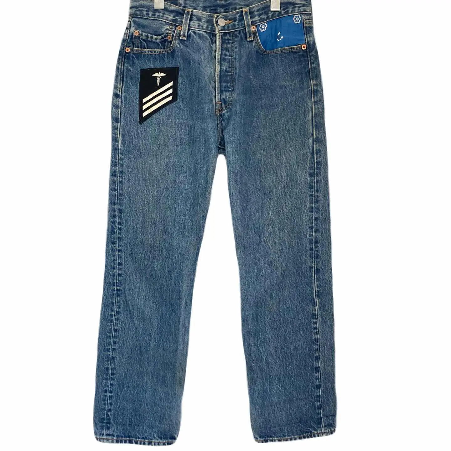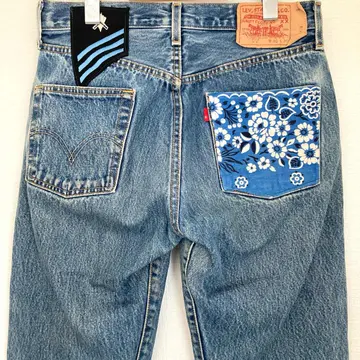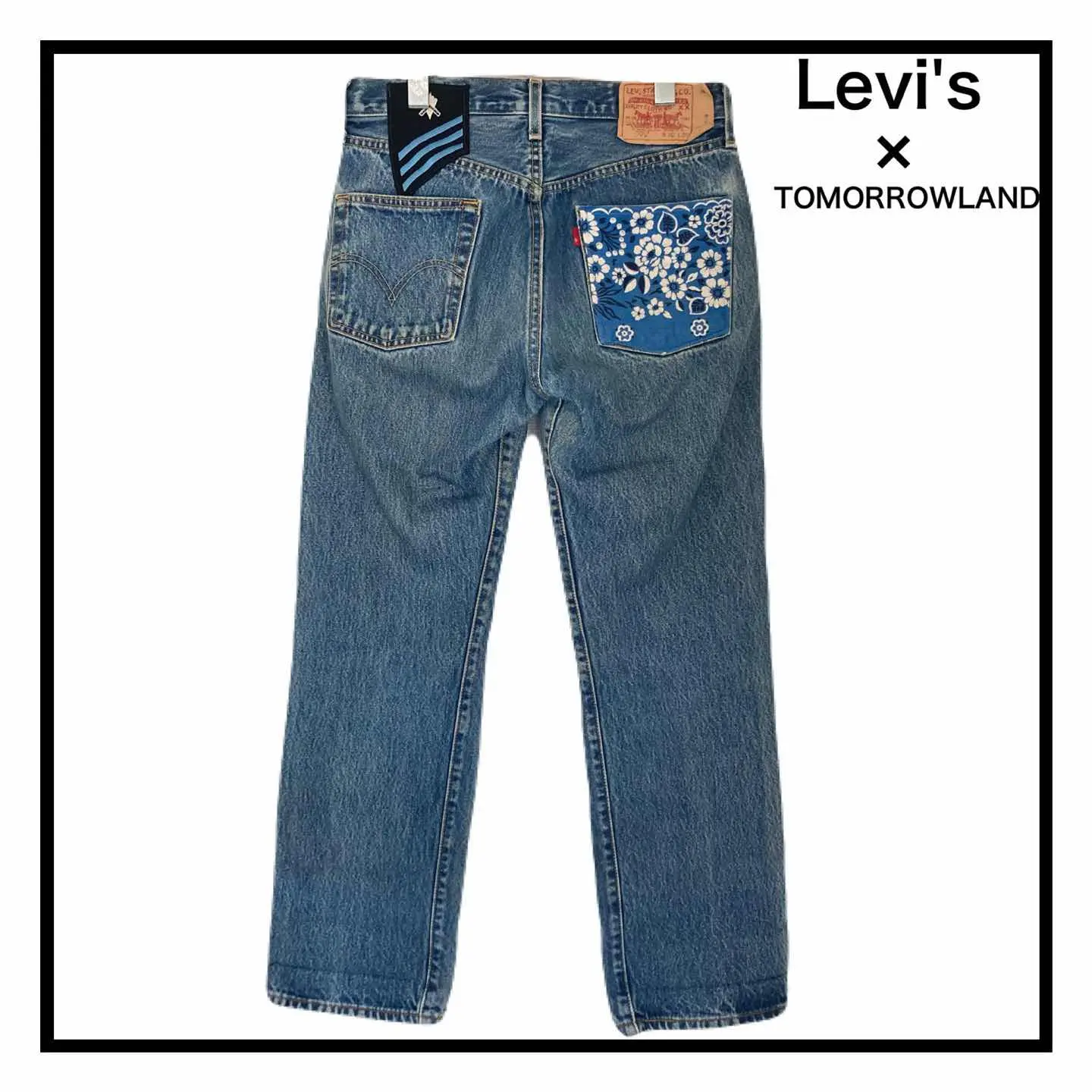 ブランド リーバイス トゥモローランド 商品名 リーバイス 501XX 米国製 和柄 コラボ デニムパンツ トゥモローランド メンズ レディース 刺繍 紙パッチ ボタンフライ サイズ W30 L30 ウエスト72㎝ 総丈96㎝ 股下68㎝ わたり29㎝ 裾幅20㎝ カラー ブルー系 #ABY280 #ふくしるべのパンツ