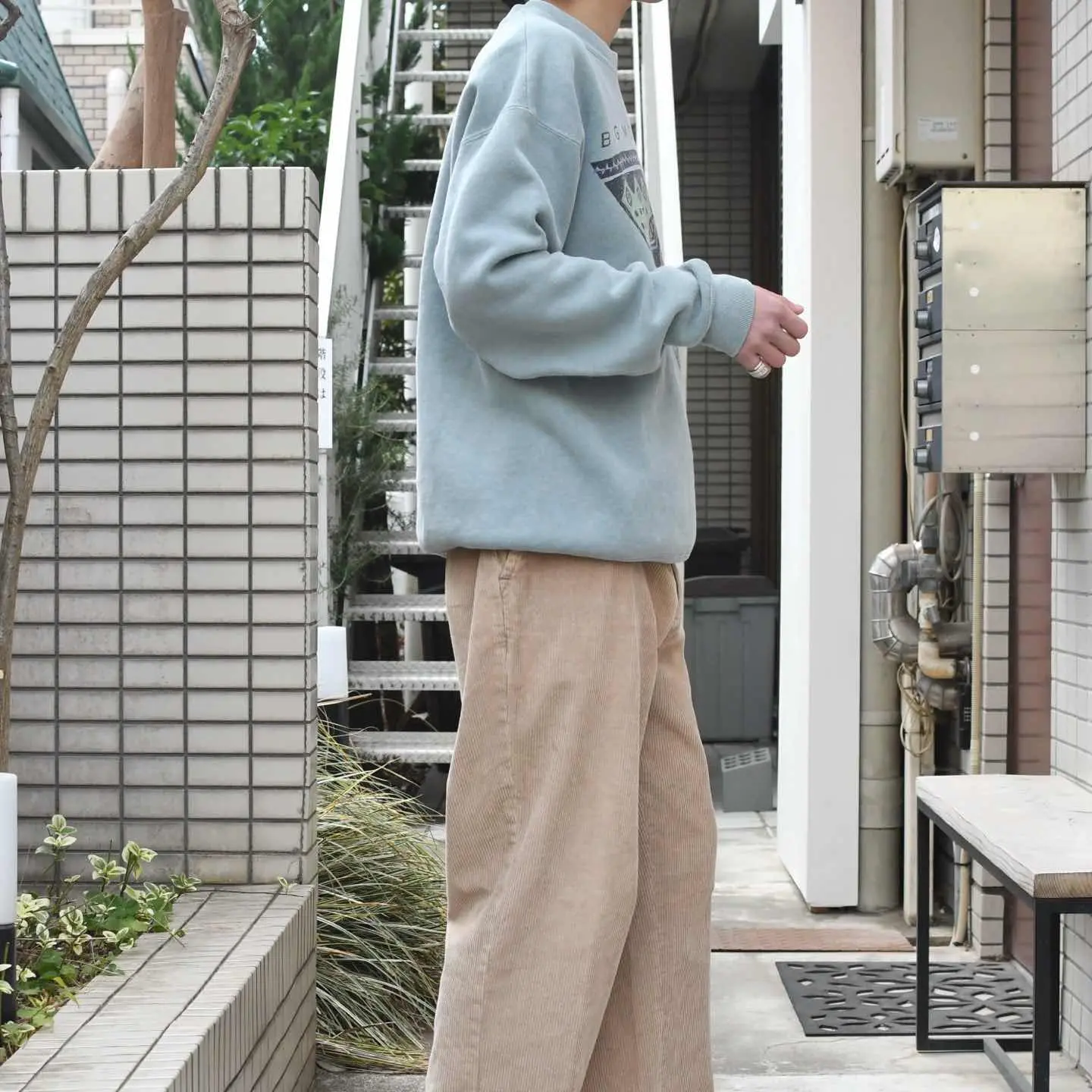 古着 グレー コーデュロイパンツ ワイドパンツ スラックス タックパンツ 灰色