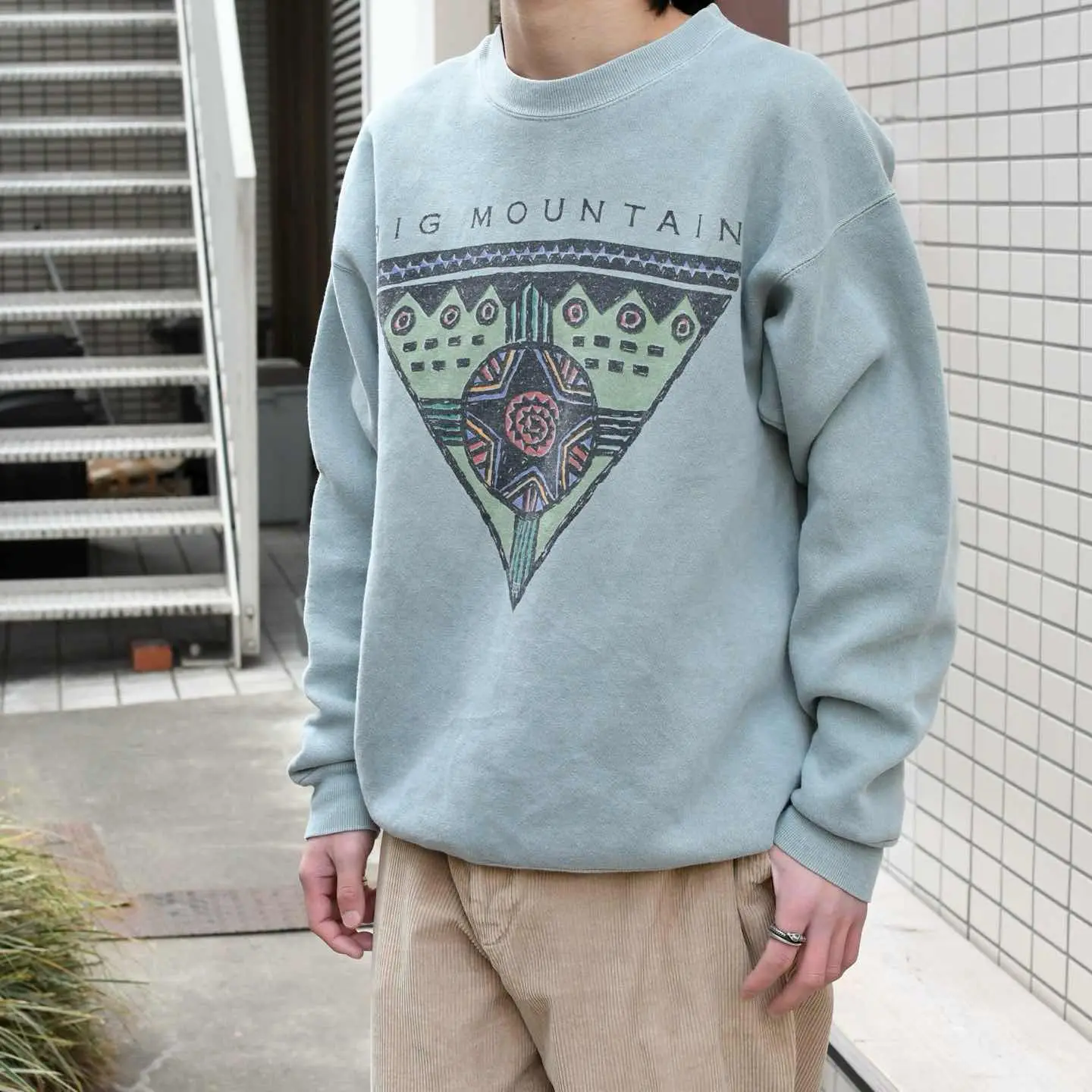 SIZE:L 着丈68cm 肩幅62cm 身幅58cm 袖丈60cm fabric/cotton・poly made in USA 着用画像 173cm/58kg どこかスピリチュアルさや、エスニック寄りな 雰囲気を纏うプリントデザイン。 恐らく深い意味はなく、ファッションとして プリントされた文字やフォント、 そして独特なボディの色合いに惹かれました。 どうもブランドや背景、クオリティなどに 引っ張られがちですが、一旦すべて忘れて 初心に帰ればこんな1着を手に取る気がしました。 そんな選び方も悪くないなと。 よくわからん面白いスウェット。 ※撮影状況により、実物と多少色が異なる場合が ございます。 ※古着を取り扱っているため、気づかない汚れや ほつれ等がある場合がございます。 ※サイズは着用感で選んでおり、 表記サイズではございません。 表記サイズは説明欄の最初に記載しております。 古着 オーバーサイズ old vintage ヴィンテージ used 80's 90's アメリカ古着 ユーロ古着 POLO RALPH LAUREN Eddie Bauer OLD GAP LANDS' END ランズエンド LLBean エルエルビーン オールドギャップ エディーバウアー ラルフローレン ブルックスブラザーズ Brooks Brothers 黄緑 などがお好きな方 #vintage #オーバーサイズ #old #used #90s #80s #古着 #ヴィンテージ #アメリカ古着 #ユーロ古着 #LLBean #エルエルビーン #EddieBauer #エディーバウアー #oldgap #オールドギャップ #LANDSEND #ランズエンド #NAUTICA #ノーティカ #ラルフローレン #POLORALPHLAUREN #ブルックスブラザーズ #BrooksBrothers #スウェット #トレーナー #プリントスウェット