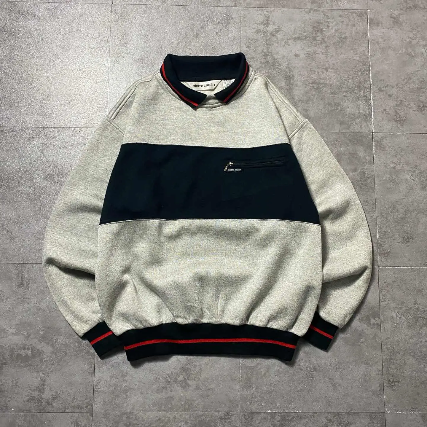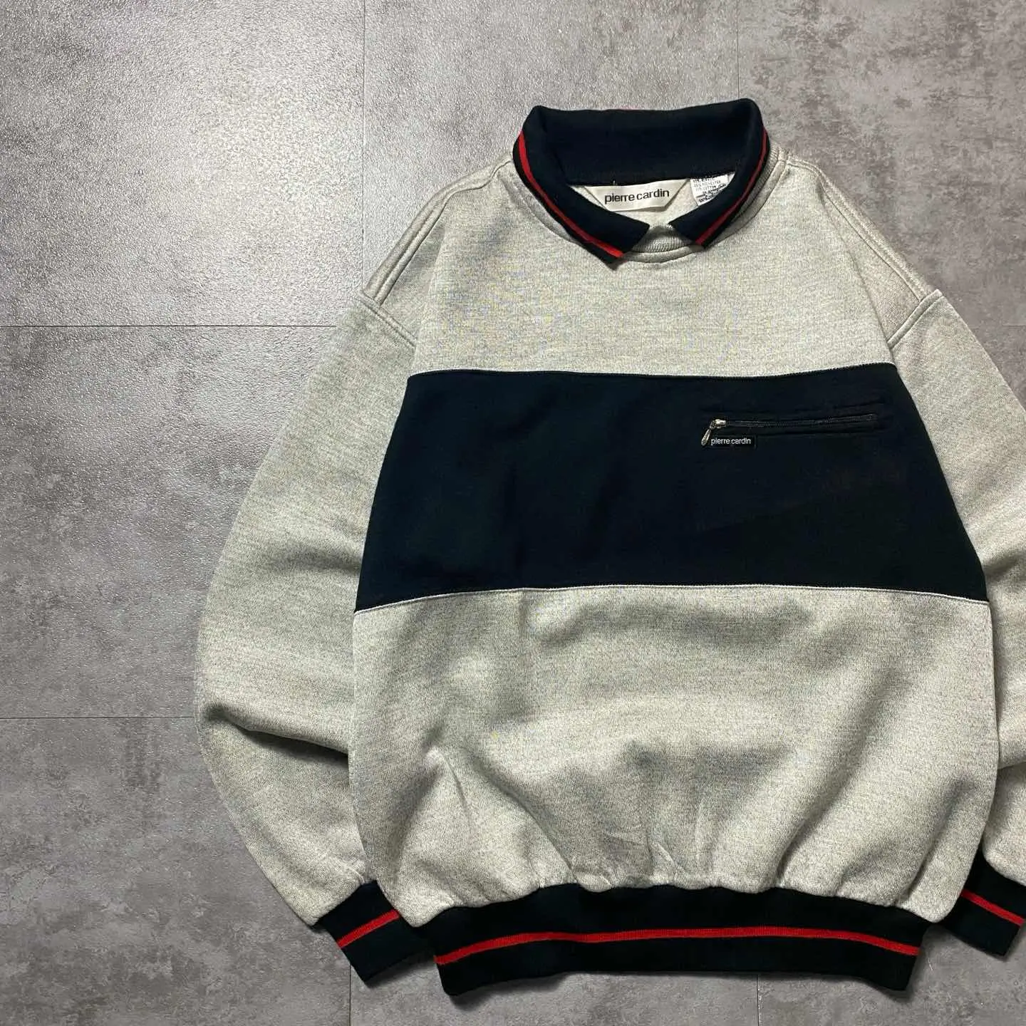 90s ピエールカルダン ジップ付ポケット 襟付き スウェット トレーナー