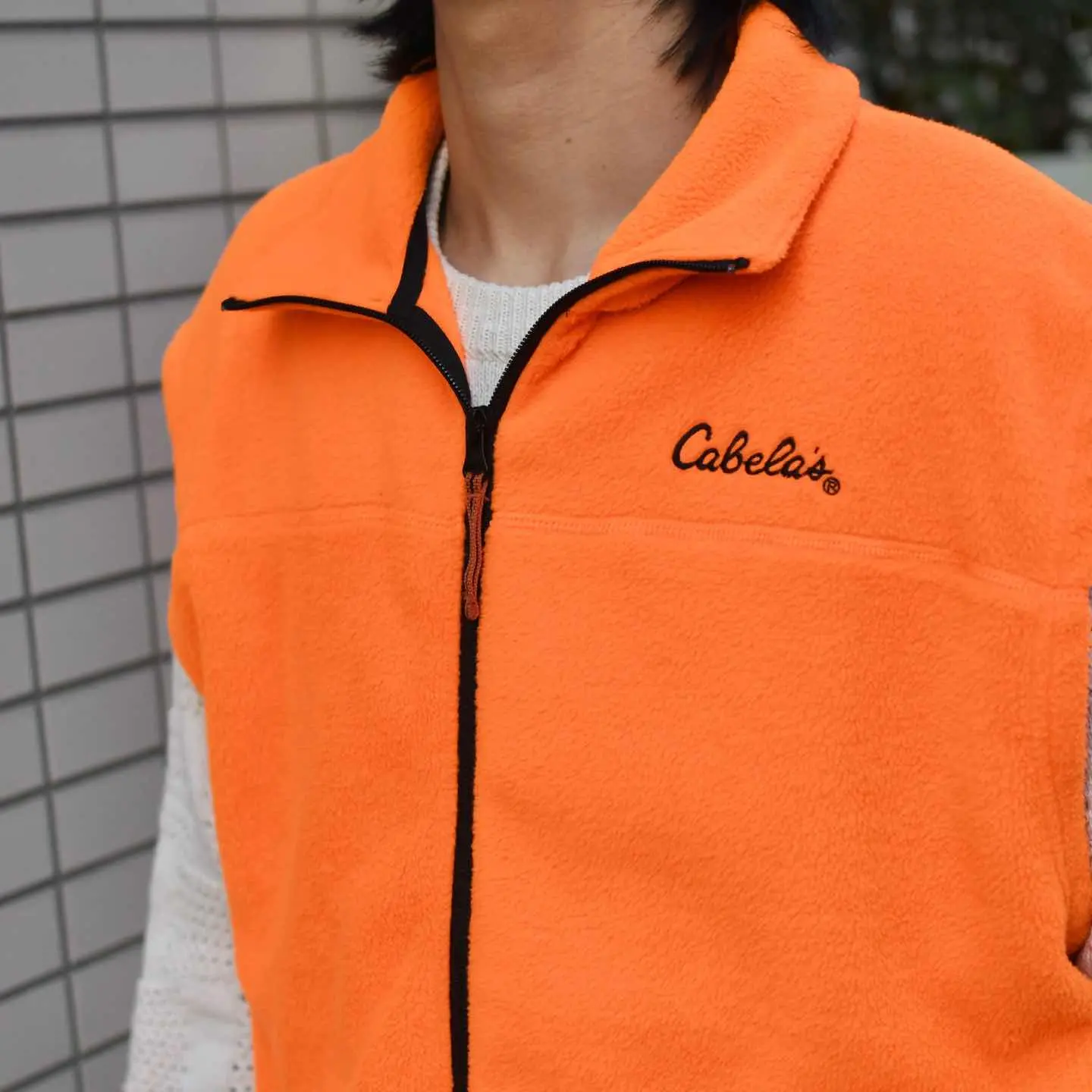 古着 Cabela's フリースベスト ベスト オレンジ フリース アウトドア