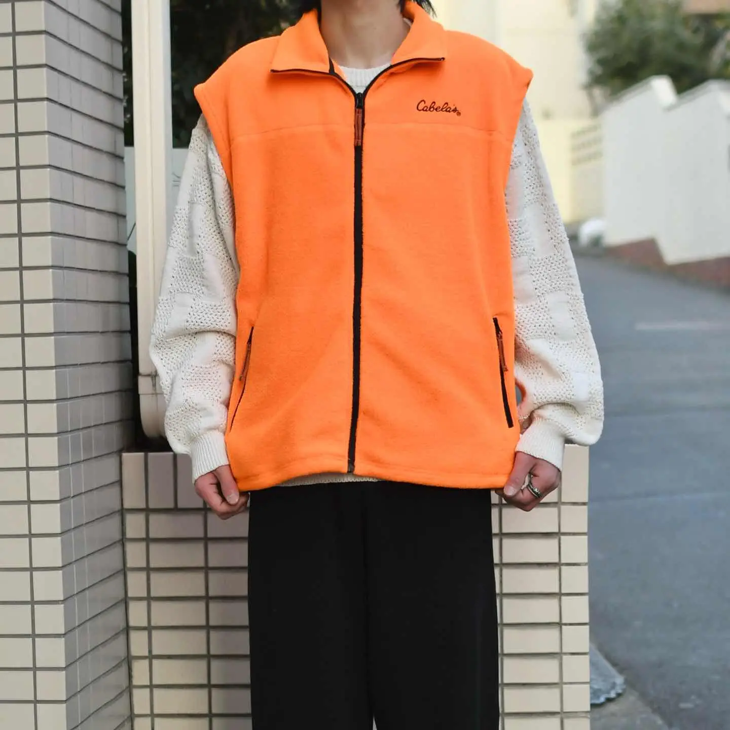 SIZE:L 着丈71cm 肩幅55cm 身幅64cm fabric/poly 着用画像 173cm/58kg 発色の良いオレンジカラーのフリースベスト。 中でも状態が良く、生地に潰れなどが無く ふわっとしたフリース生地で、着心地の良い1着です。 裾にドローコードが付くことで、丸みのある シルエットも楽しむこともでき、季節替わりの 不安定な時期に、レイヤードとしてどうでしょう。 ※撮影状況により、実物と多少色が異なる場合が ございます。 ※古着を取り扱っているため、気づかない汚れや ほつれ等がある場合がございます。 ※サイズは着用感で選んでおり、 表記サイズではございません。 表記サイズは説明欄の最初に記載しております。 古着 オーバーサイズ old vintage ヴィンテージ used 80's 90's アメリカ古着 ユーロ古着 POLO RALPH LAUREN Eddie Bauer OLD GAP LANDS' END ランズエンド LLBean エルエルビーン オールドギャップ エディーバウアー ラルフローレン ブルックスブラザーズ Brooks Brothers カベラス などがお好きな方 #vintage #オーバーサイズ #old #used #90s #80s #古着 #ヴィンテージ #アメリカ古着 #ユーロ古着 #LLBean #エルエルビーン #EddieBauer #エディーバウアー #oldgap #オールドギャップ #LANDSEND #ランズエンド #NAUTICA #ノーティカ #ラルフローレン #POLORALPHLAUREN #ブルックスブラザーズ #BrooksBrothers #フリース #フリースベスト #ベスト #Cabelas #カベラス