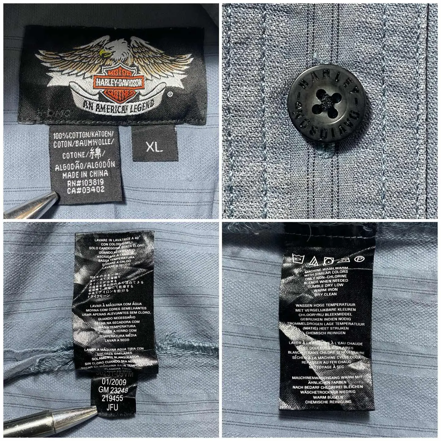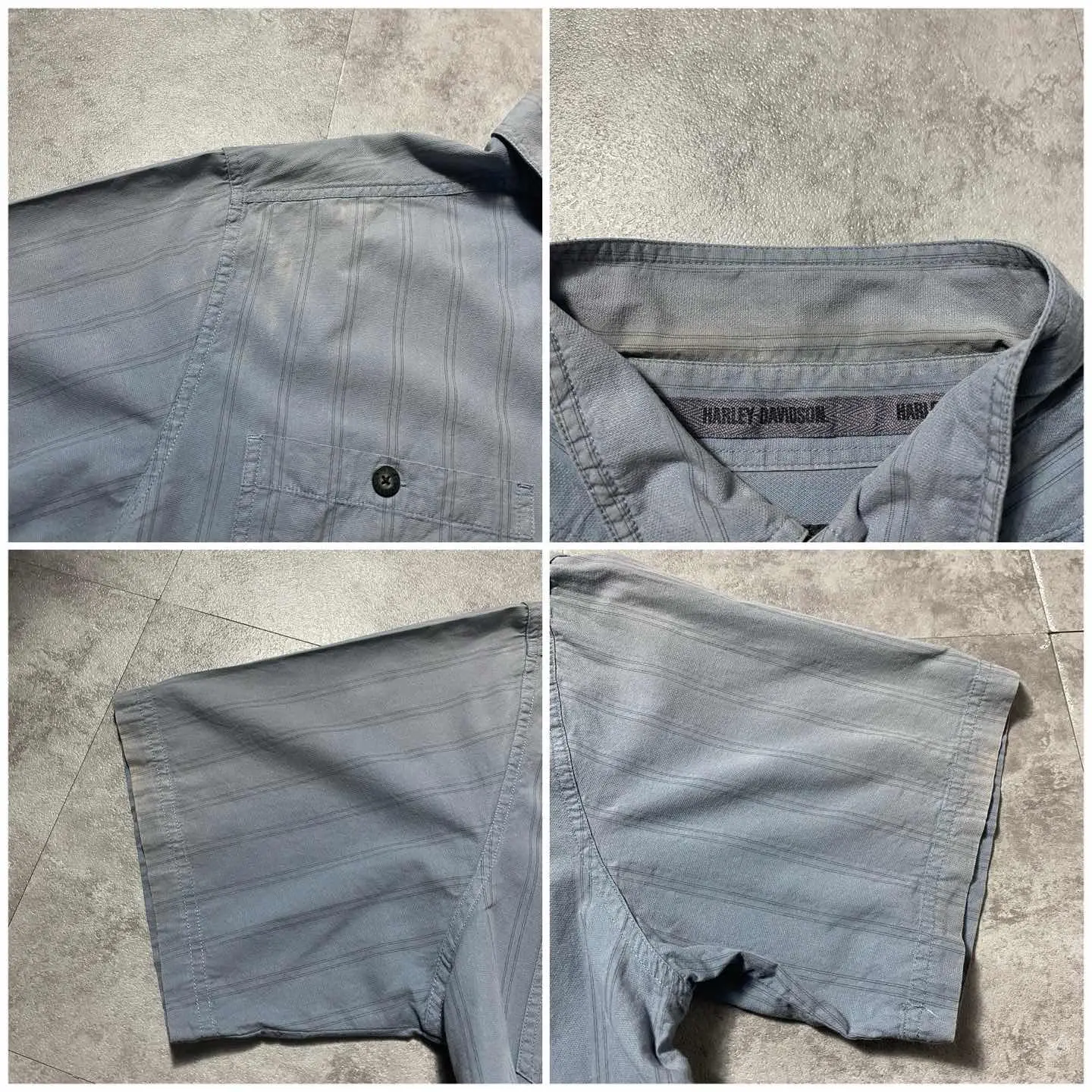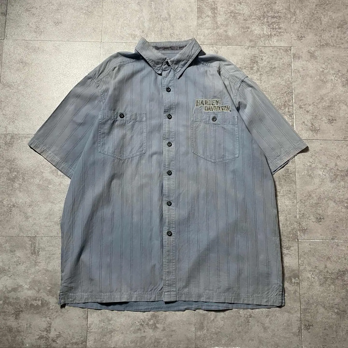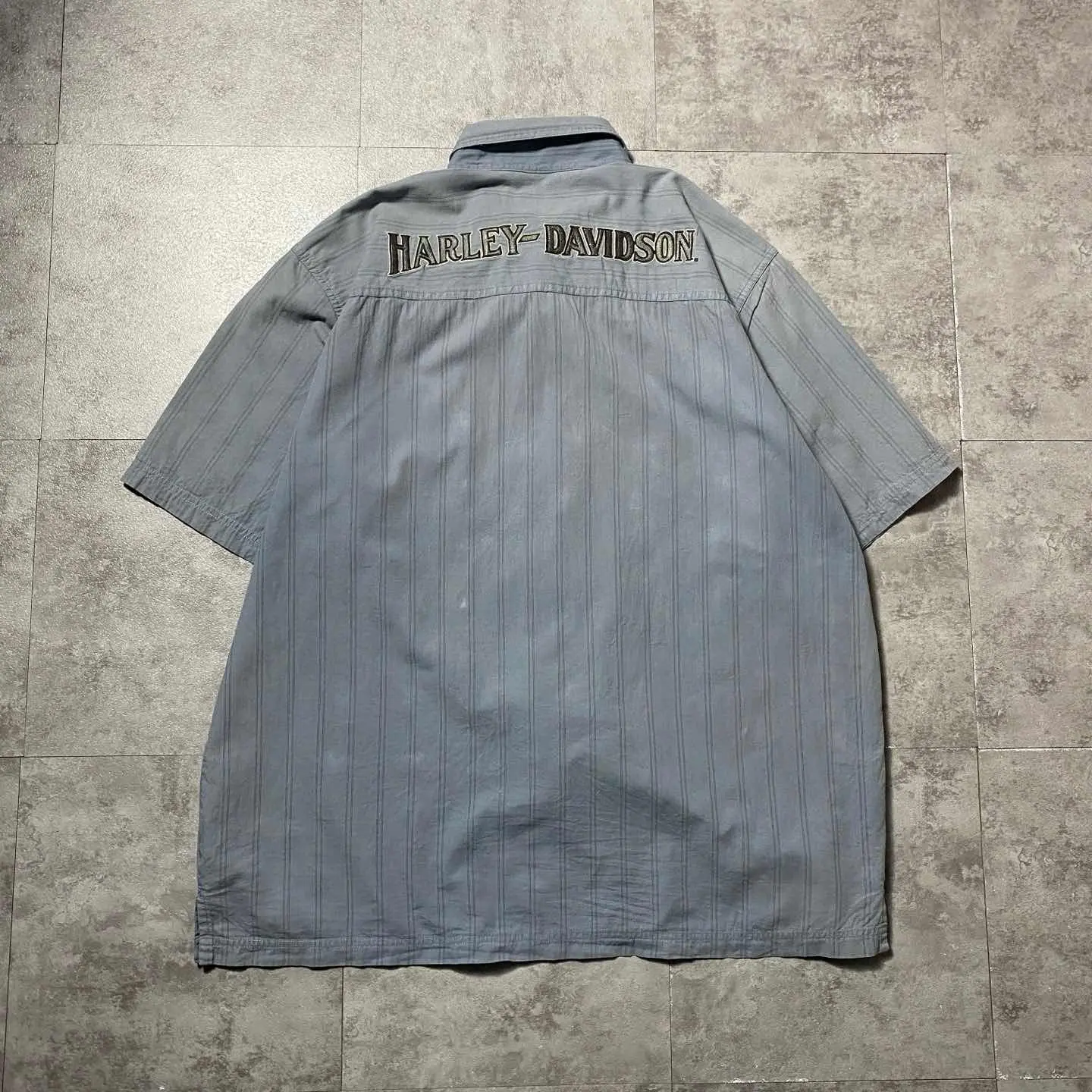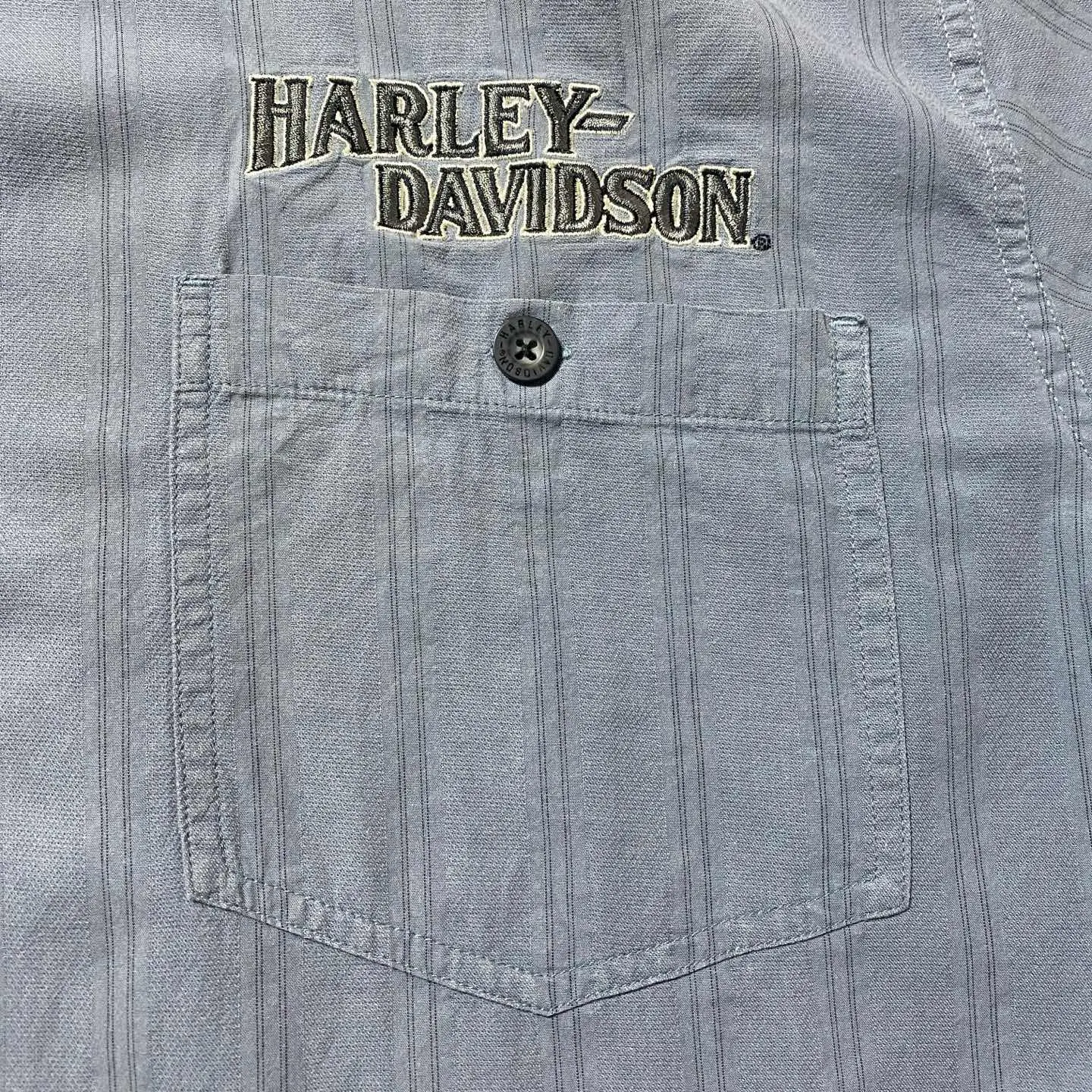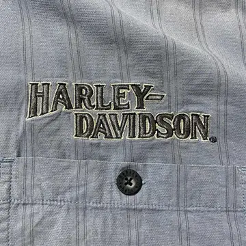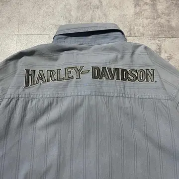 00s ハーレーダビッドソン 刺繍両面ロゴ ストライプ フェード ワークシャツ