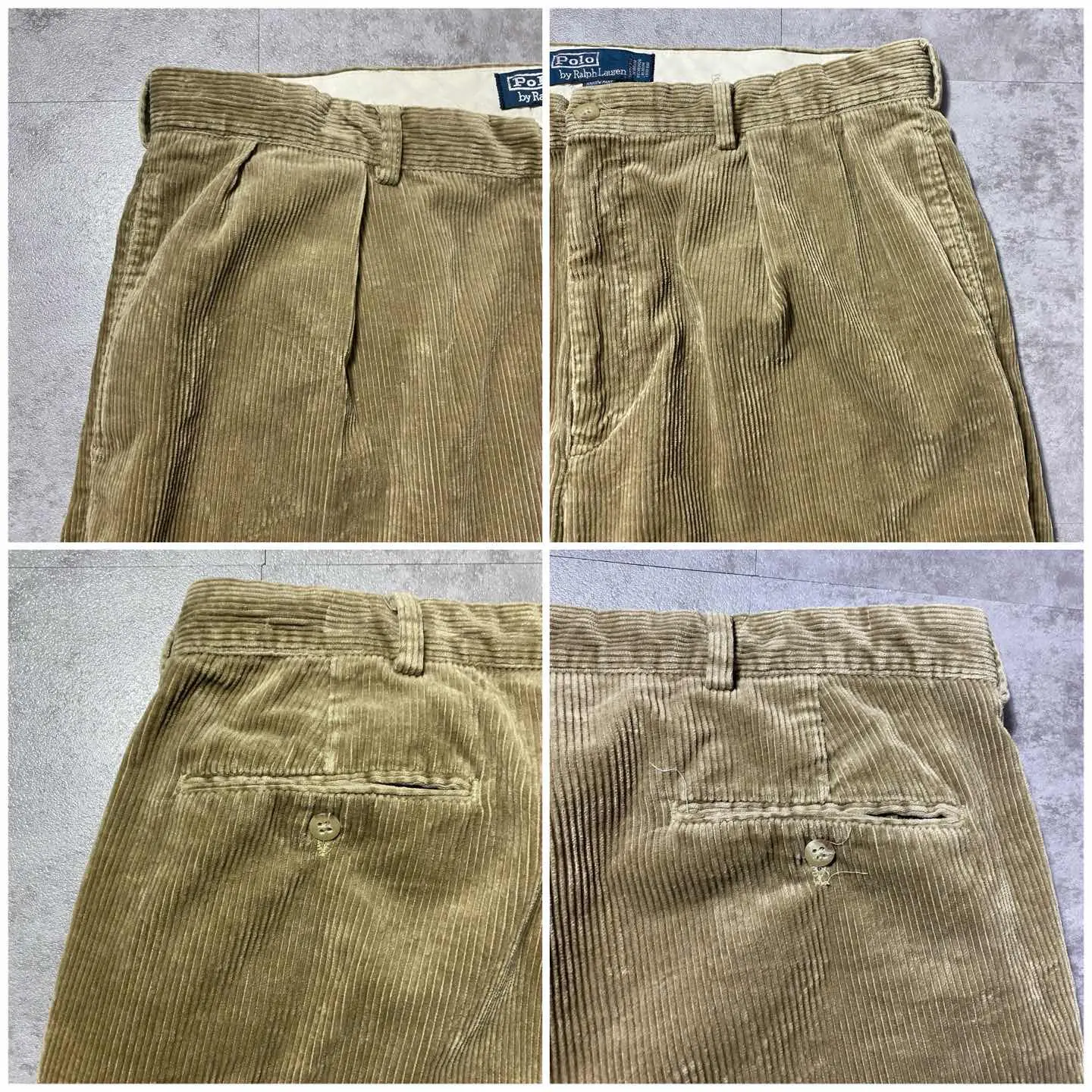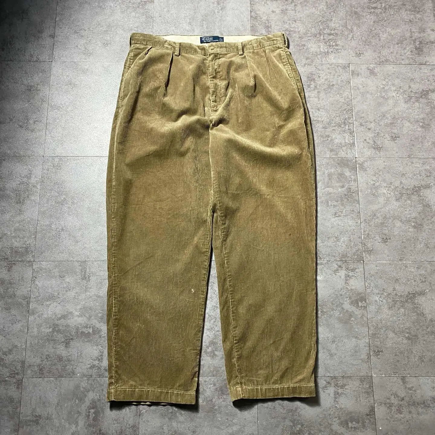 90sポロバイラルフローレン ジッパーフライ 2タック 太畝コーデュロイパンツ