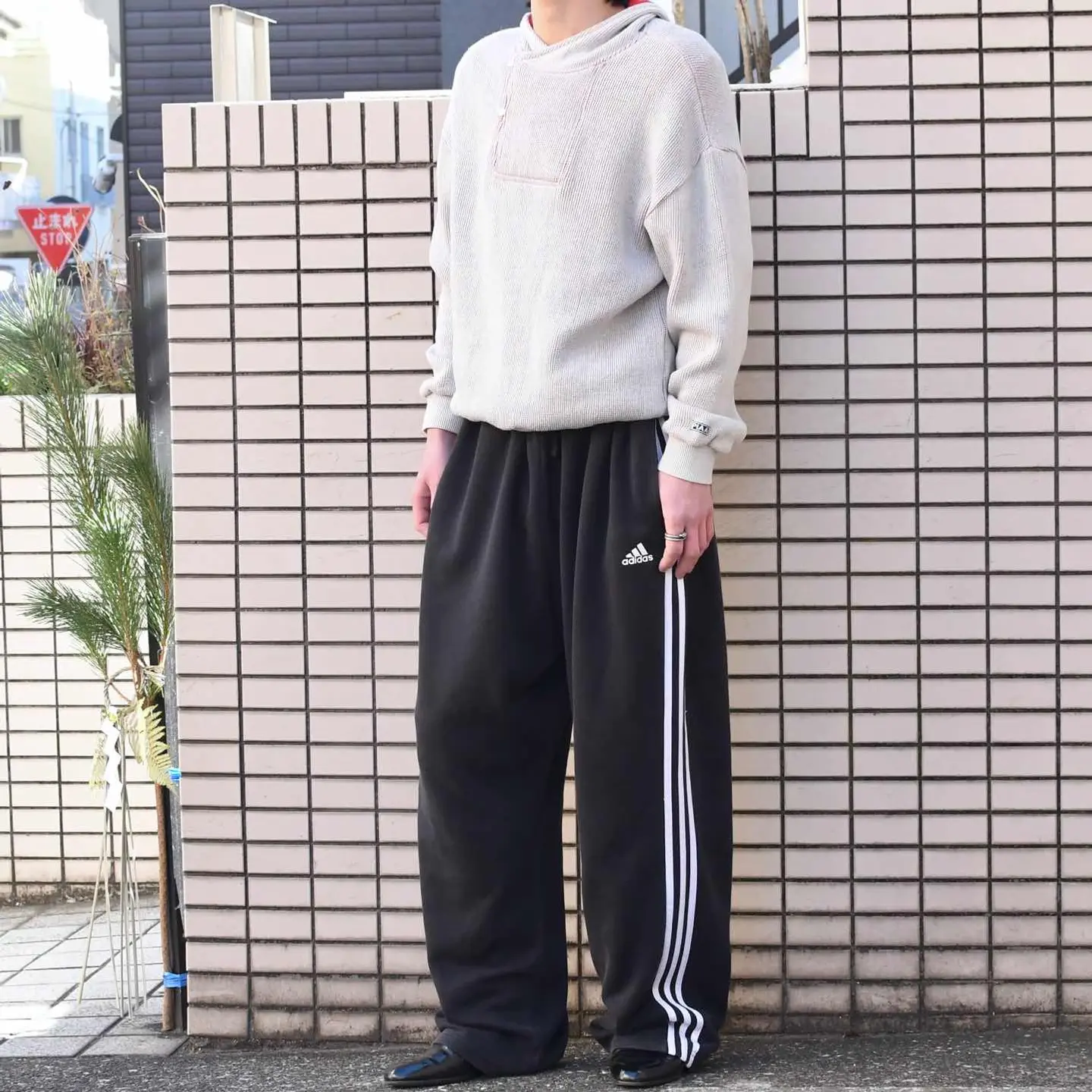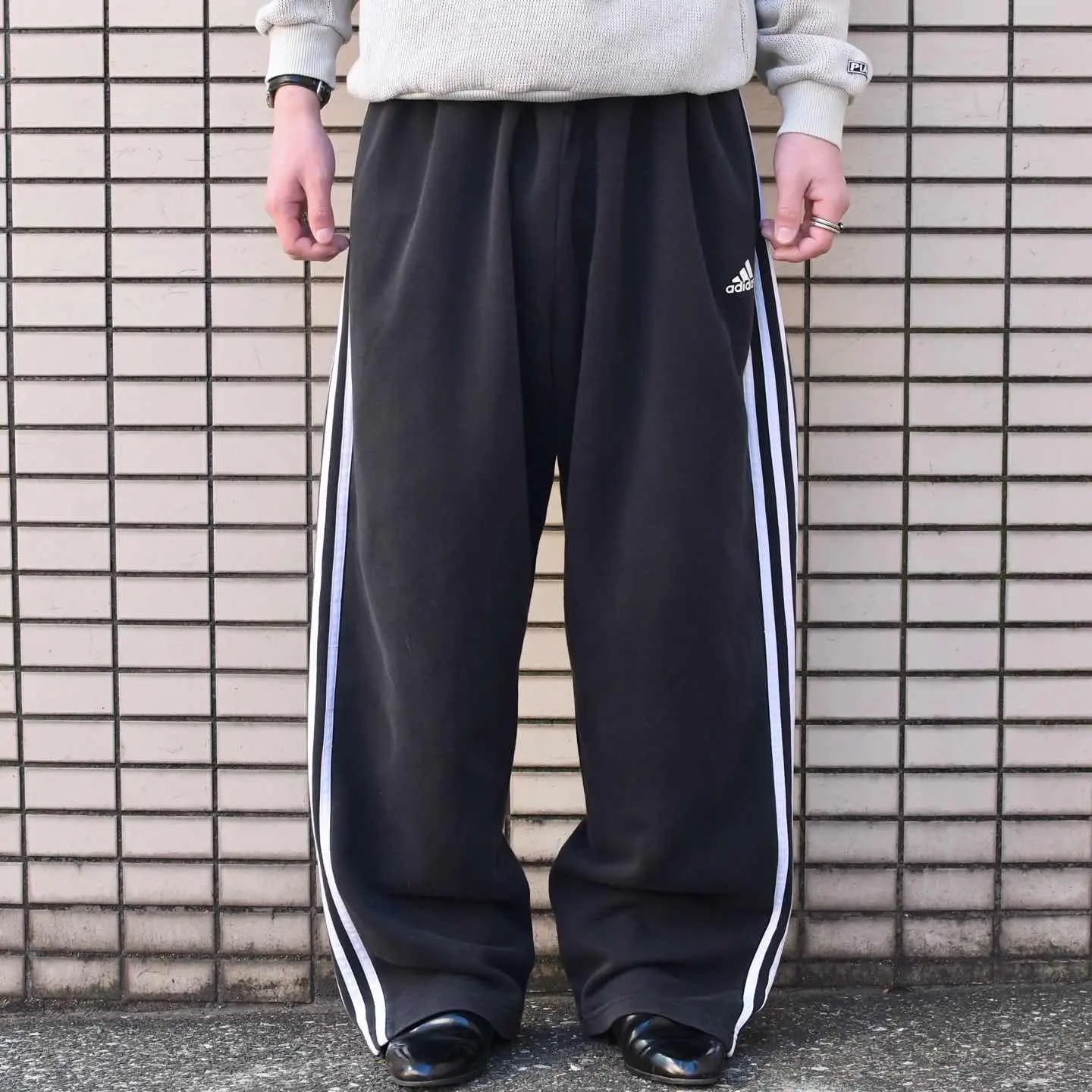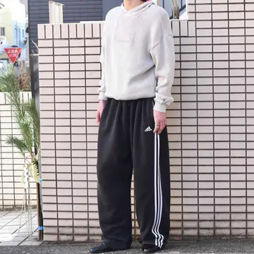 SIZE:3XL(US) ウエスト~132cm(ドローコード付き) 総丈108cm 股下76cm わたり48cm 裾幅28cm fabric/cotton・poly 着用画像 173cm/58kg 3XLで落とし込むからこそ、存在感のある シルエットで楽しめるadidasのスウェットパンツ。 さらにはややフェードすることで、より雰囲気ある 一本へと昇華した個体です。 裾にリブや絞りはなく、すとんと落ちるシルエットで今気分な方も多いのではないでしょうか。 またベルトではなくドローコードだからこそ、 ウエスト周りのたわみが気にならないのも 嬉しいポイント。 裏返すとサイドラインがまた違った表情を 見せるのが◎ 玄人はぜひ裏返して穿いてみるのもどうでしょう。 ※ドローコードの口に傷みあり。 ※裾上げ等のレングス直しにつきましては、 購入前に、必ずご連絡お願い致します。 ※撮影状況により、実物と多少色が異なる 場合がございます。 ※古着を取り扱っているため、気づかない汚れや ほつれ等がある場合がございます。 ※サイズは着用感で選んでおり、 表記サイズは説明欄の最初に記載しております。 old vintage ヴィンテージ used 80's 90's アメリカ古着 ユーロ古着 POLO RALPH LAUREN Eddie Bauer OLD GAP LANDS' END ランズエンド LLBean エルエルビーン オールドギャップ エディーバウアー ラルフローレン ブルックスブラザーズ 黒 ブラック がお好きな方 #vintage #old #used #90s #80s #古着 #ヴィンテージ #LLBean #エルエルビーン #EddieBauer #エディーバウアー #oldgap #オールドギャップ #LANDSEND #NAUTICA #ラルフローレン #POLORALPHLAUREN #adidas #スウェットパンツ #ワイドパンツ