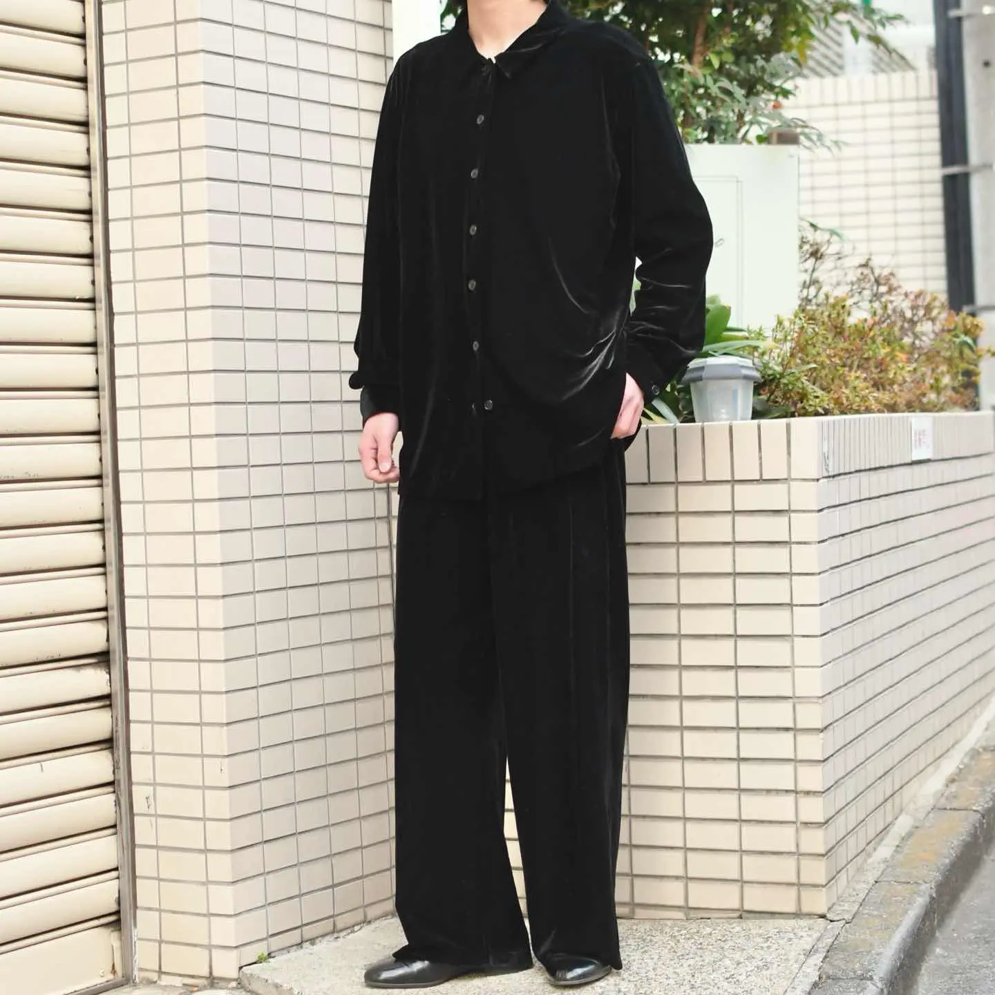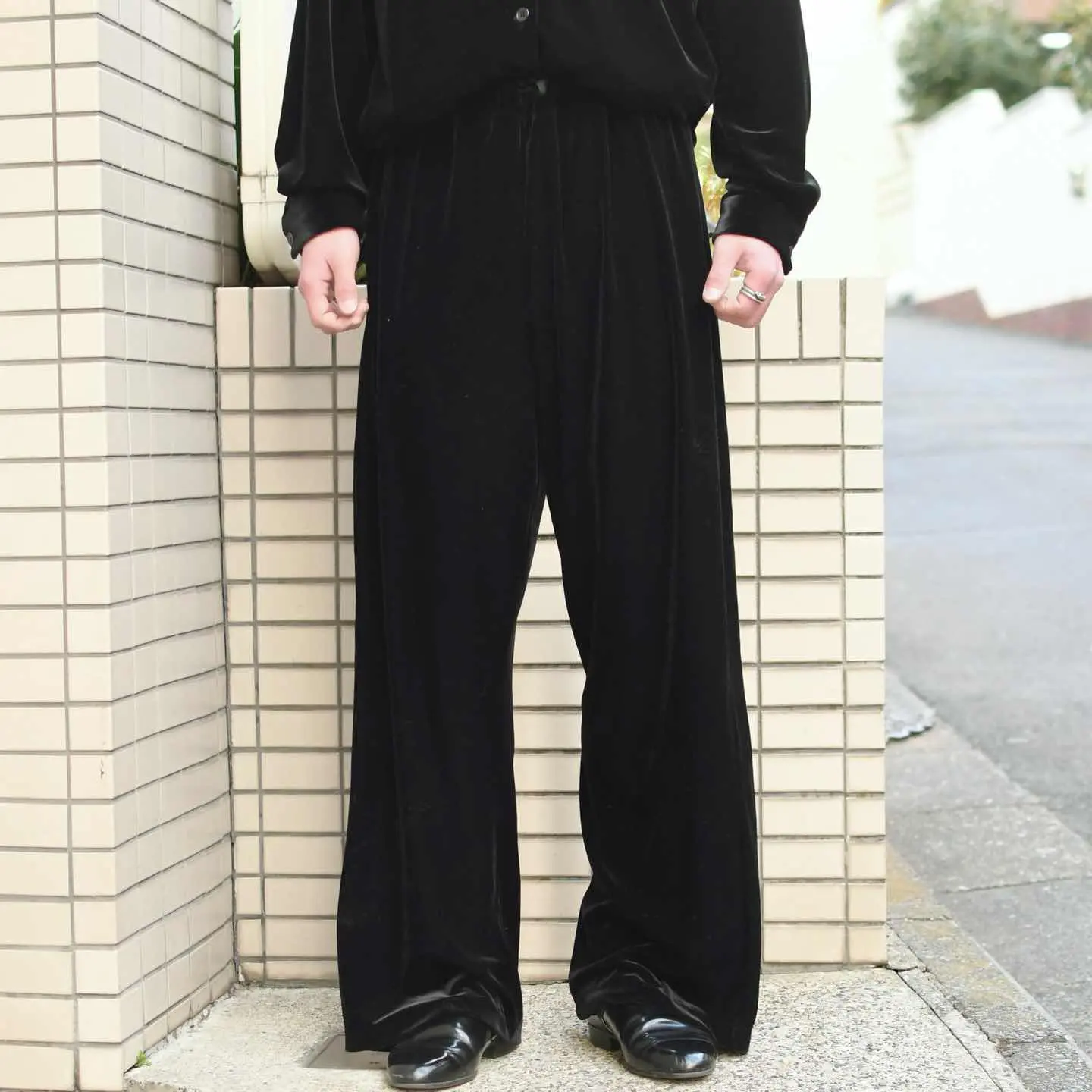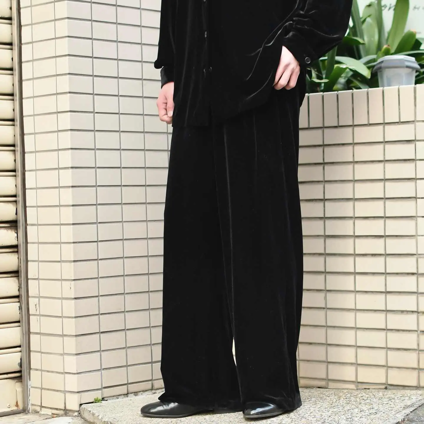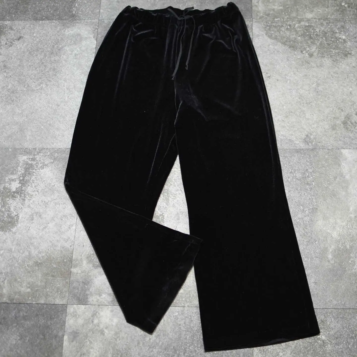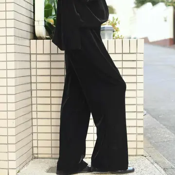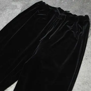 古着 ワイド ベロアパンツ イージーパンツ ドレープ感◎ ワイドパンツ ブラック