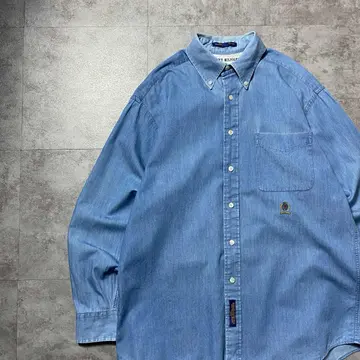 90s トミーヒルフィガー 刺繍ロゴ胸ポケット デニムブルー ボタンダウンシャツ