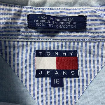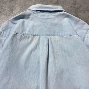 90s トミージーンズ 刺繍フラッグロゴ 胸ポケット 薄紺 デニムシャツ
