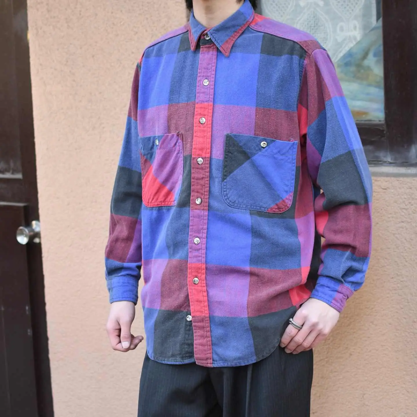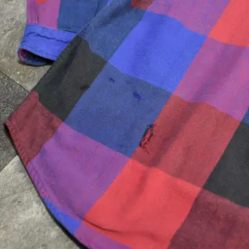 SIZE:M 着丈74cm 肩幅47cm 身幅60cm 袖丈58cm fabric/cotton 着用画像 173cm/58kg 個人的に流行り廃りに囚われず、ネルシャツを 取り入れるならこんな色使いの個体が良いなと。 独特な色使いでありながら、程良く使い込まれる事で柔らかくなった印象と、インナーとして 落とし込んでも着膨れしないサイズ感◎ 背面のダメージまで馴染んだネルシャツ、Tシャツやサーマルをインナーに羽織りとしてもおすすめです。 ※右袖、背面裾付近に生地の傷みあり。 ※撮影状況により、実物と多少色が異なる場合が ございます。 ※古着を取り扱っているため、気づかない汚れや ほつれ等がある場合がございます。 ※サイズは着用感で選んでおり、 表記サイズは説明欄の最初に記載しております。 古着 オーバーサイズ old vintage ヴィンテージ used 80's 90's アメリカ古着 ユーロ古着 POLO RALPH LAUREN Eddie Bauer OLD GAP LANDS' END ランズエンド LLBean エルエルビーン オールドギャップ エディーバウアー ラルフローレン ブルックスブラザーズ Brooks Brothers 長袖シャツ シャツ 赤 レッド 紫 パープル 青 ブルー などがお好きな方 #vintage #オーバーサイズ #old #used #90s #80s #古着 #ヴィンテージ #アメリカ古着 #ユーロ古着 #LLBean #エルエルビーン #EddieBauer #エディーバウアー #oldgap #オールドギャップ #LANDSEND #ランズエンド #NAUTICA #ノーティカ #ラルフローレン #POLORALPHLAUREN #ブルックスブラザーズ #BrooksBrothers #StJohnsBay #フランネルシャツ #ネルシャツ #チェックシャツ
