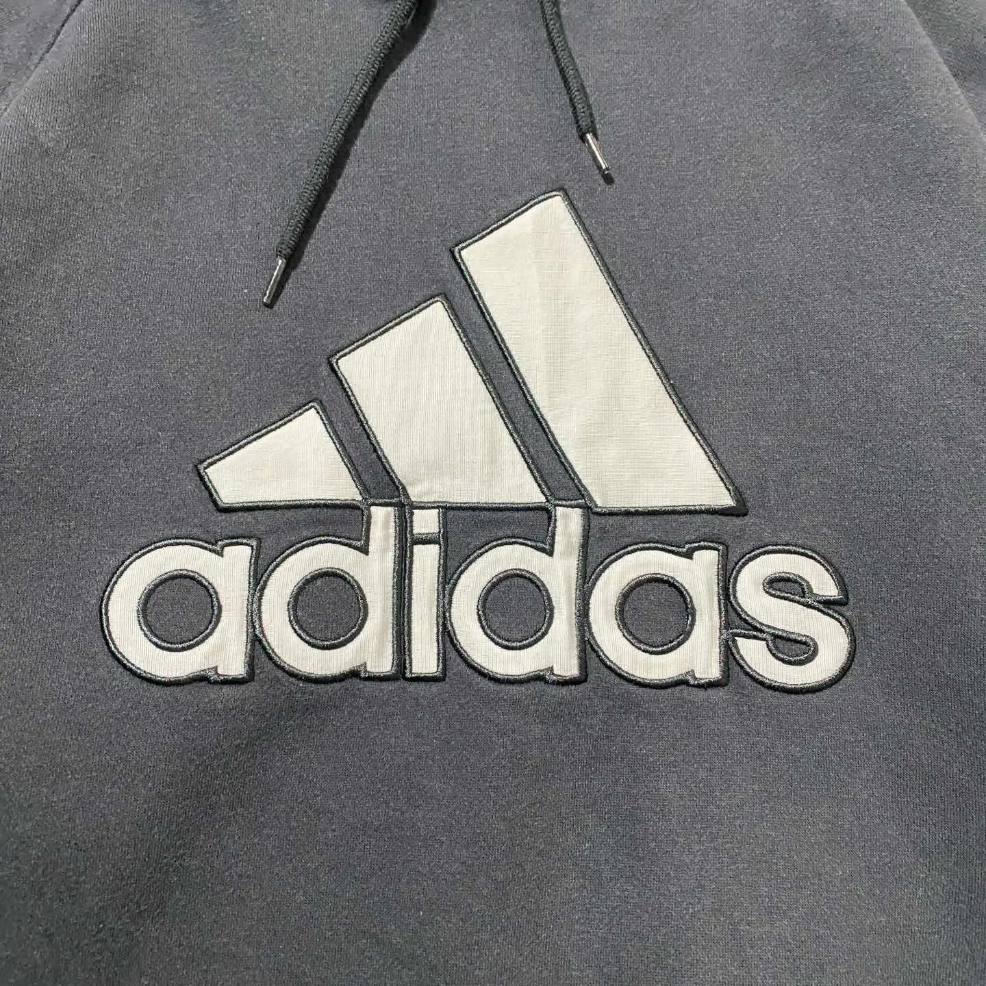 00s adidas 刺繍ワンポイント サイドストライプ グレー スウェット パーカー