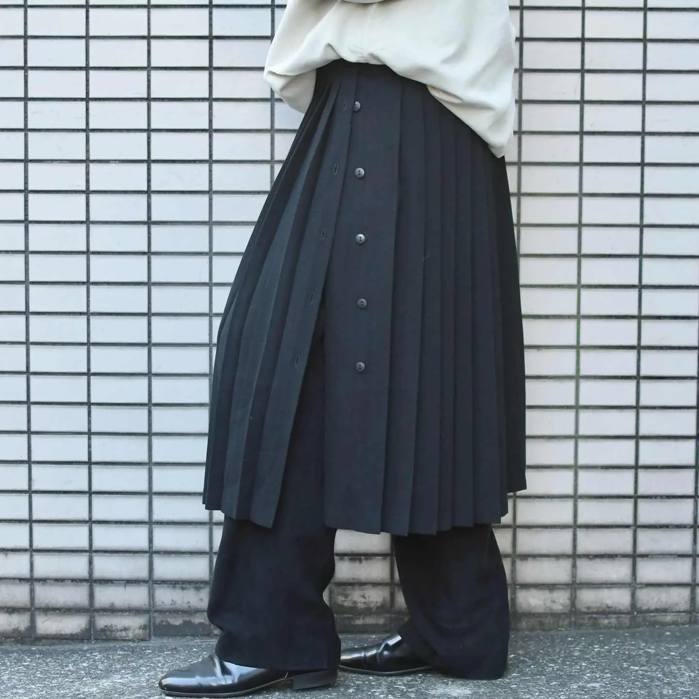 古着 ブラック プリーツ スカート レイヤード 黒