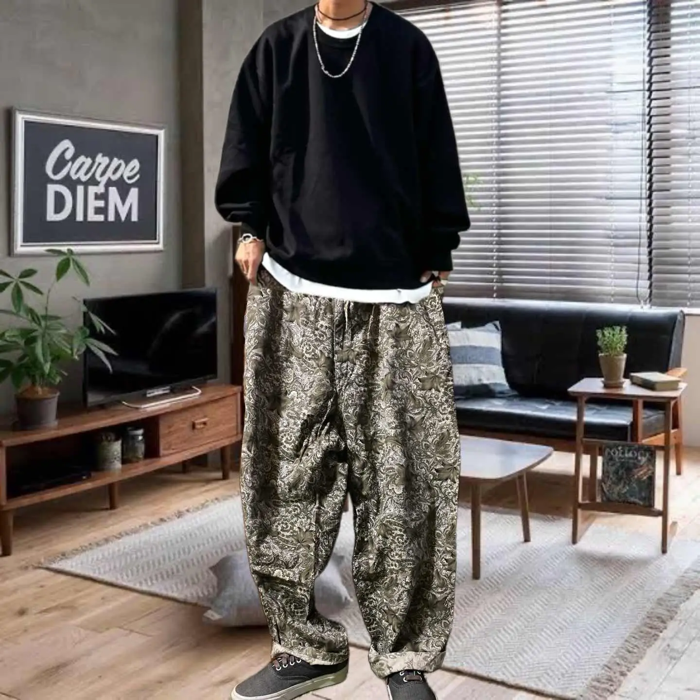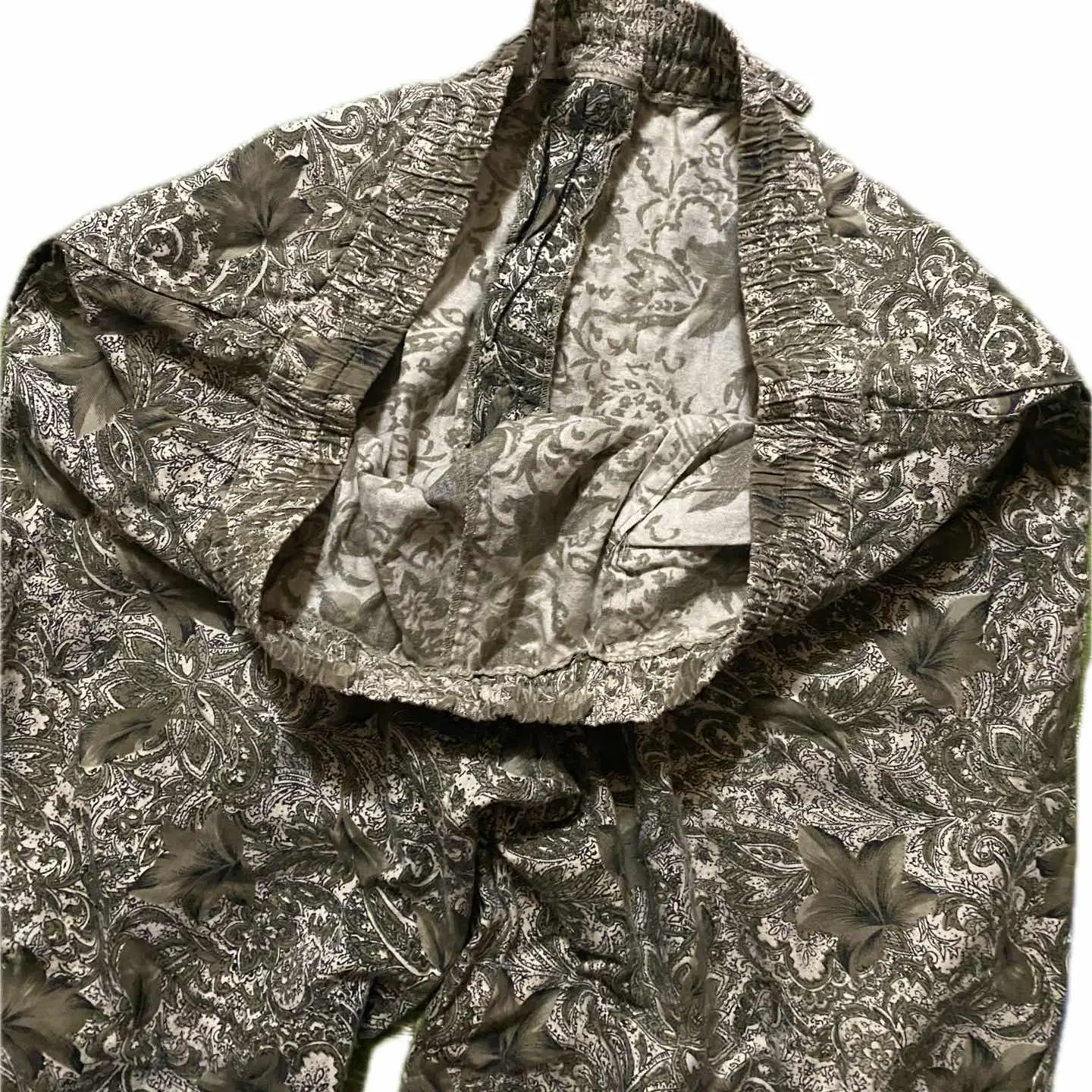 70s 激レア総柄 棒zip USA製 総柄 ユーロ柄 ユルストボトムW76-92 これからの季節に最適さらに年中活躍魅力的な1本を紹介いたします。 斜織cottonだから、半端なく美しい柄が、のる、 ユーロ柄を、アメリカが、仕上げたゆるストレートボトムとなります。 履き心地は抜群なのは当たり前で丁寧に作られたからは、確実にシンプルなコーディネートのアクセントにもなりますし、年中活躍するのは間違いありません。コーディネートを参考に下さい。軽くロールアップしてコンバースでもオッケー。バンズ合わせと、スニーカーとかローカットのスニーカーだと破壊力が一気に上がります。もちろんサンダルでもかっこいいですね。 ゆったりとしたボトムの脱力感は色気抜群の1本です。この機会にぜひどうぞ アメリカの古着は、市場では70年80年は相当数が減ってきていますので 判断早い人の方が得をしますね。お早めにご検討ください。 ▷color◁ 総柄 ※使いのブラウザにより色が変わってみえる場合あります ▷size◁ 平置き片面採寸【㎝表記】 表記size 12表記 L位?? 【※ウエストのみ、メジャーで一周採寸】 ウエスト76-92 股上34 股下75 腿渡り40 裾幅28ユルスト モデル170㎝/普通体型、30インチジャストな体型のわたしが、ゆるだぼ ▷material◁ 斜織コットンシワならない、動きやすい、年中活躍の1mm厚タイプ最高!! ▷condition◁ 綺麗 ※入念にチェックは、しておりますが、vintage/usedの特性ご理解下さい