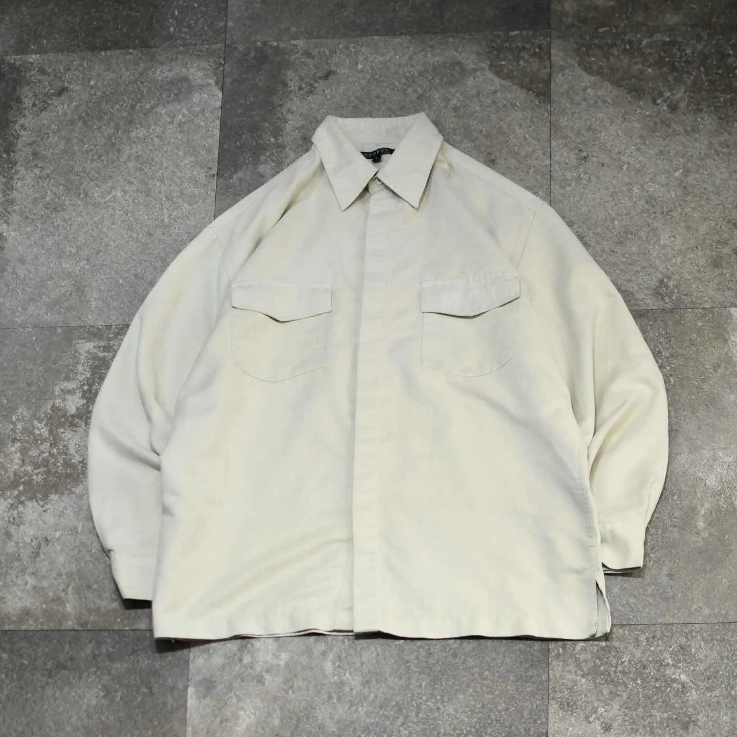 古着 フェイクスウェードシャツ アイボリー 長袖シャツシャツ クリーム