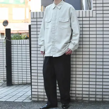 SIZE:G 着丈74cm 肩幅53cm 身幅62cm 袖丈61cm fabric/poly 着用画像 173cm/58kg 探すと意外と見つからないフェイクスウェードの 白シャツ。 尚且つこちらは比翼留めで、インナーとしても より纏まりが出る個体として活躍する1着です。 はっきりとした白ではなく、ややクリームがかった 色合いだからこそコーデに馴染みやすく、 フェイクスウェードの上品さが惹き立つ逸品です。 流行り廃りに流されず、手元で長く活躍する、 飽きの来ないシャツとしておすすめです。 ※撮影状況により、実物と多少色が異なる場合が ございます。 ※古着を取り扱っているため、気づかない汚れや ほつれ等がある場合がございます。 ※サイズは着用感で選んでおり、 表記サイズは説明欄の最初に記載しております。 古着 オーバーサイズ old vintage ヴィンテージ used 80's 90's アメリカ古着 ユーロ古着 POLO RALPH LAUREN Eddie Bauer OLD GAP LANDS' END ランズエンド LLBean エルエルビーン オールドギャップ エディーバウアー ラルフローレン ブルックスブラザーズ Brooks Brothers ホワイト 白 ダブルポケット などがお好きな方 #vintage #オーバーサイズ #old #used #90s #80s #古着 #ヴィンテージ #アメリカ古着 #ユーロ古着 #LLBean #エルエルビーン #EddieBauer #エディーバウアー #oldgap #オールドギャップ #LANDSEND #ランズエンド #NAUTICA #ノーティカ #ラルフローレン #POLORALPHLAUREN #ブルックスブラザーズ #BrooksBrothers #フェイクスウェードシャツ #長袖シャツ #シャツ