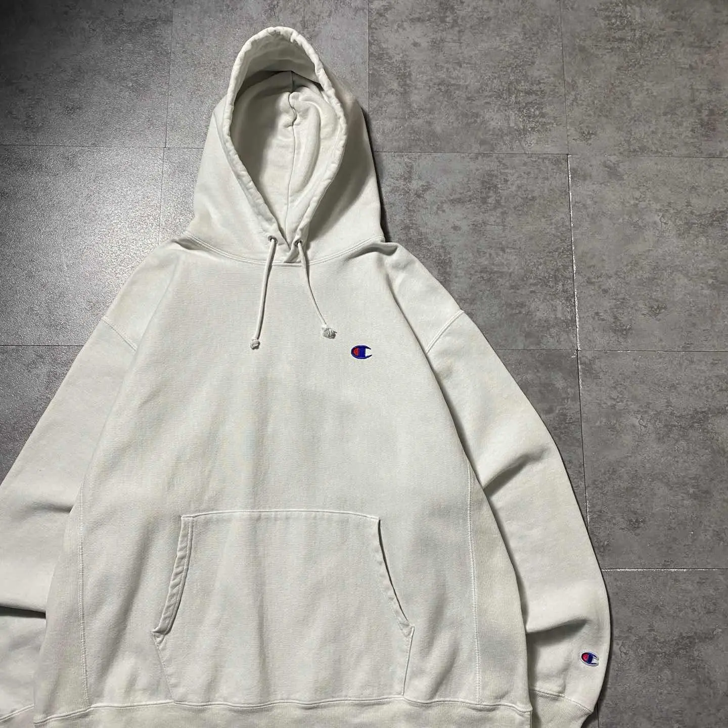 00s チャンピオン リバースウィーブ 刺繍ワンポイント アイボリー パーカー