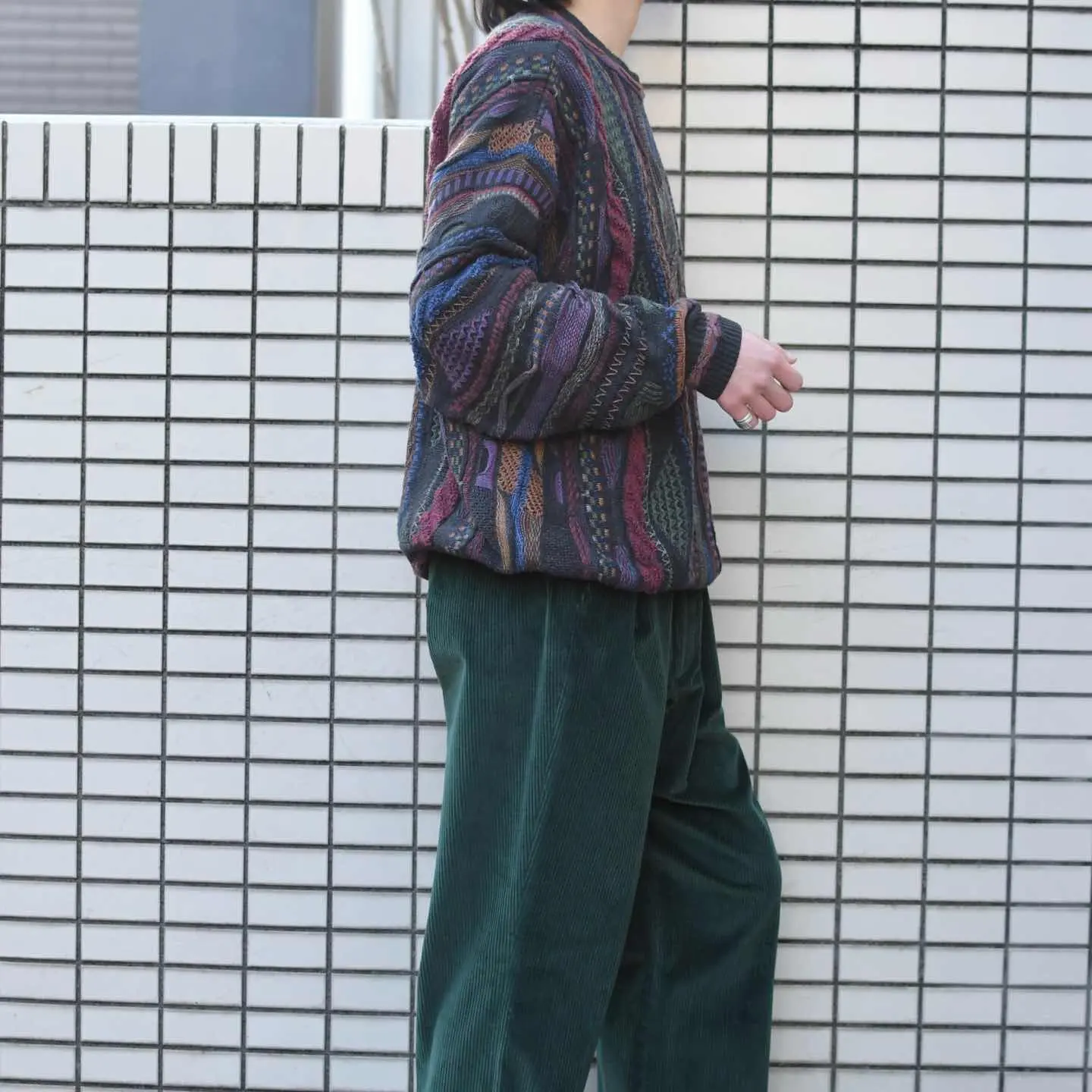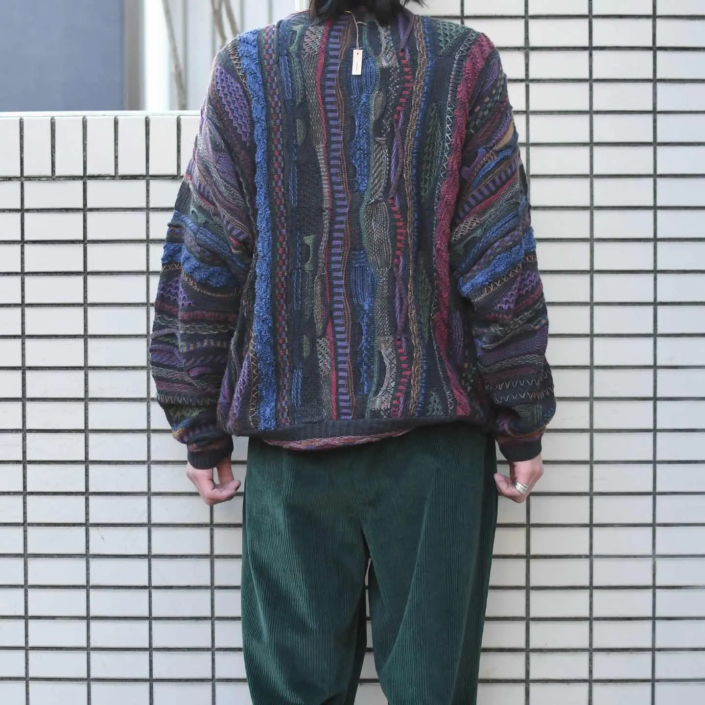 SIZE:L 着丈69cm 肩幅66cm 身幅65cm 袖丈58cm fabric/cotton・acryl made in Bulgaria 着用画像 173cm/58kg 3Dニットの中でも一際惹かれた配色。 多色かつ深みのある色合いを用いた好配色で、 存在感がありつつもコーデに馴染むような、 そんな使い勝手の良い個体です。 また3Dニットは特にオーバーサイズの個体が多く、インナーとしてというよりか一枚で、 コーデに落とし込む機会が多くなりがちですが、 こちらは程良くゆとりがある程度で、 インナー使いとしてもストレス無く機能する逸品。 落とし込むスタイリングの幅が広い3Dニット、 良いですね... ※撮影状況により、実物と多少色が異なる場合が ございます。 ※古着を取り扱っているため、気づかない汚れや ほつれ等がある場合がございます。 ※サイズは着用感で選んでおり、 表記サイズは説明欄の最初に記載しております。 古着 オーバーサイズ old vintage ヴィンテージ used 80's 90's アメリカ古着 ユーロ古着 POLO RALPH LAUREN Eddie Bauer OLD GAP LANDS' END ランズエンド LLBean エルエルビーン オールドギャップ エディーバウアー ラルフローレン ブルックスブラザーズ Brooks Brothers アクリルニット coogi などがお好きな方 #vintage #オーバーサイズ #old #used #90s #80s #古着 #ヴィンテージ #LLBean #エルエルビーン #EddieBauer #エディーバウアー #oldgap #オールドギャップ #LANDSEND #ランズエンド #NAUTICA #ノーティカ #ラルフローレン #POLORALPHLAUREN #BrooksBrothers #coogi #3dニット #デザインニット #ニット #セーター