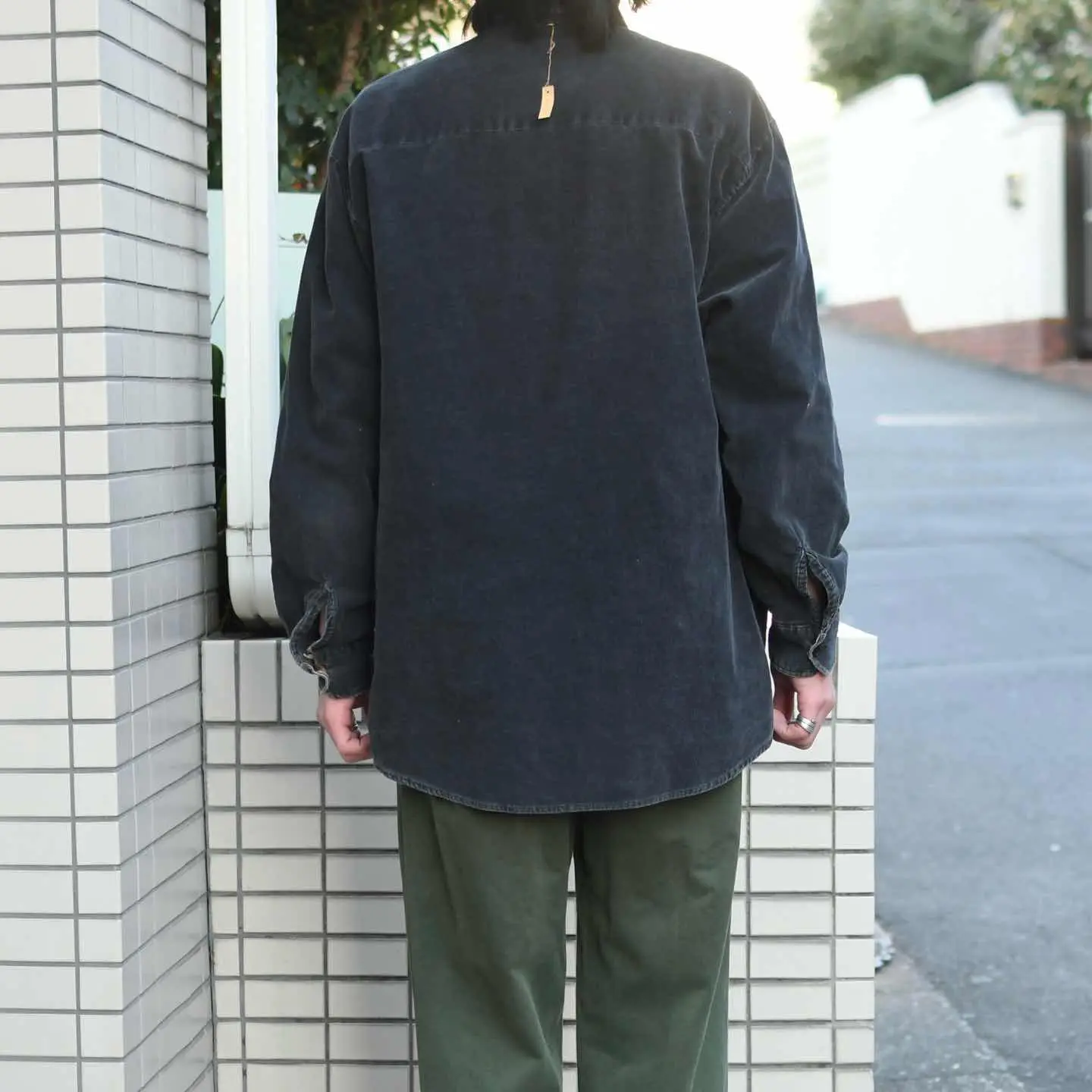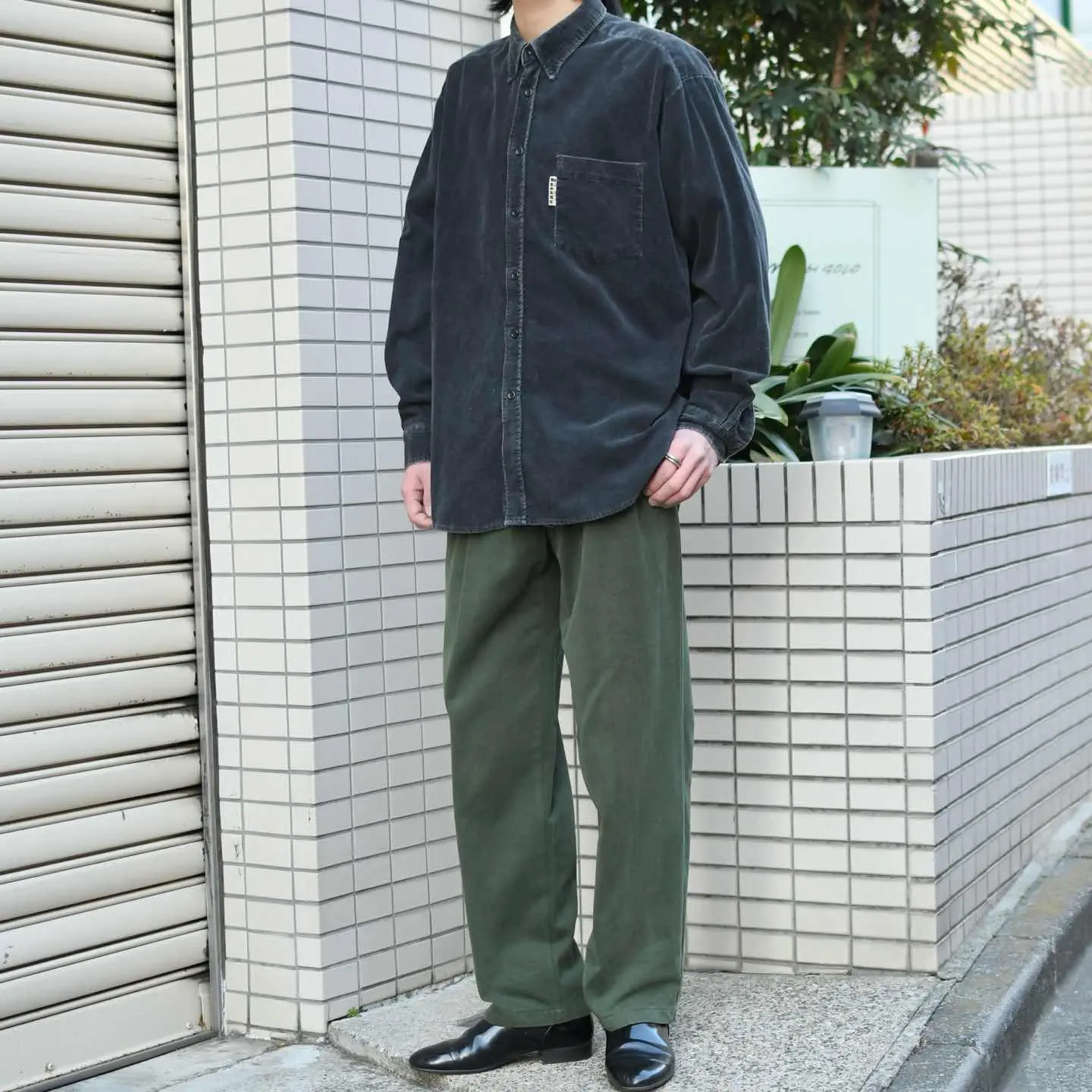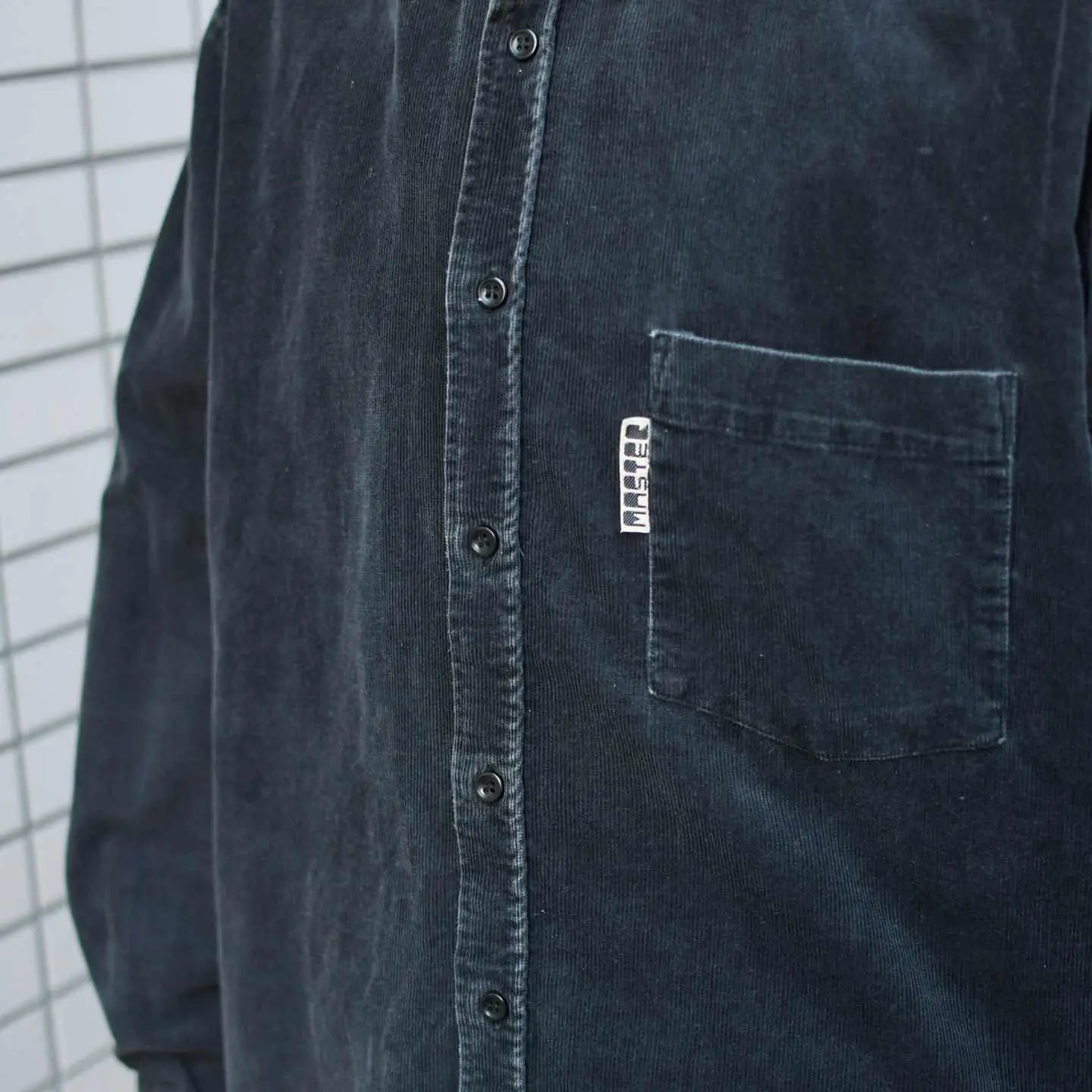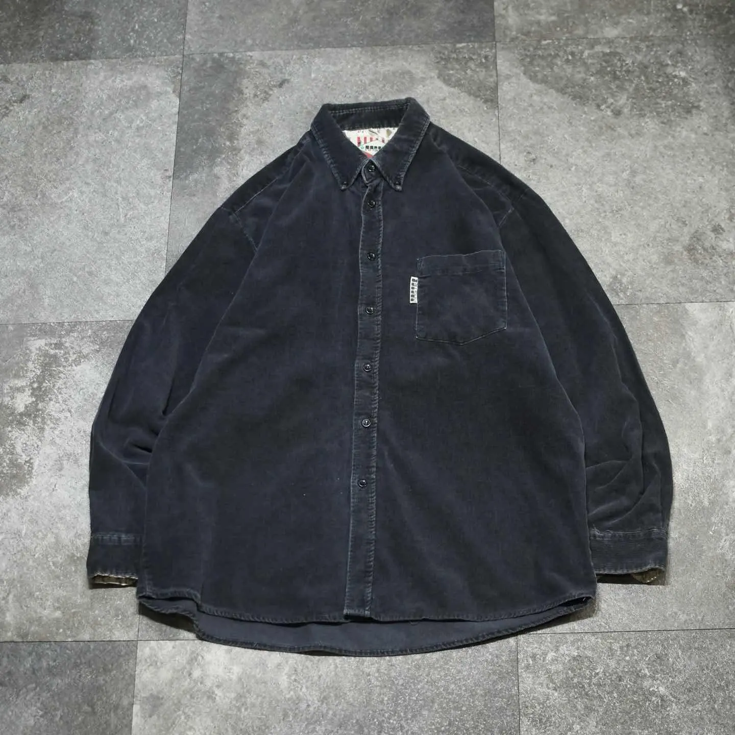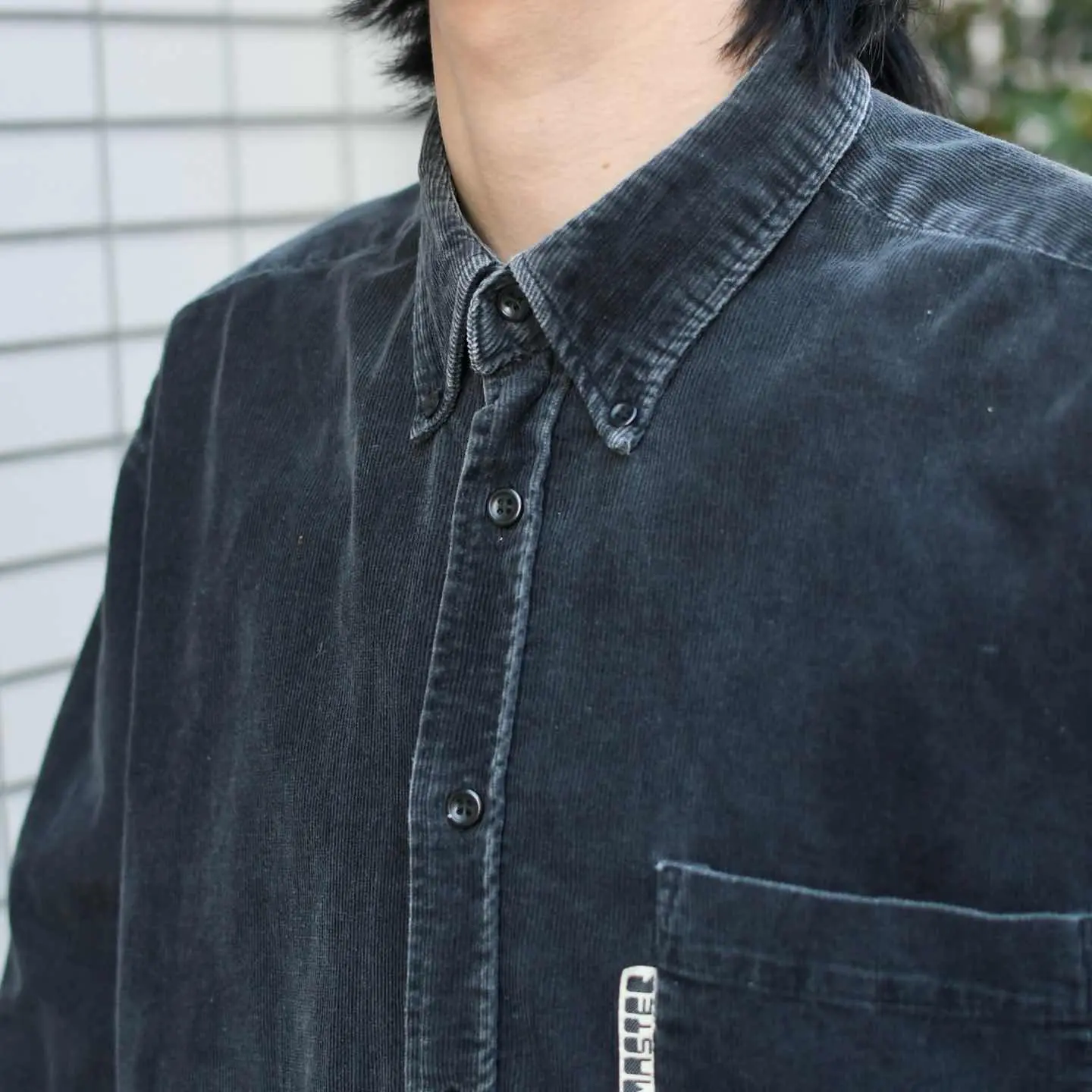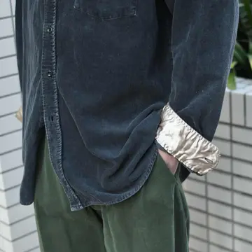 古着 フェード コーデュロイシャツ ブラック 黒 細畝 デザインシャツ