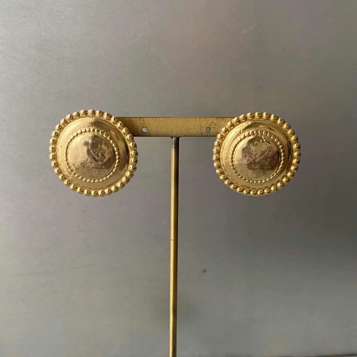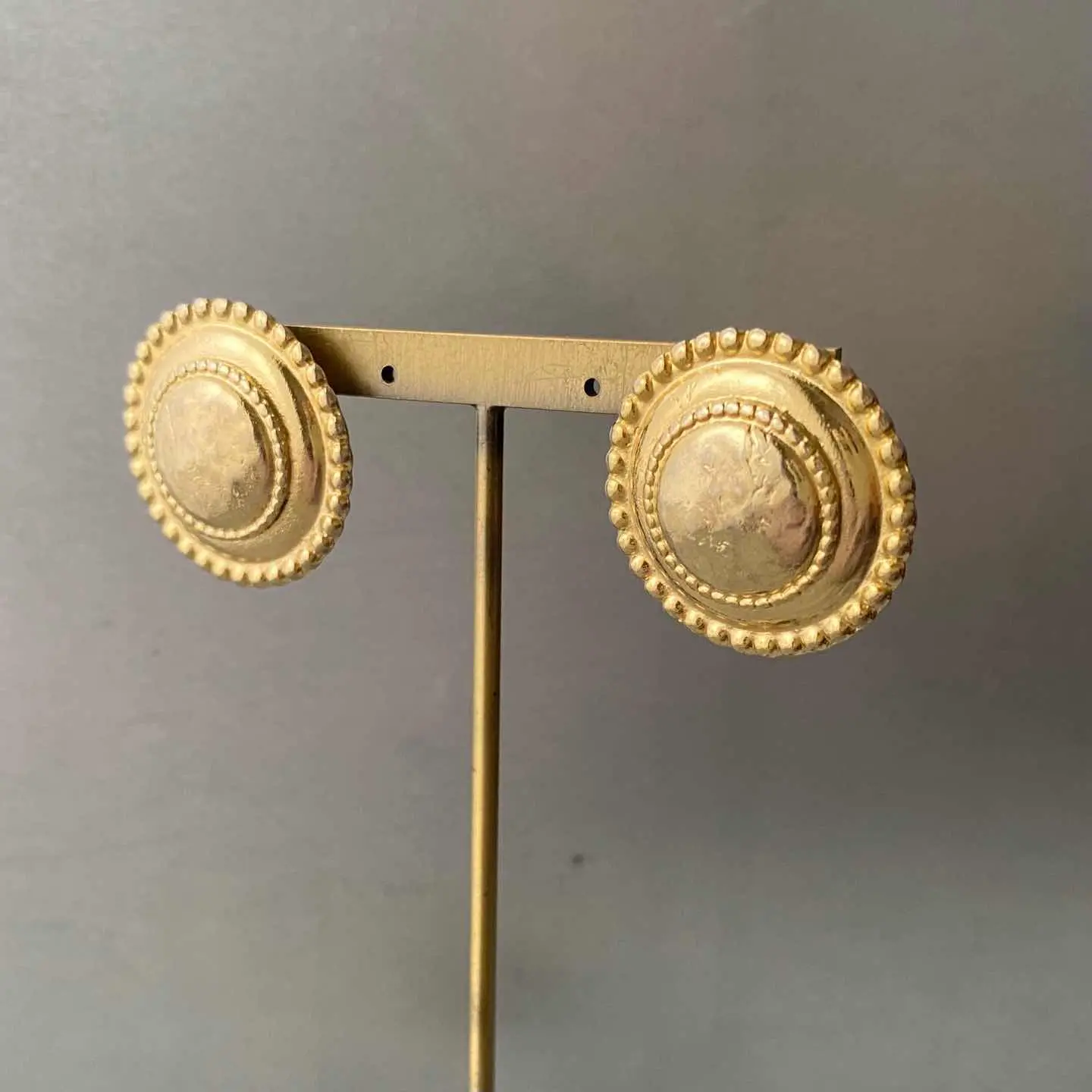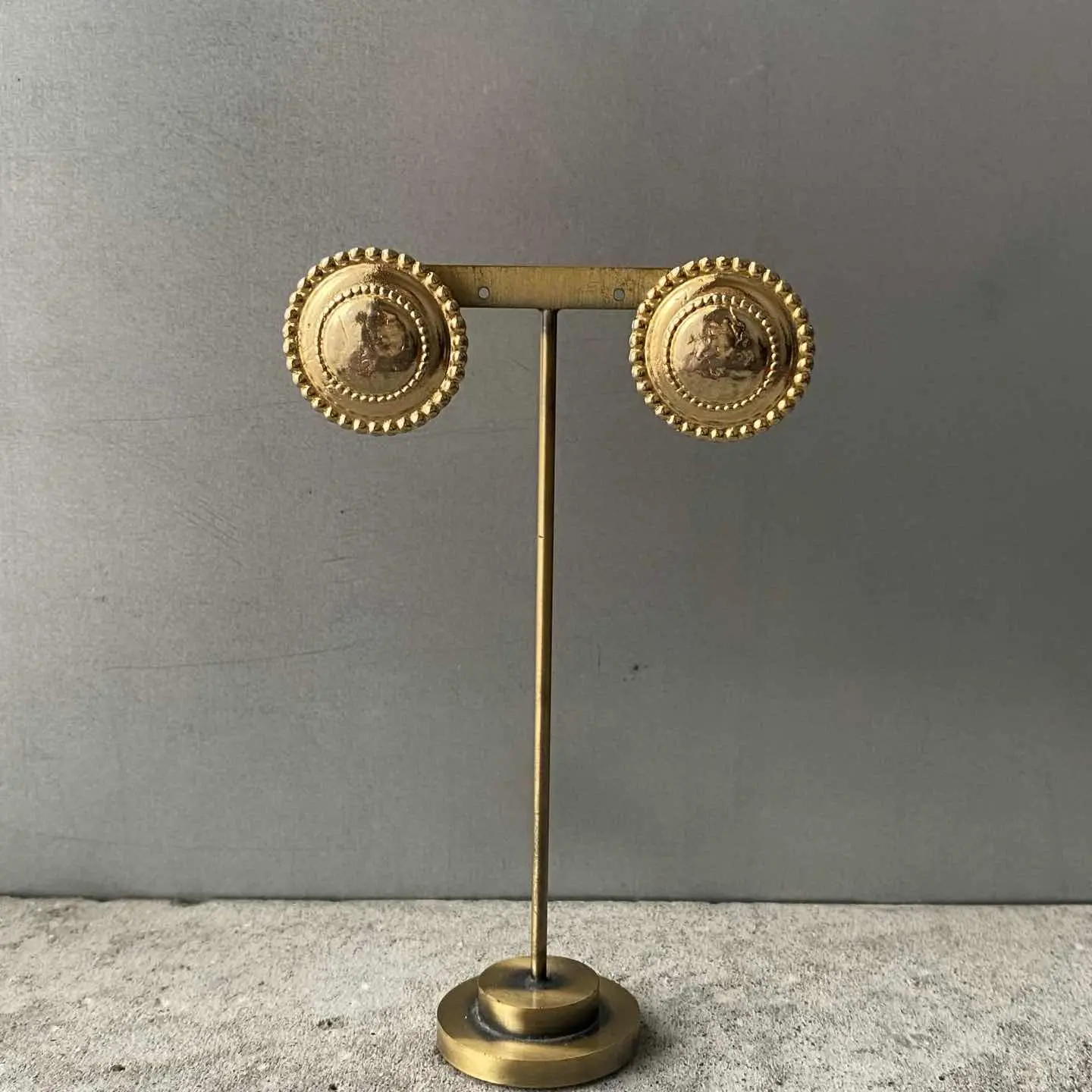レトロモードな雰囲気のUSAヴィンテージピアス。シンプルながら存在感のあるデザインで、スタイリングのアクセントにオススメです。 □Materials メタル(ゴールドメッキ) (※ピアスキャッチは新品のものに交換してまいます) □Size 直径 約2.7㎝ 13g □Condition【C】 メッキ変色がみられます。中古品であることをご理解のうえお買い求めください。ご購入前に必ずショッピングガイドのご確認をお願いいたします。 【S】未使用 【A】未使用に近い 【B】やや使用感あり 【C】使用感あり Item No.3591