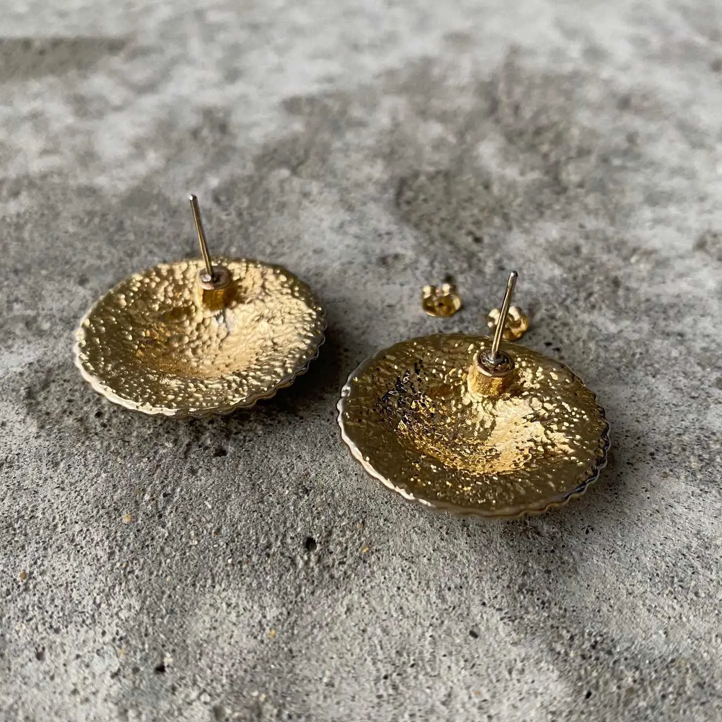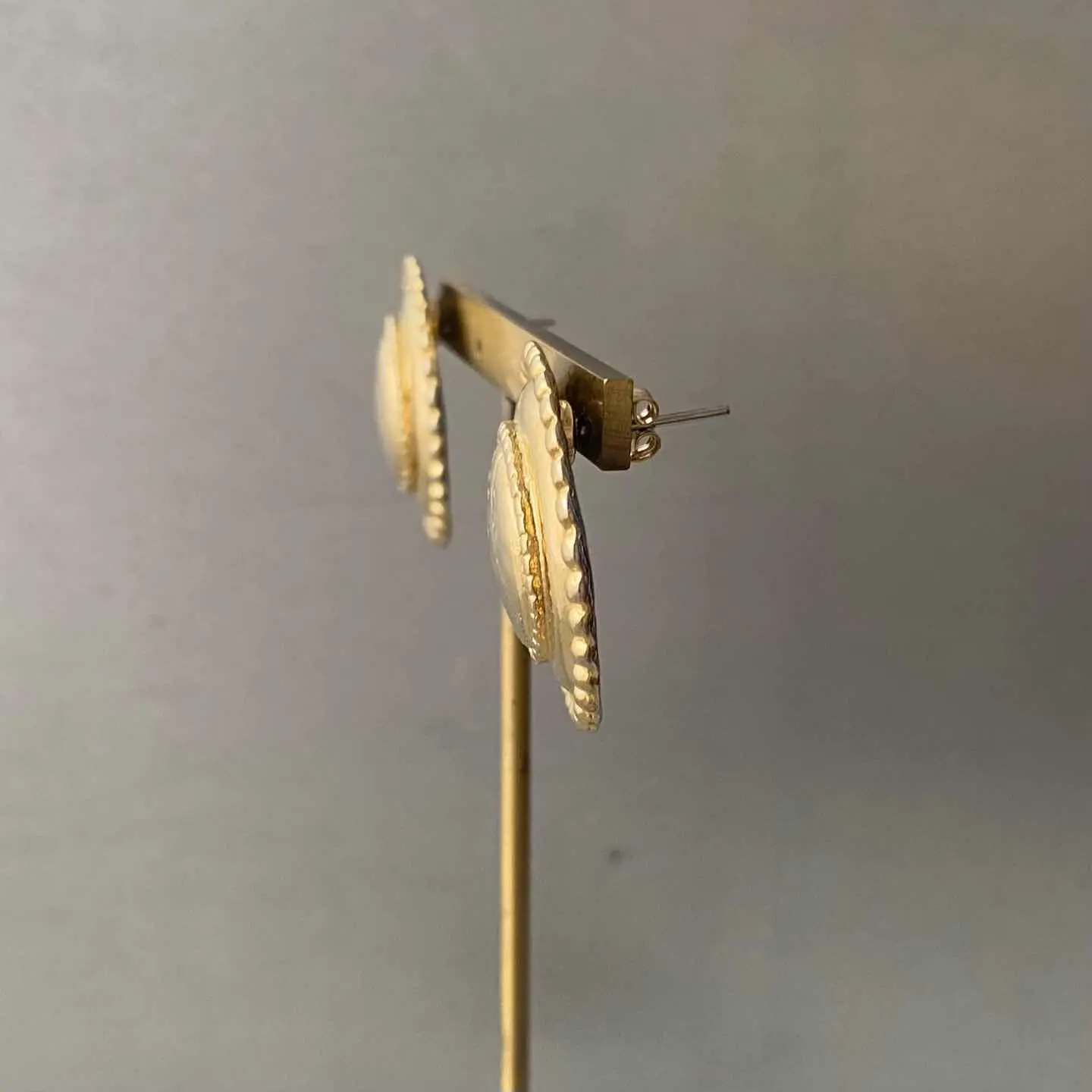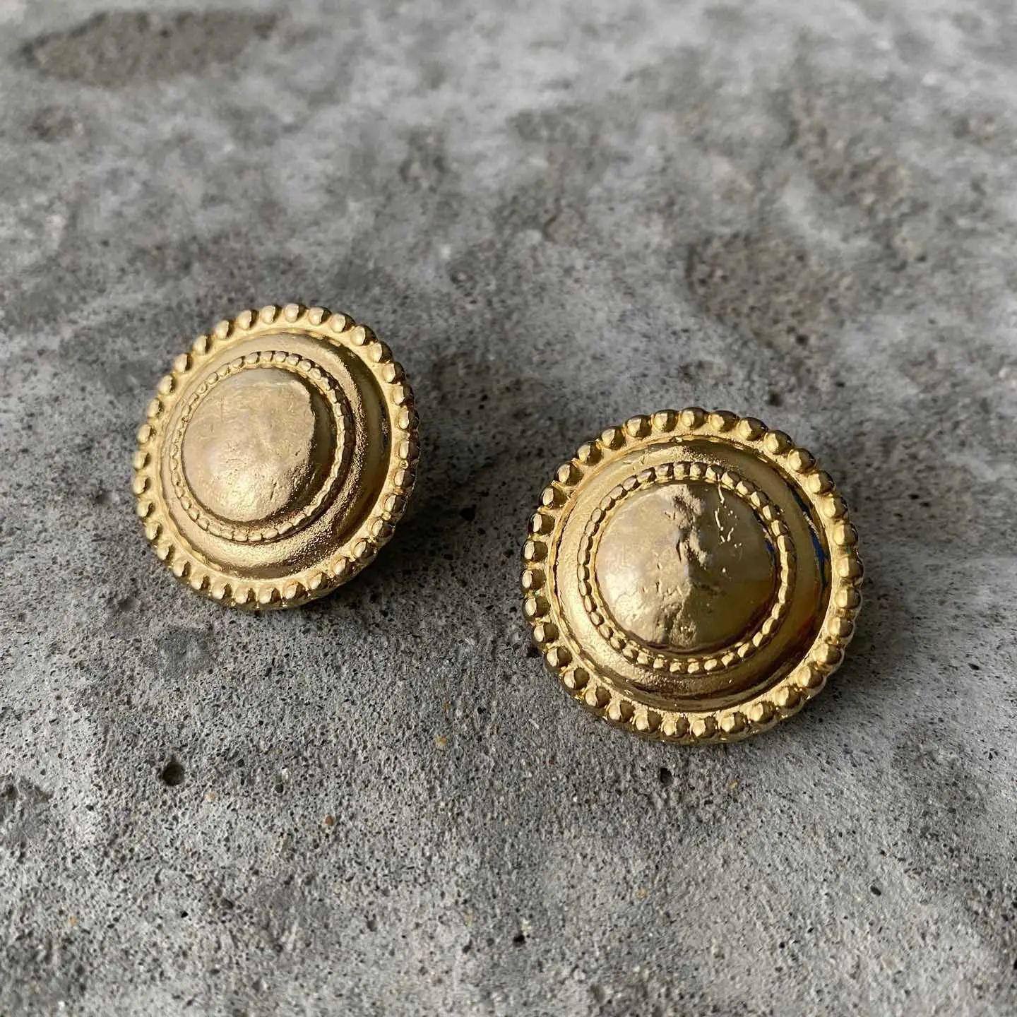 レトロモードな雰囲気のUSAヴィンテージピアス。シンプルながら存在感のあるデザインで、スタイリングのアクセントにオススメです。 □Materials メタル(ゴールドメッキ) (※ピアスキャッチは新品のものに交換してまいます) □Size 直径 約2.7㎝ 13g □Condition【C】 メッキ変色がみられます。中古品であることをご理解のうえお買い求めください。ご購入前に必ずショッピングガイドのご確認をお願いいたします。 【S】未使用 【A】未使用に近い 【B】やや使用感あり 【C】使用感あり Item No.3591