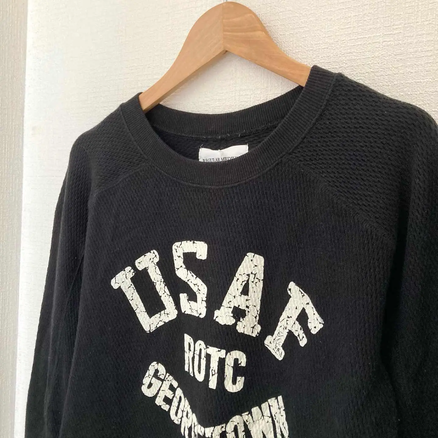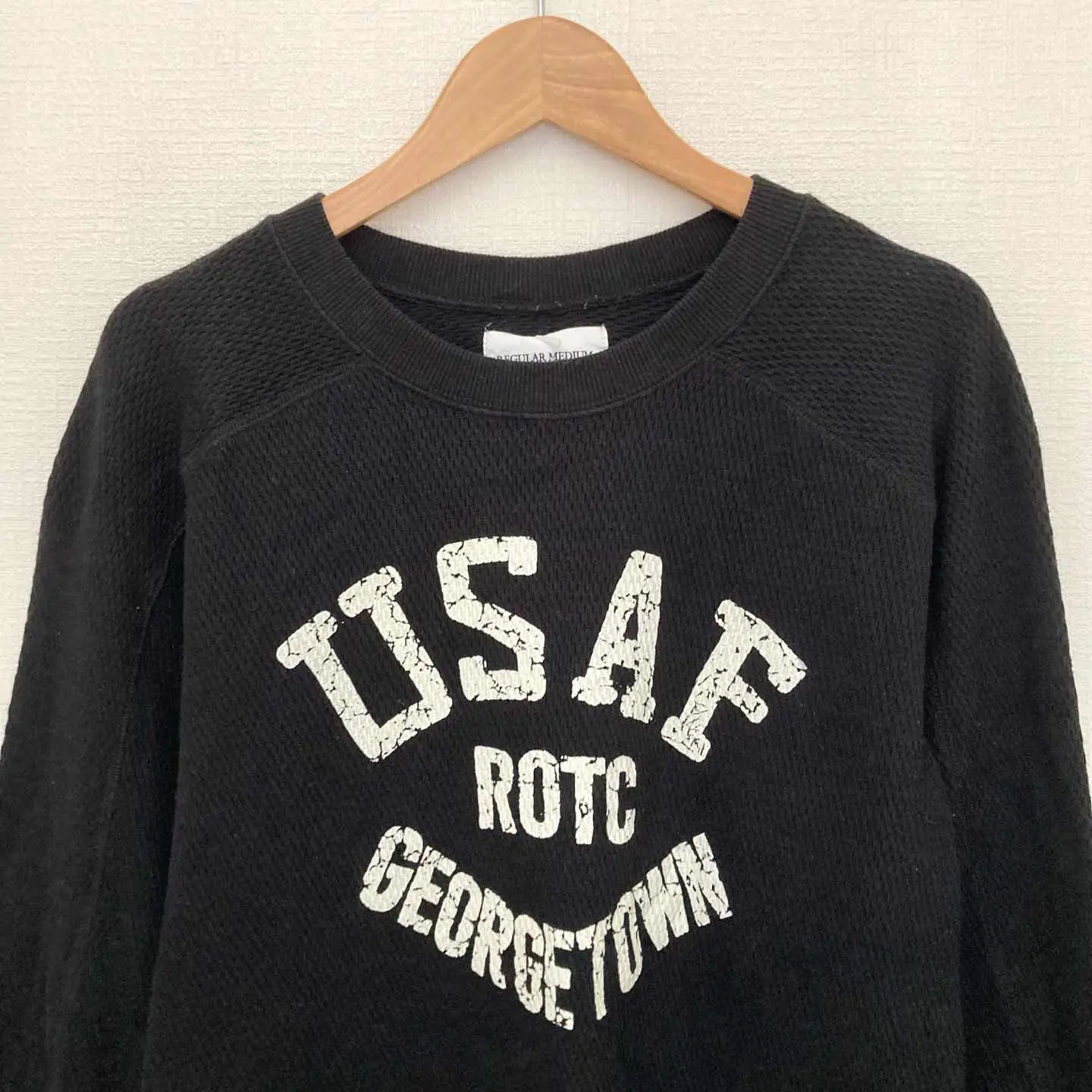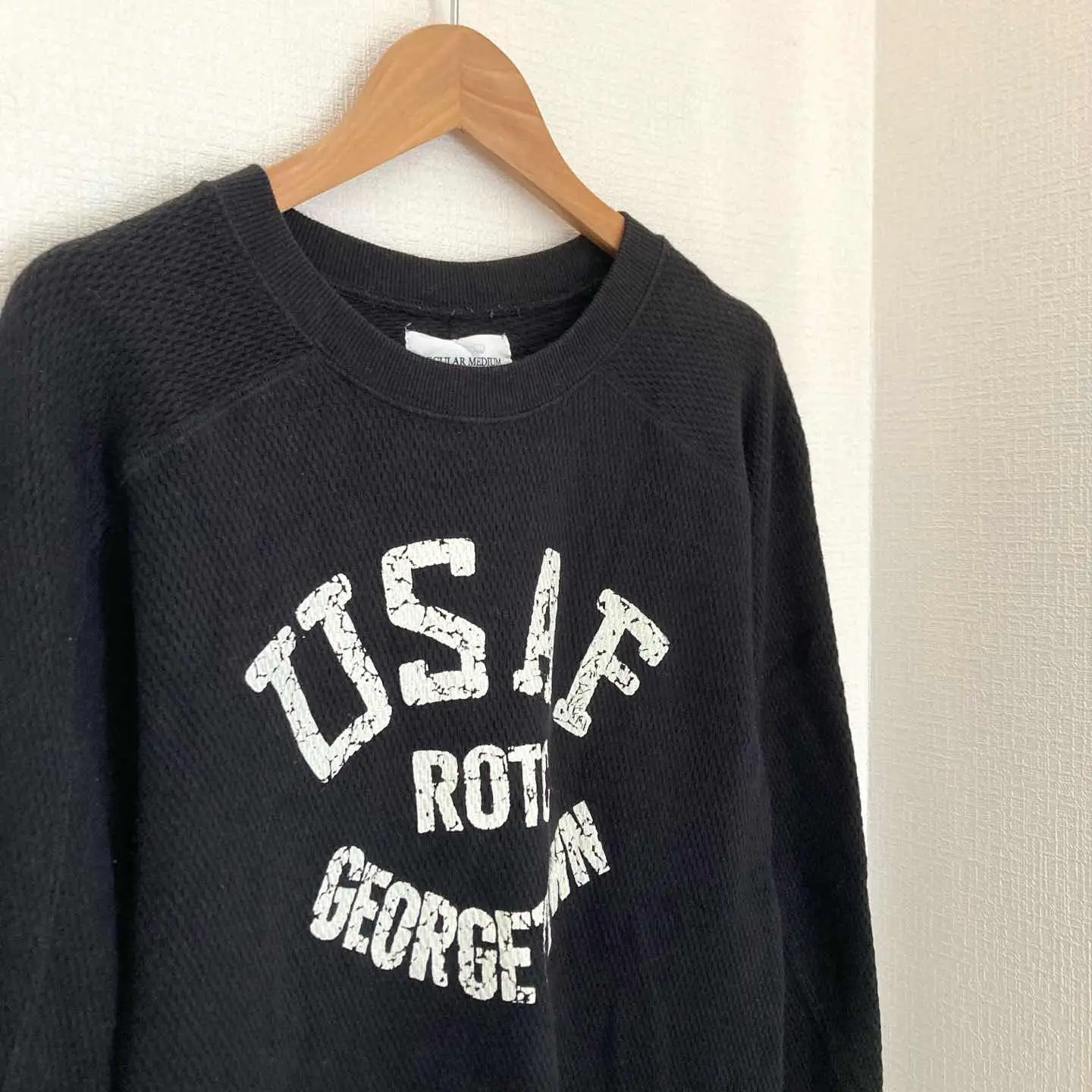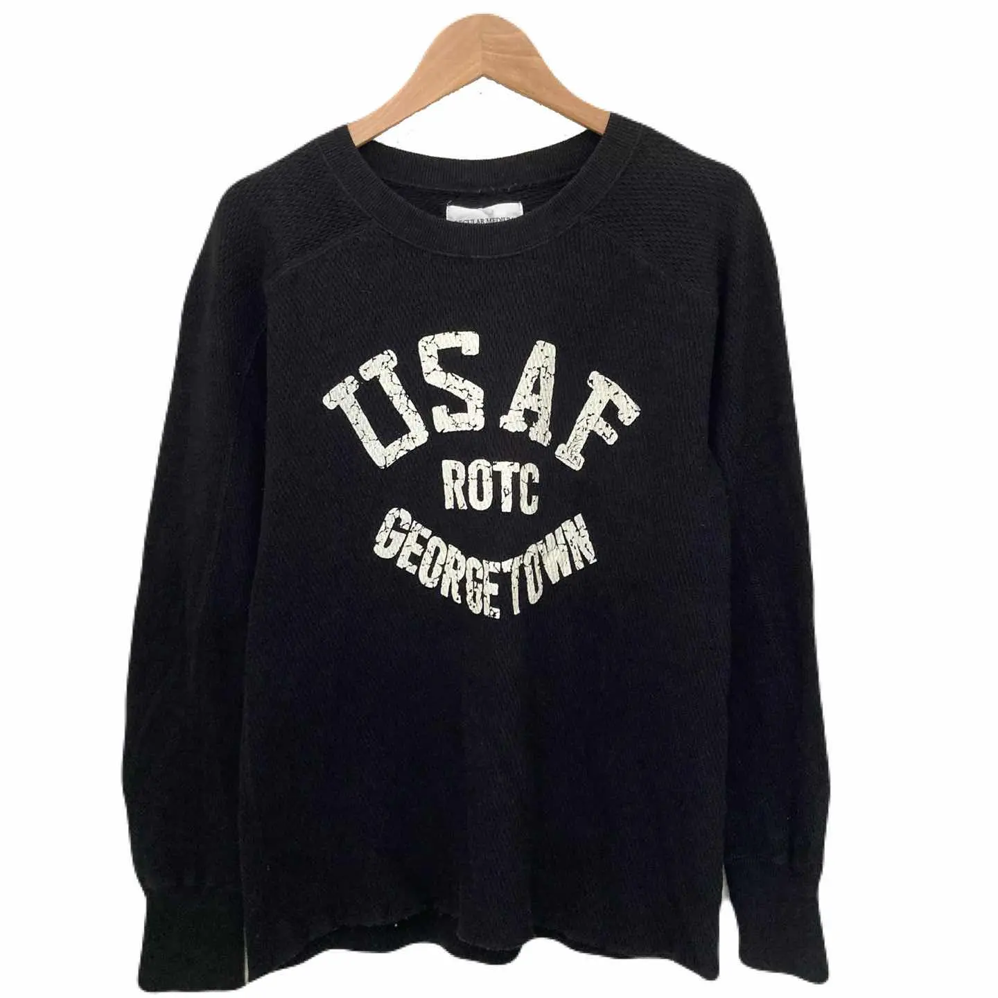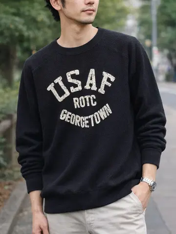 ヒューストン アメカジ ミリタリー スウェット プリント 長袖 ブラック 綿 M