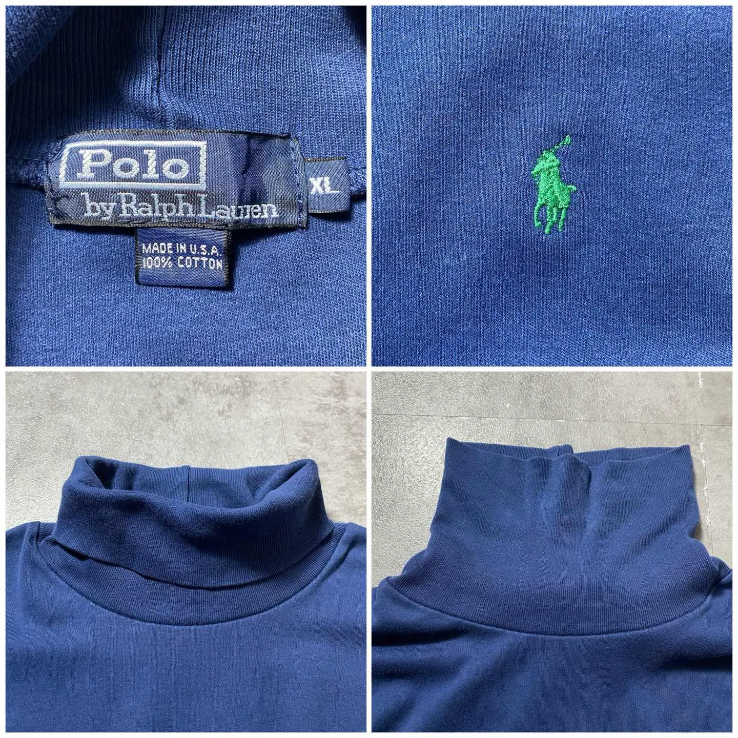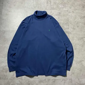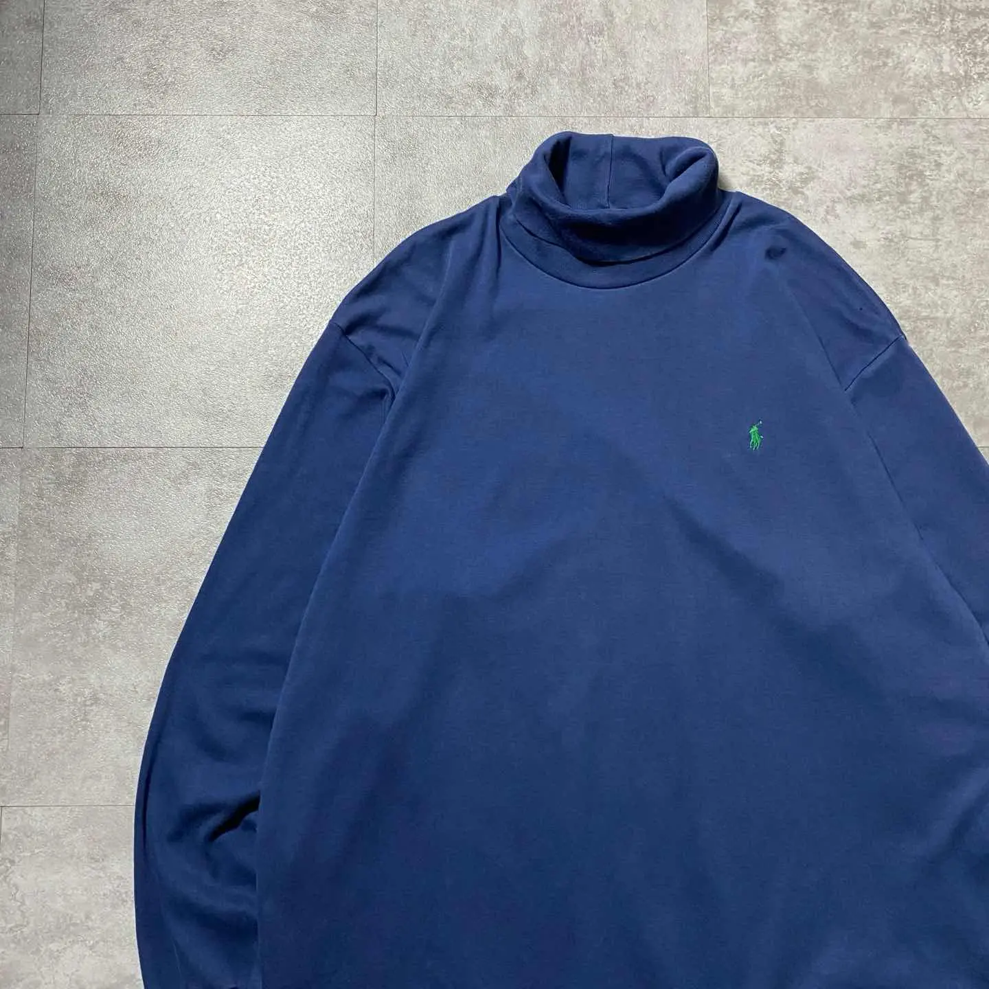 【USA製】90s ポロバイラルフローレン 刺繍ロゴ タートルネック ロンT