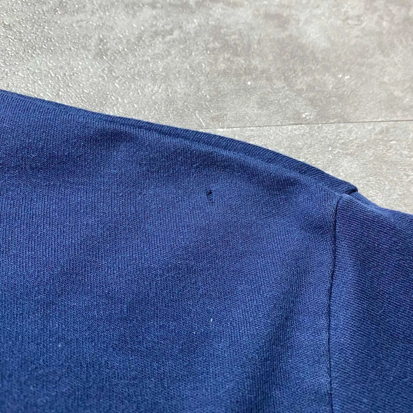 ○Size○ 表記→XL ・着丈78 ・身幅69 ・肩幅56 ・袖丈64 (cm) ○Color○ ・ネイビー ○Material○ ・100%コットン ○Condition○ ・右袖一部ブリーチ跡あり ・左肩一部小さなほつれあり ○Caution○ 当店で取り扱っている商材は全て『古着』となっております。 そのため、多少の状態難(ほつれ、傷、汚れ、リブの伸び、使用感、擦れ、色あせ、etc)がある場合がございます。 新品同様の完璧なお品物をお求めの方は当店でのお買い物を控えて頂きますよう宜しくお願いします。 また、購入された商品に関しましては、購入日時から起算して『72時間以内に』発送手続きの方を取らせて頂きます。 お急ぎの場合は購入前に当店オンラインストアの方にお問い合わせ頂きますよう宜しくお願いします。 26/395
