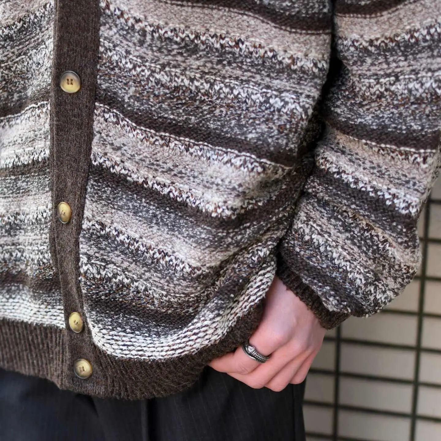 古着 イタリア製 デザイン カーディガン セーター ブラウン
