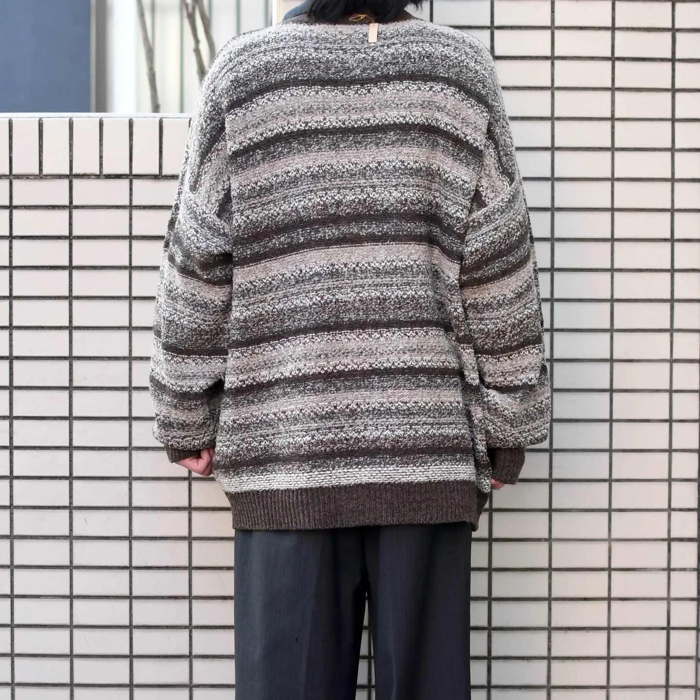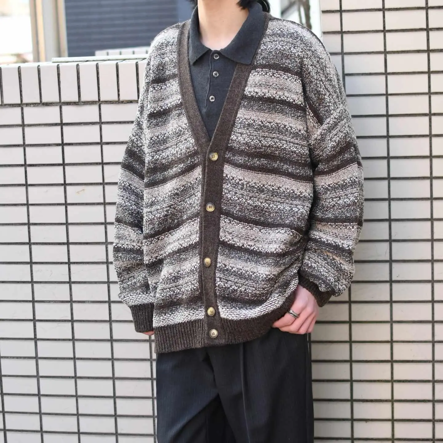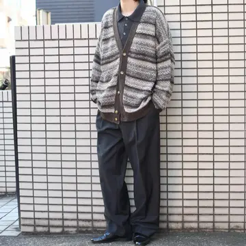 SIZE:- 着丈76cm 肩幅73cm 身幅74cm 袖丈61cm fabric/wool・acrylic made in italy 着用画像 173cm/58kg 個人的に惹かれた色使い、質感、そしてサイズ感。 アースカラーが好きな自分にとって、 其れを重ね合わせた地層のような編み方には 心躍りますし、意外にも様々な色の糸を 使用しているのもポイントです。 比較的ざっくりとした編み込みだからこそ、 落ち感のあるシルエットで 尚且つサイズバランスの整ったゆとりのある サイズ感なのが◎ サイズ選びが難しいと感じるカテゴリーですが、 中でも安心して手元に置きたいと感じた1着でした。 おすすめです。 ※撮影状況により、実物と多少色が異なる場合が ございます。 ※古着を取り扱っているため、気づかない汚れや ほつれ等がある場合がございます。 ※サイズは着用感で選んでおり、 表記サイズは説明欄の最初に記載しております。 古着 オーバーサイズ old vintage ヴィンテージ used 80's 90's アメリカ古着 ユーロ古着 POLO RALPH LAUREN Eddie Bauer OLD GAP LANDS' END ランズエンド LLBean エルエルビーン オールドギャップ エディーバウアー ラルフローレン ブルックスブラザーズ Brooks Brothers ベージュ 茶色 ニット などがお好きな方 #vintage #オーバーサイズ #old #used #90s #80s #古着 #ヴィンテージ #LLBean #エルエルビーン #EddieBauer #エディーバウアー #oldgap #オールドギャップ #LANDSEND #ランズエンド #NAUTICA #ノーティカ #ラルフローレン #POLORALPHLAUREN #ブルックスブラザーズ #BrooksBrothers #カーディガン #セーター