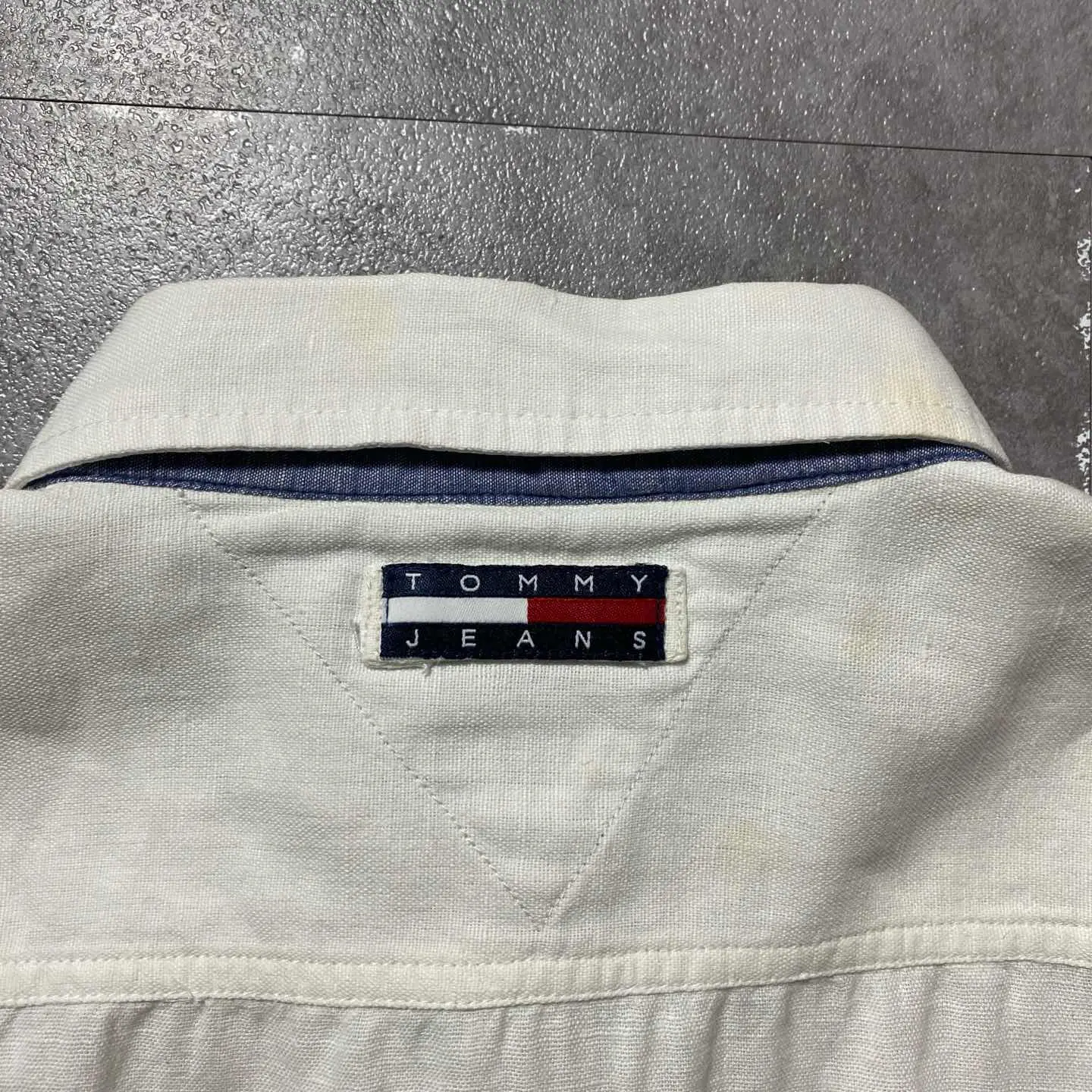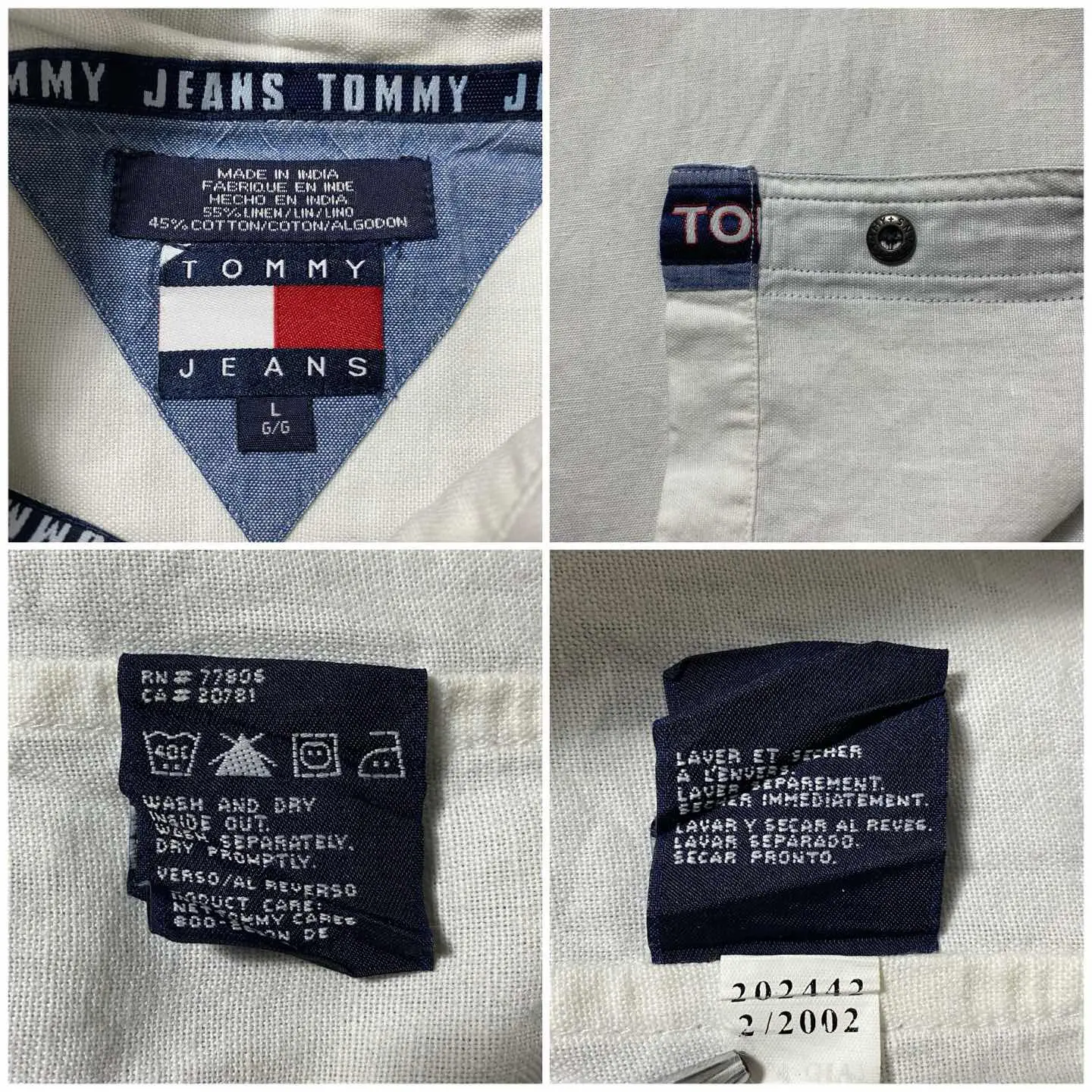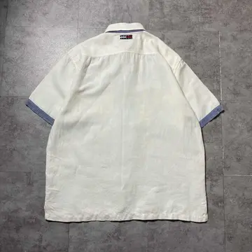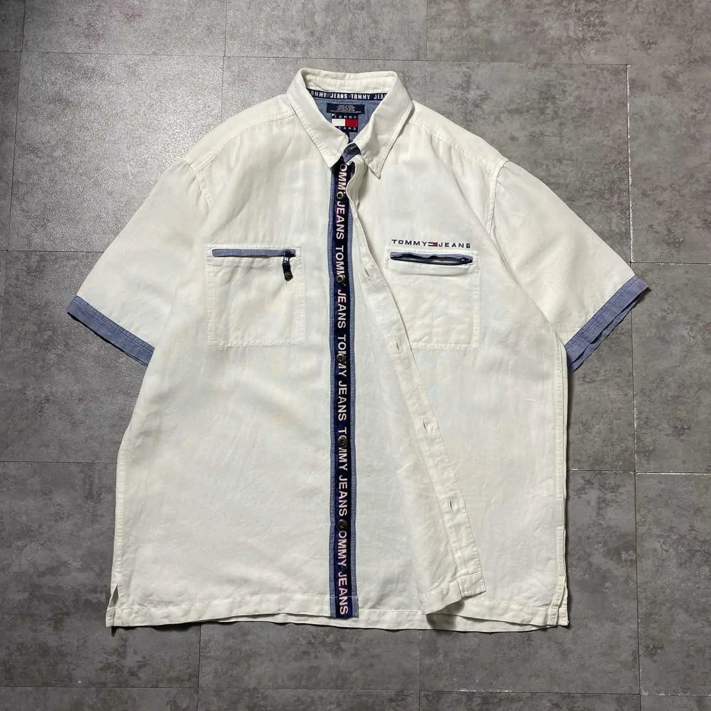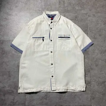 00s トミージーンズ 刺繍ロゴ ジップ付きポケット 半袖 リネンシャツ