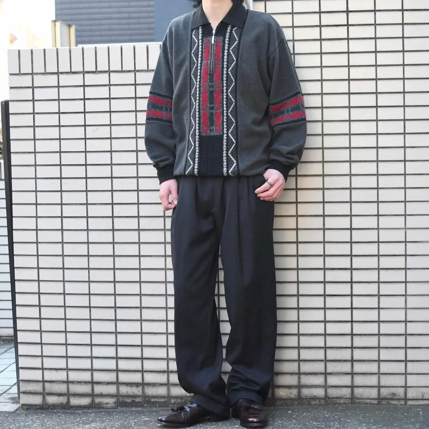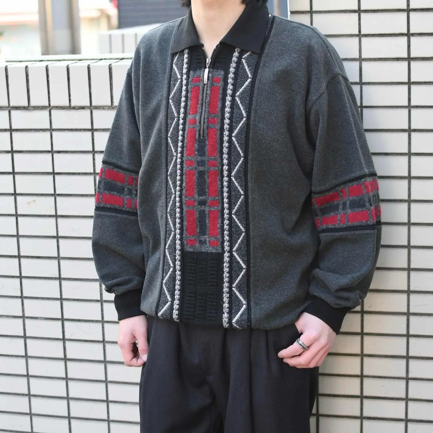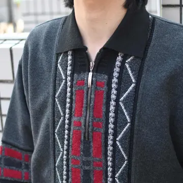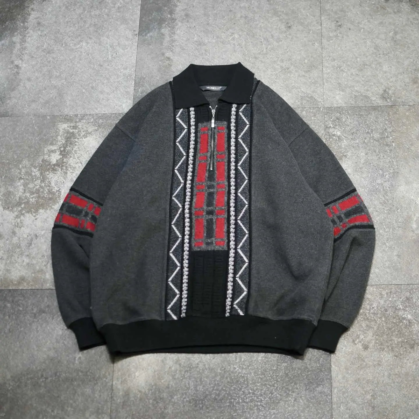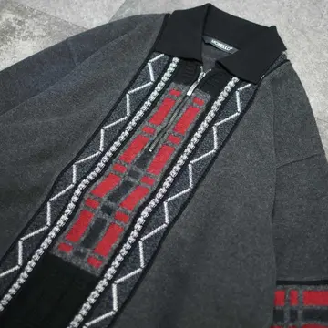 古着 デザインニット ハーフジップニット ニットポロ ニット セーター グレー