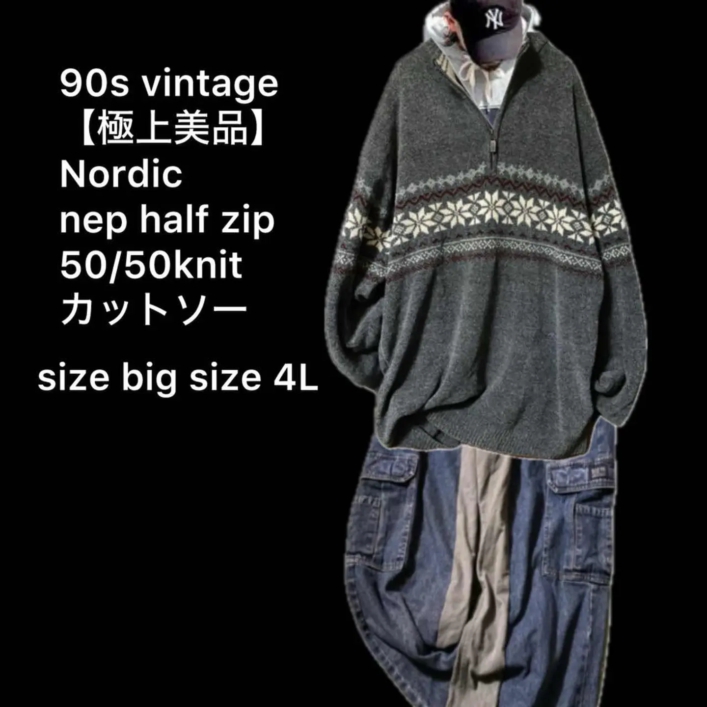 90s 極上美品 nep half zip 50/50 knit カットソー 4L 古着好きには、たまらない、 90sの、魅力の塊といって過言では、ない、ビックサイズnep50/50の、ハーフジップが、トレンド直撃!!knit、カットソー!! halfzipに、Nordic柄、さらには、ゆるっとしたサイズが、おしゃれを知り尽くしたこなれた感すら醸し出す最高の1着です。 今回はアメカジストリートにしました。サイジングを活かして様々な、コーデに対応します!!是非ともお手にして、試してほしい、パーフェクトな、極上美品の、vintage体感下さい^_^ ▷color◁ 画像通り霜降りnep ※ブラウザで異なる場合ありますがかなり実物近づけてます。 ▷size◁ 平置き片面採寸【㎝表記】 表記size 4L よってキングサイズ 着丈/80 身幅/68 肩幅/70 袖丈 /64 DSは袖はハンガー採寸 ※多少の誤差は理解下さい モデル170センチ 普通体型 【参考例TシャツMがジャストくらい】 私が着てビックサイズ 【素材】 50/50cotton/アクリル 型崩れ一切しない、洗える 【状態】 美品、新品同様 #モールニット #90svintage #ノルディッグセータ #ハーフジップ #オーバーサイズ #メランジ
