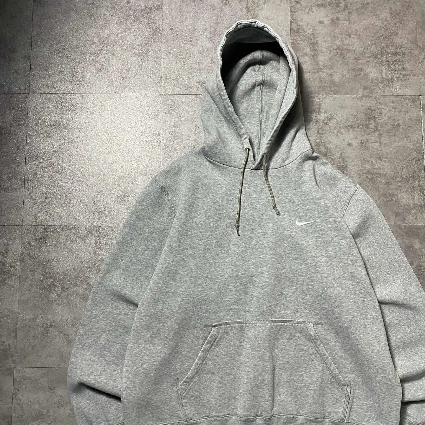 【XL】00s ナイキ スウォッシュ刺繍ワンポイント ダメージ パーカーフーディ