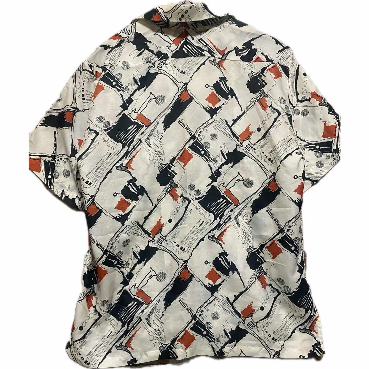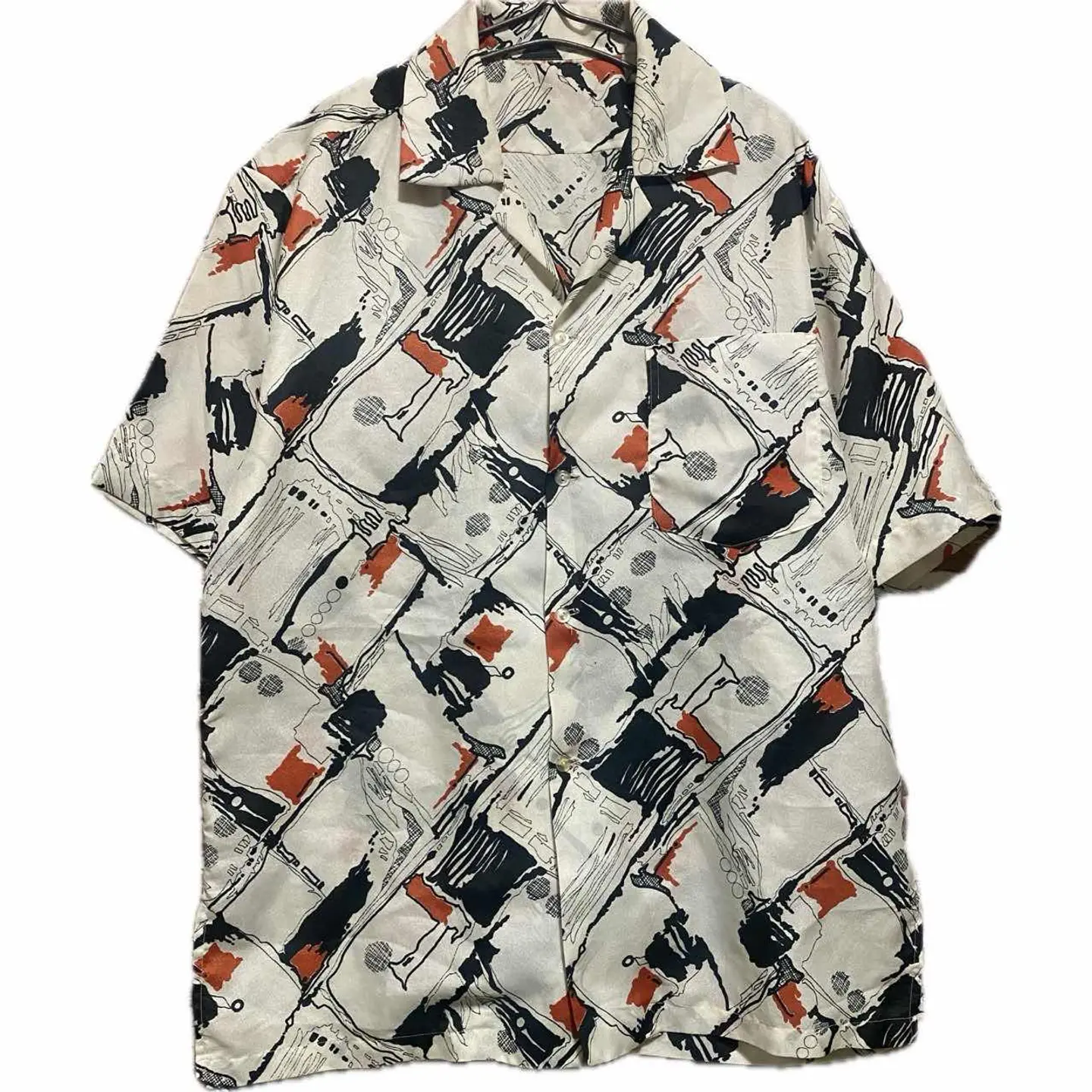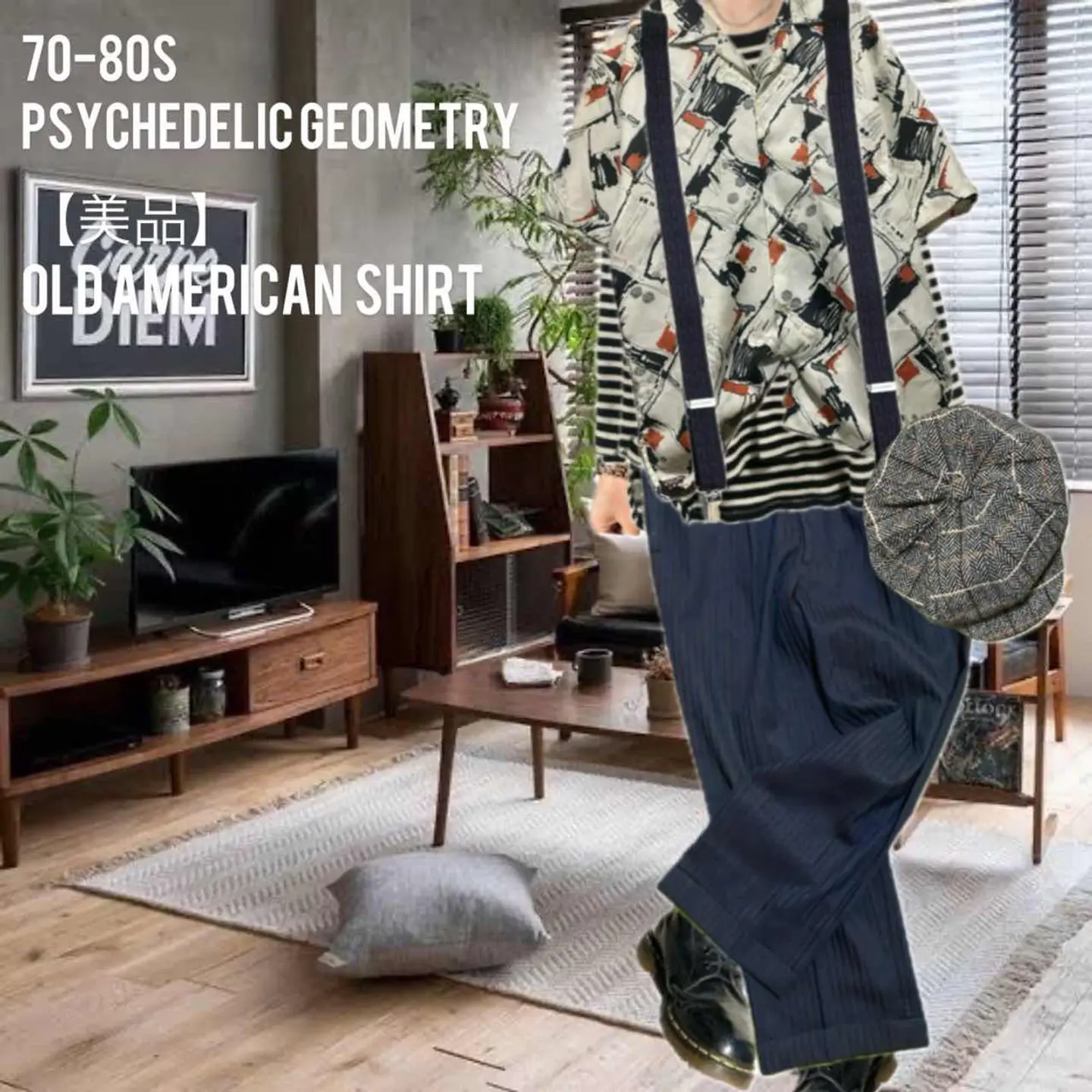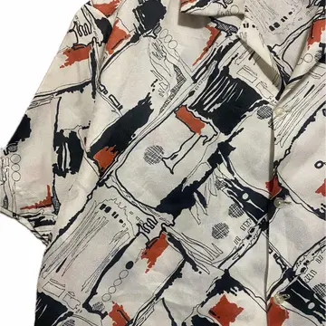 70-80s 【美品】特注 サイケデリック 幾何学 tradシャツ L 1940年から1950年にかけて流行ったオールドアメリカン、またはレトロアメリカンと言われるスタイルを70年から80年にかけてオーダーメイドしたと思われるシャツです。理由は簡単です。マテリアルタグはすでに義務化されてるのに、それが一切ないのはオーダーメイド さらにシルエットですね。70年代の鋭い襟の形を残しつつ、脱力感のある身幅とちょいドロップショルダー80年代の初期の形が混じっていますので、70年から80年と簡単に推測できます。 それをアメリカントラッドスタイル195 0年のコーディネートに決めてみました。働く男達がおしゃれにキメ込んだりしていたスタイルになります。参考になりましたらよろしくお願いします。 ▷color◁ 写真通りサイケデリックな、geometry【幾何学柄】 ※ブラウザで異なる場合ありますがかなり実物には、近づけてます、 ▷size◁ 平置き片面採寸【㎝表記】 表記size Lくらい採寸判断 ですが、人によりますが、XLもいけそう 着丈/75 身幅/58 肩幅/50DS 袖丈 /30 DSは袖はハンガー採寸 ※多少の誤差は理解下さい 170/Mジャスト体型の私が着て、✔️参考に ジャスト オーバーサイズ✔︎、 ビックサイズ 【素材】 おそらくポリですが、凹凸タイプで、かなり、着心地よい、 【状態】 美品 検品、洗濯、検品で、3回チェックして発送しますので、ご安心して、お買い求め下さい!!