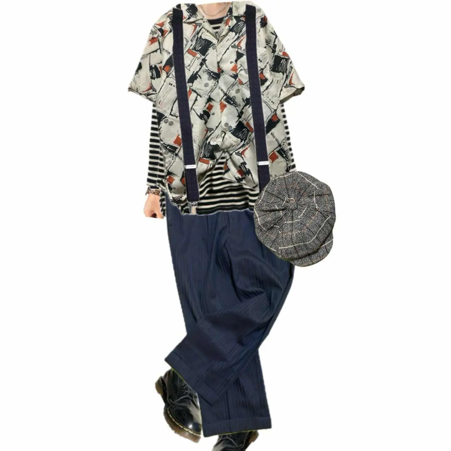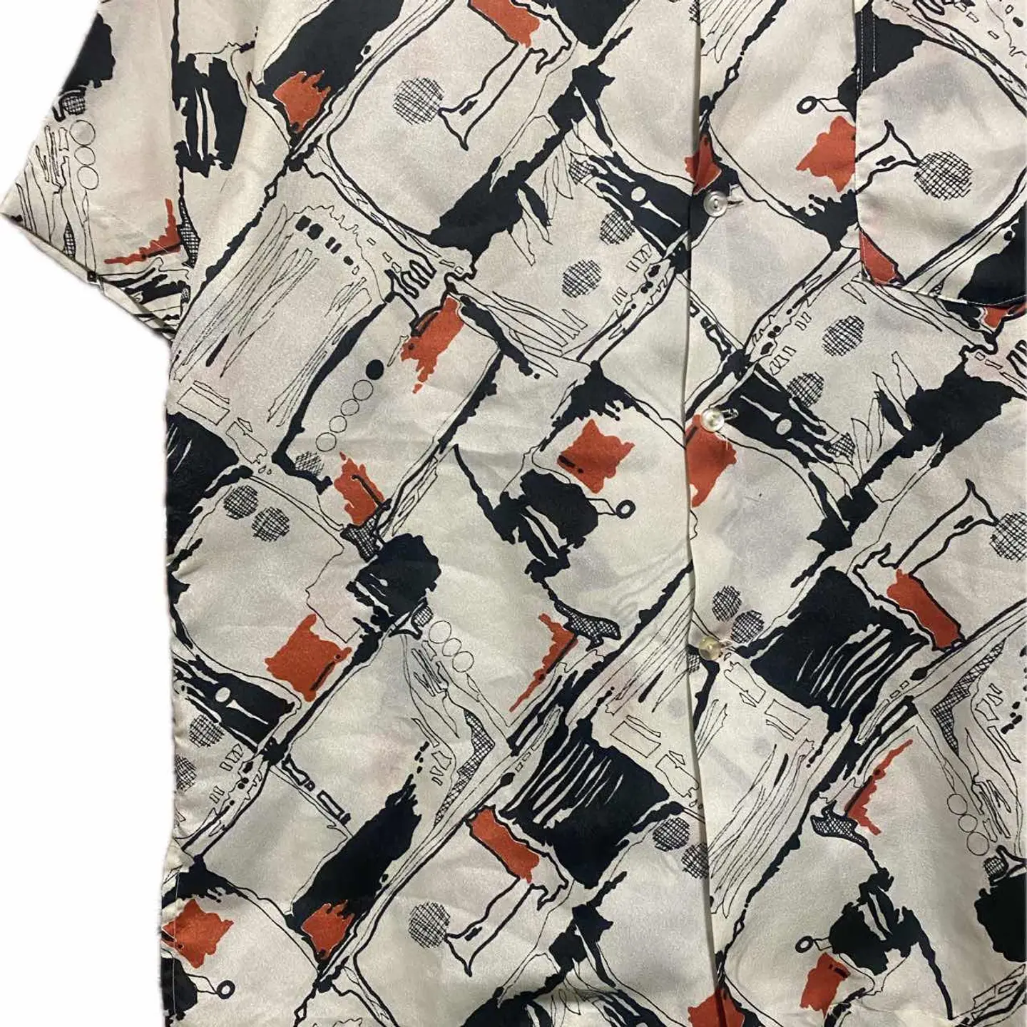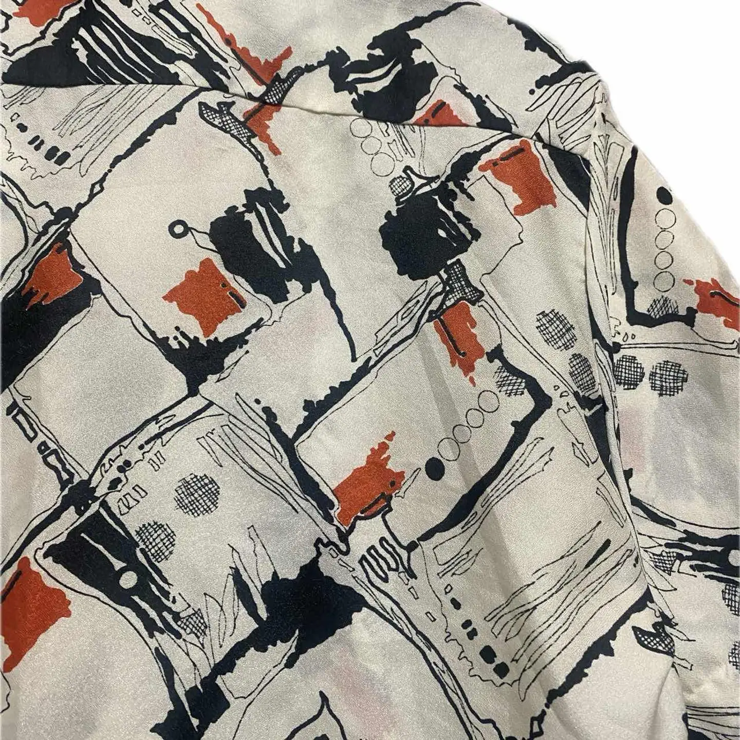 70-80s 【美品】特注 サイケデリック 幾何学 tradシャツ L 1940年から1950年にかけて流行ったオールドアメリカン、またはレトロアメリカンと言われるスタイルを70年から80年にかけてオーダーメイドしたと思われるシャツです。理由は簡単です。マテリアルタグはすでに義務化されてるのに、それが一切ないのはオーダーメイド さらにシルエットですね。70年代の鋭い襟の形を残しつつ、脱力感のある身幅とちょいドロップショルダー80年代の初期の形が混じっていますので、70年から80年と簡単に推測できます。 それをアメリカントラッドスタイル195 0年のコーディネートに決めてみました。働く男達がおしゃれにキメ込んだりしていたスタイルになります。参考になりましたらよろしくお願いします。 ▷color◁ 写真通りサイケデリックな、geometry【幾何学柄】 ※ブラウザで異なる場合ありますがかなり実物には、近づけてます、 ▷size◁ 平置き片面採寸【㎝表記】 表記size Lくらい採寸判断 ですが、人によりますが、XLもいけそう 着丈/75 身幅/58 肩幅/50DS 袖丈 /30 DSは袖はハンガー採寸 ※多少の誤差は理解下さい 170/Mジャスト体型の私が着て、✔️参考に ジャスト オーバーサイズ✔︎、 ビックサイズ 【素材】 おそらくポリですが、凹凸タイプで、かなり、着心地よい、 【状態】 美品 検品、洗濯、検品で、3回チェックして発送しますので、ご安心して、お買い求め下さい!!