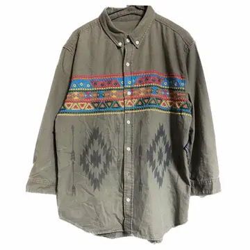 70s R.B.U シャツ リメイク猫目ボタン オルテガ 刺繍 Fメイソン