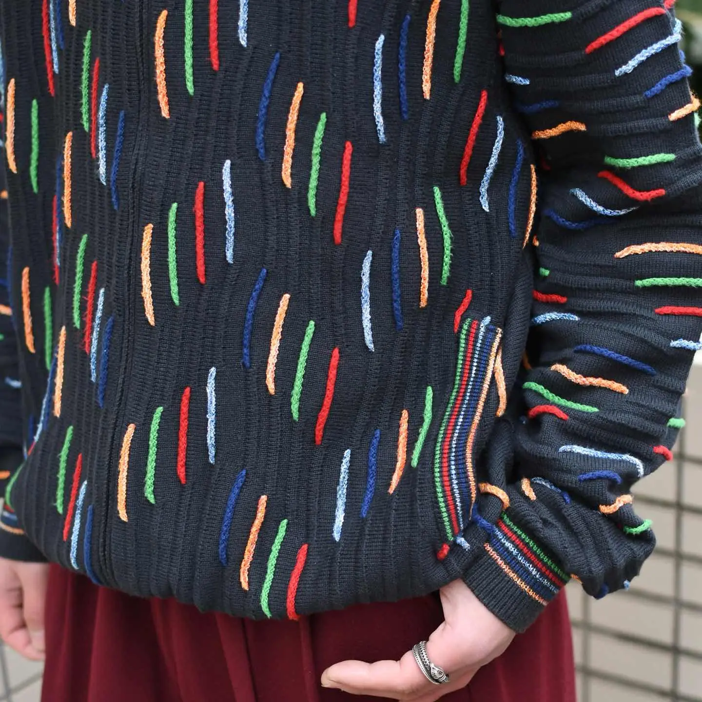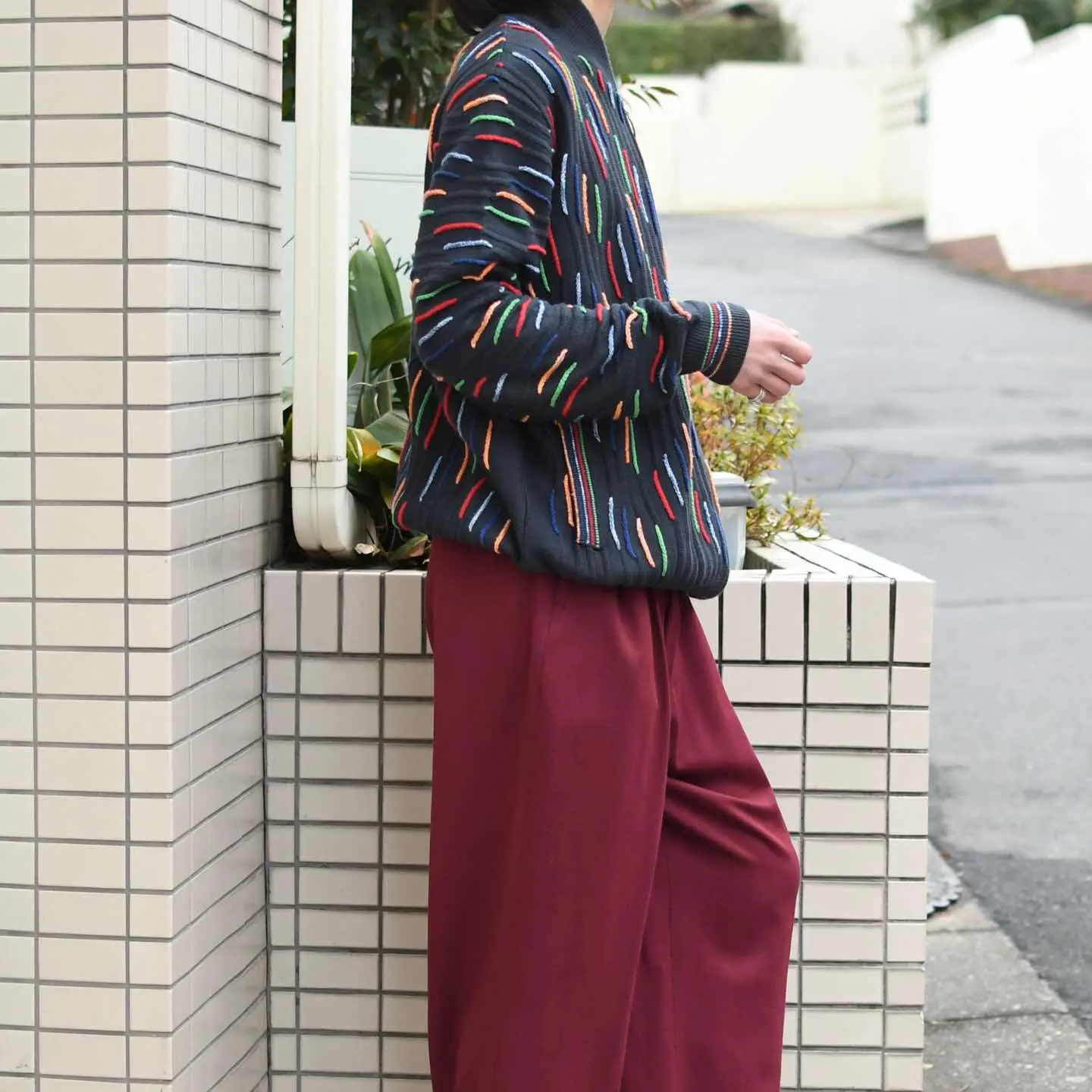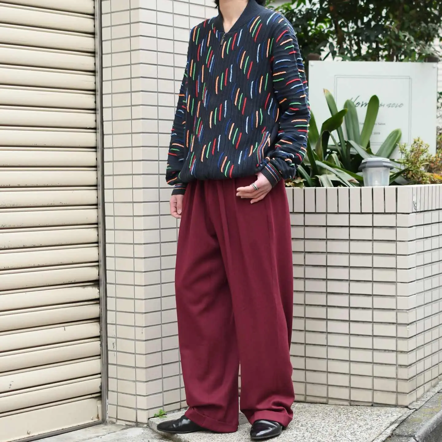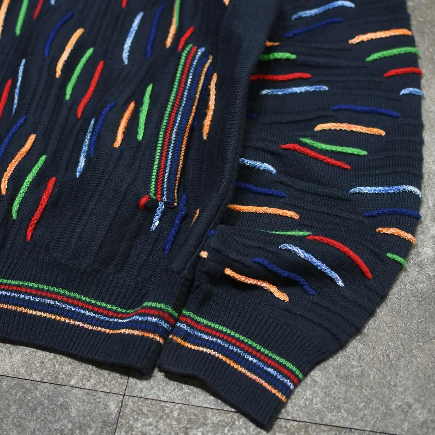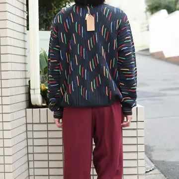 SIZE:- 着丈68cm 肩幅50cm 身幅61cm 袖丈69cm fabric/cotton・acrylic made in italy 着用画像 173cm/58kg 珍品3Dニット、とでも言いましょうか。 通常の3Dニットとは根本的に違うデザイン、 そしてフルジップのドライバーズ型。 間違いなくスペシャルです。 色とりどり且つ、色ごとに素材を変えるほど 手の込んだ逸品... コーデの主役として、カーディガンや ブルゾン代わりとして、色々な立ち位置で 落とし込んでみてはどうでしょう。 心躍る古着です。 ※撮影状況により、実物と多少色が異なる場合が ございます。 ※古着を取り扱っているため、気づかない汚れや ほつれ等がある場合がございます。 ※サイズは着用感で選んでおり、 表記サイズではございません。 表記サイズは説明欄の最初に記載しております。 オーバーサイズ old vintage ヴィンテージ used 80's 90's アメリカ古着 ユーロ古着 POLO RALPH LAUREN Eddie Bauer OLD GAP LANDS' END ランズエンド LLBean エルエルビーン オールドギャップ エディーバウアー ラルフローレン ブルックスブラザーズ Brooks Brothers ブラック デザインニット 黒 ドライバーズニット などがお好きな方 #vintage #オーバーサイズ #old #used #90s #80s #古着 #ヴィンテージ #LLBean #エルエルビーン #EddieBauer #エディーバウアー #oldgap #オールドギャップ #LANDSEND #ランズエンド #NAUTICA #ノーティカ #ラルフローレン #POLORALPHLAUREN #ブルックスブラザーズ #BrooksBrothers #3dニット #ニット #セーター #ドライバーズニット #デザインニット