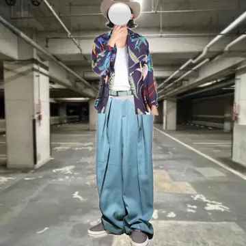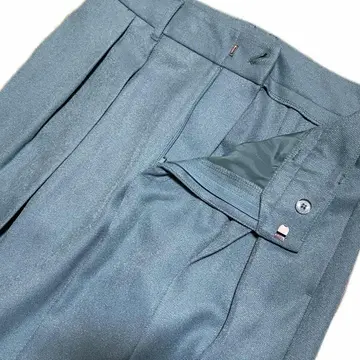80s 【の極上美品】 センターPress ゆるストレート ボトム レアカラー 一目で目を引く激レア ターコイズグリーンのカラーに、センタープレスが、シルエットを格上げする! センタープレス、フロントに直線の後をつけ美しく仕上げる。フォーマルボトムによく使われる技法70年から80年代のラストテストサンプルと思われる。美品ゆるだぼストレート 2タックにより、さらに、美しく決まるシルエットは、圧巻の一言 しかも、バイアスに仕上げ年中活躍、 現代のスタンスと、ミックスしたコーデにしました、 シャツワコマリアで、決まりましたね^_^ ▷color◁ 現代ないカラー廃盤塗料よって、ターコイズグリーンとしかいえませんが、写真参考に、 ※使いのブラウザにより色が変わってみえる場合あります ▷size◁ 平置き片面採寸【㎝表記】 表記size不明だが、M.くらい? 【※ウエストのみ、メジャーで一周採寸】 ウエスト79 股上35 股下73 腿渡り36 裾幅30 美しい ワイドストレート モデル170㎝/普通体型、30インチジャストな体型参考に、 ▷material◁ バイアス化繊 ▷condition◁ 新品同様 ※入念にチェックは、しておりますが、vintage/usedの特性ご理解下さい