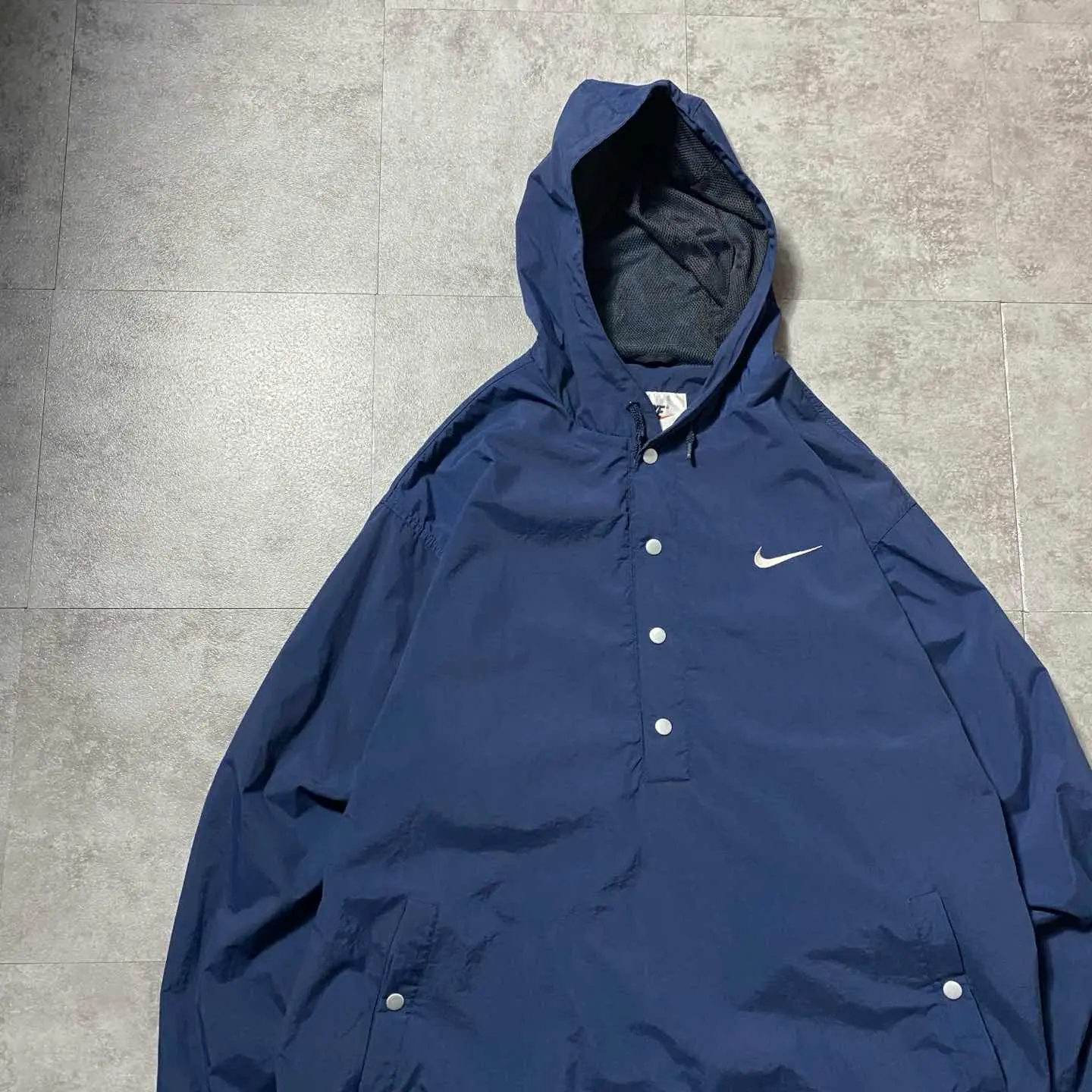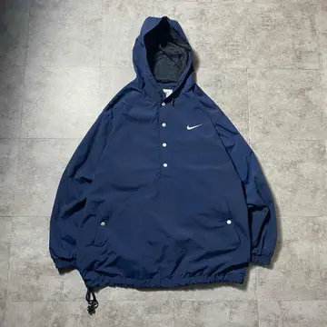 90s ナイキ スウォッシュ 刺繍ワンポイント ハーフボタン アノラックパーカー