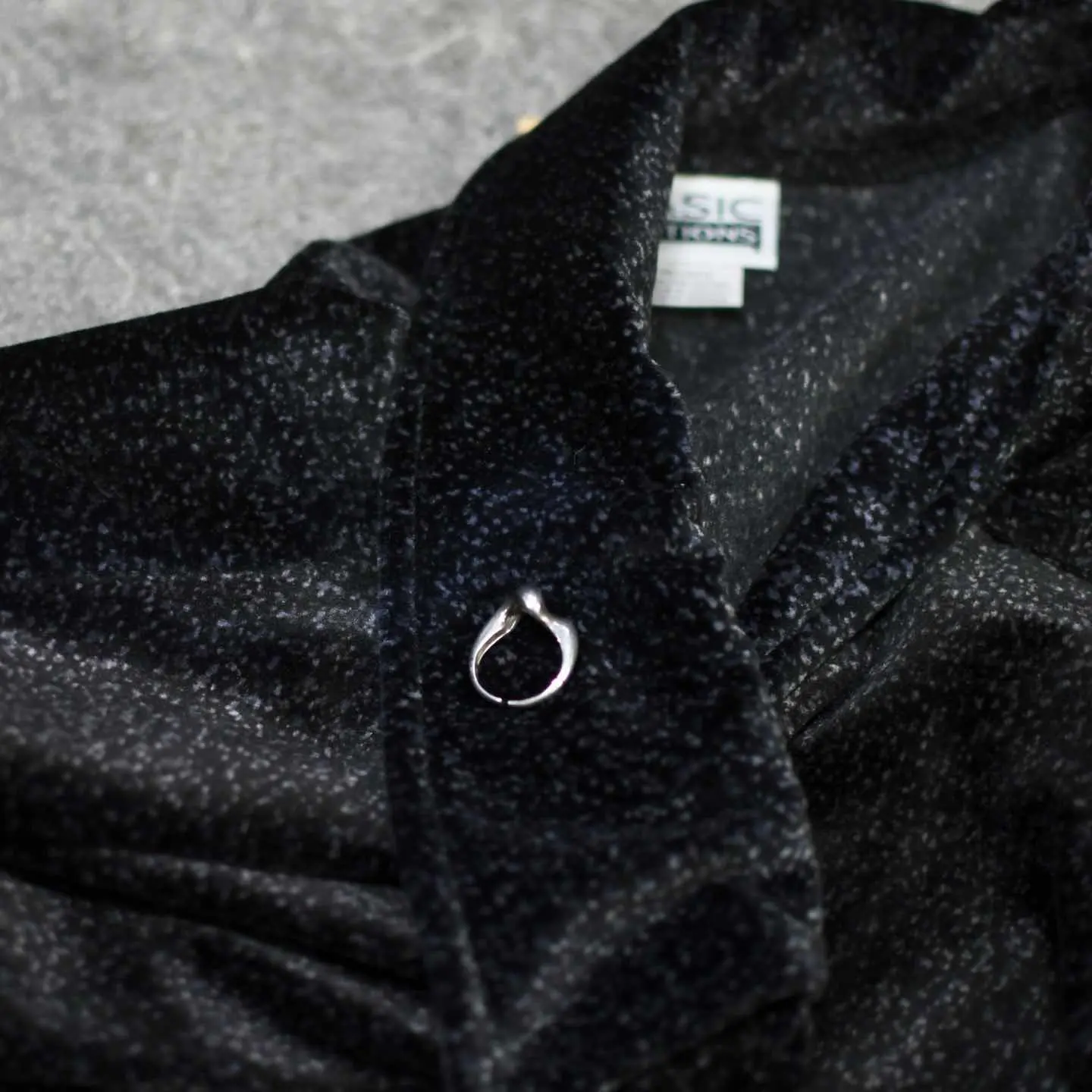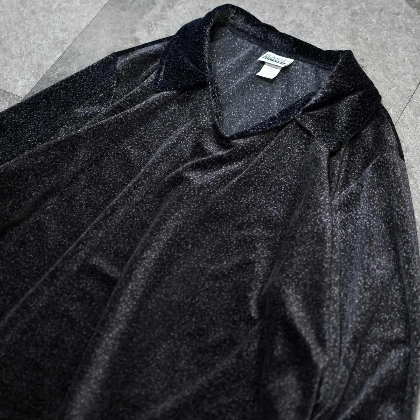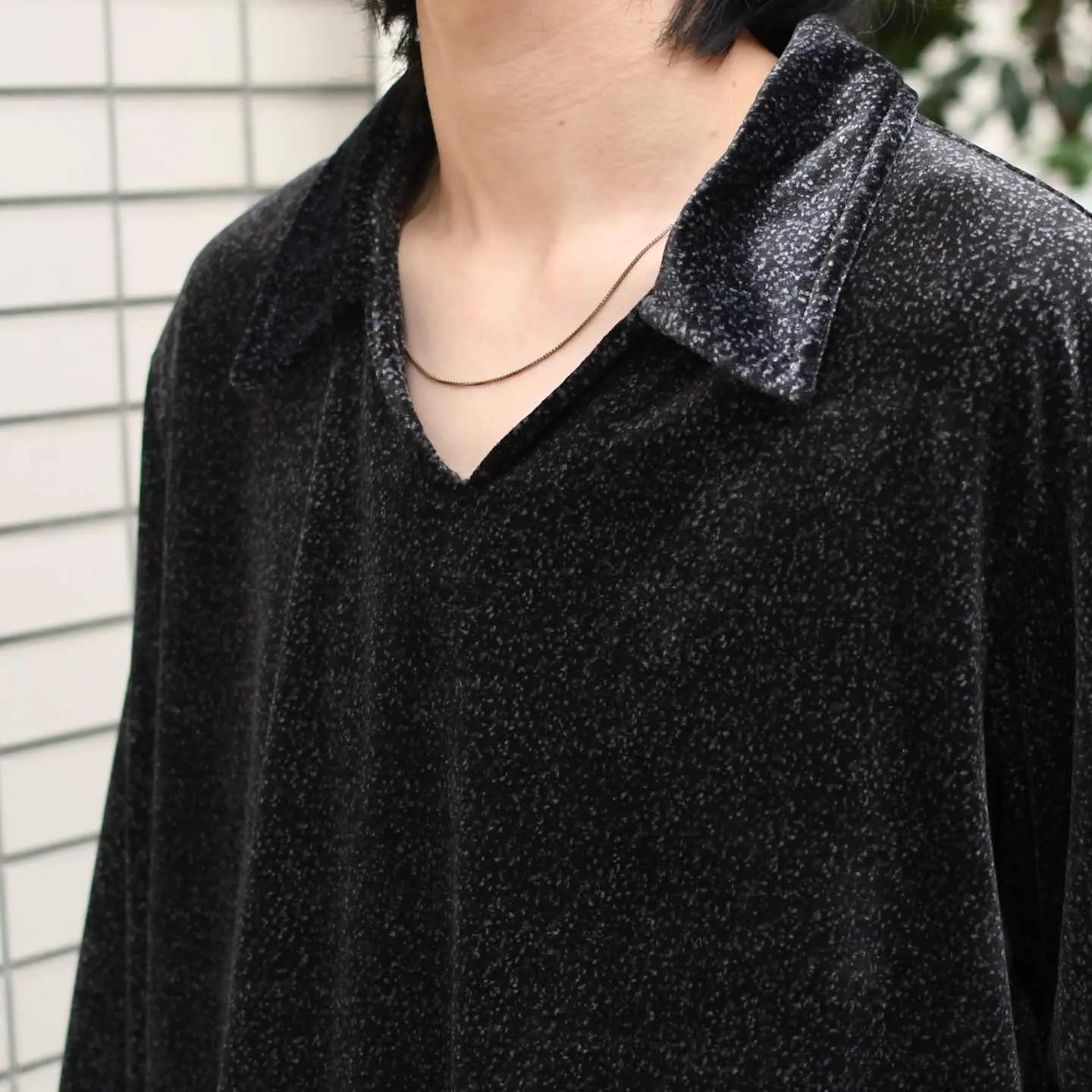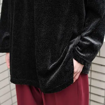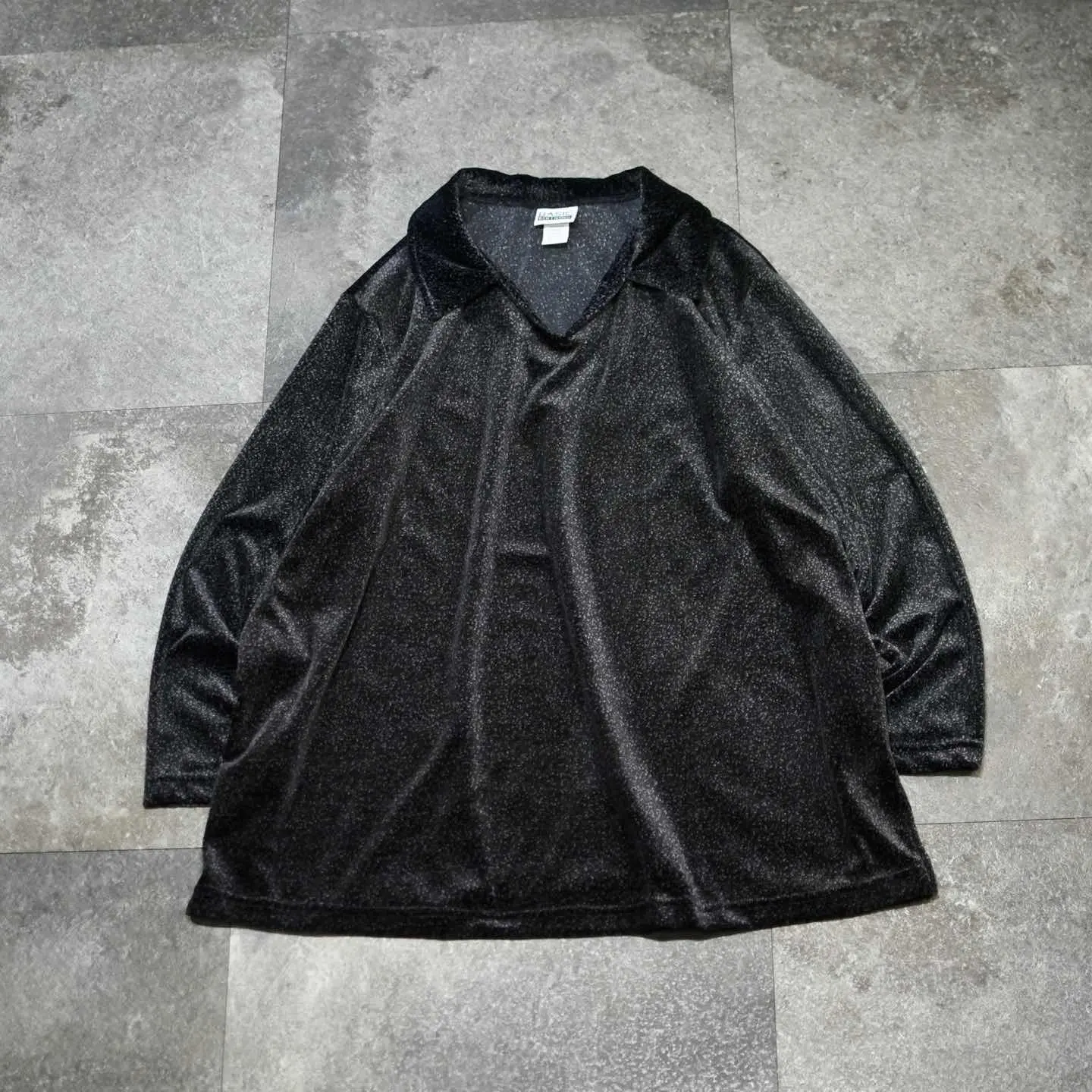 古着 ベロア スキッパー プルオーバー 総柄 柄 ブラック 黒 ポロシャツ