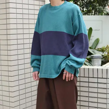 古着 Geoffrey Beene サイドスリット 2トーン コットンニット