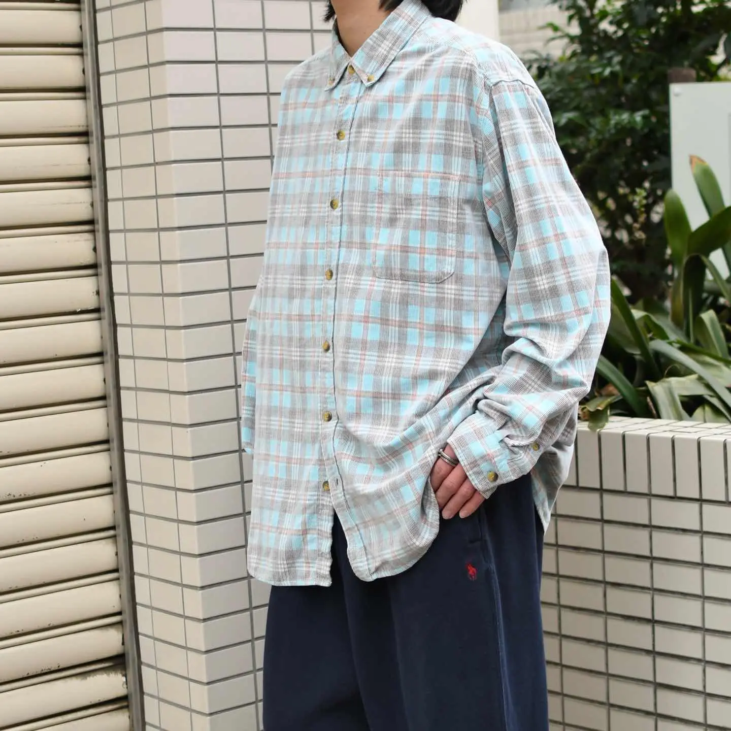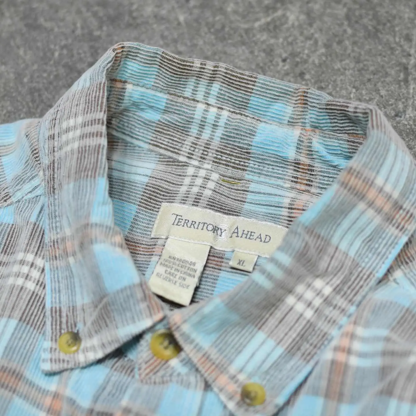 SIZE:XL 着丈80.5cm 肩幅52cm 身幅70cm 袖丈66cm fabric/cotton 着用画像 173cm/58kg 近年ようやく日の目を浴びたブランド、 The Territory Ahead。 エスニック調な色使いや、柄を用いた アイテムを多く手掛けており、独特な空気感を纏う 印象です。 それでいて袖を通しやすいのが、このブランドの 特徴ではないでしょうか。 そんなブランドからの一着。 鮮やかさを感じるカラーでありながら、 この配色にオレンジを溶け込ませるのが このブランドらしいなと。 そんな色使いから、こちらもまた良い塩梅で 独特な空気感を身に纏える気がしました。 裾のタグに綴られた当ブランドのコンセプト “Exceptional Clothing for Life’s Adventures” ”人生という冒険のための特別な服” そんなところにも惹かれました。 ※撮影状況により、実物と多少色が異なる場合が ございます。 ※古着を取り扱っているため、気づかない汚れや ほつれ等がある場合がございます。 オーバーサイズ old vintage ヴィンテージ used 80's 90's POLO RALPH LAUREN Eddie Bauer OLD GAP LANDS' END ランズエンド LLBean エルエルビーン オールドギャップ エディーバウアー ラルフローレン ブルックスブラザーズ Brooks Brothers ライトブルー 水色 BDシャツ ボタンダウンシャツ などがお好きな方 #vintage #オーバーサイズ #old #used #90s #80s #古着 #ヴィンテージ #LLBean #エルエルビーン #EddieBauer #oldgap #LANDSEND #ランズエンド #ラルフローレン #POLORALPHLAUREN #コーデュロイシャツ #チェックシャツ #ボタンダウンシャツ #BDシャツ