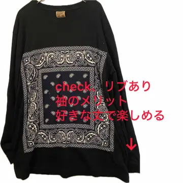 90s-00s リメイク 5.6oz コットン アメカジ バンダナL/ST 5.6ozの、最高な、コットンの、リブ袖ロンT.年中活躍します。それを、無地だと、勿体無いと思いケチらず、リメイクしました、 フロントに、バンダナ縫い付けて、重ね着も楽しめるし、個性がでる1着に仕上げました^_^ 特筆pointは、マルチすぎる、サイジングとデザイン加えたことによる、着回し力、あなたの相棒になるのは、保証します。 【例】1.コーデ、アメカジ 着画参照、羽織りもので、フロントみせ.さらな、柄bottomも対応するのみせてます、 他、オールブラックなら、モード、ノーム、 ワイドなら、大人カジュアル、 ワーク、オーバーオール、デニムなら、アメカジ、ワーク また、キレイめなら、爽やかbottomOK.対応しないシルエットや、スタイル一切なしの、パーフェクトな シルエットと、デザイン! ▷color◁ 大人気のブラック、ゆるだぼなのに、引き締まってみえる、メリットもある、 ※ブラウザで異なる場合ありますがかなり実物には、近づけてます、 ▷size◁ 平置き片面採寸【㎝表記】 表記size F 着丈/80 身幅/63 肩幅/60DS 袖丈 /65↓ DSは袖はハンガー採寸 ※多少の誤差は理解下さい 170/Mジャスト体型の私が着て、✔️参考に ジャスト オーバーサイズ ビックサイズ✔︎ 【素材】 5.6ozコットン 【状態】 最強、そもそもが、美品つかったんで、 検品、洗濯、検品で、3回チェックして発送しますので、ご安心して、お買い求め下さい!!