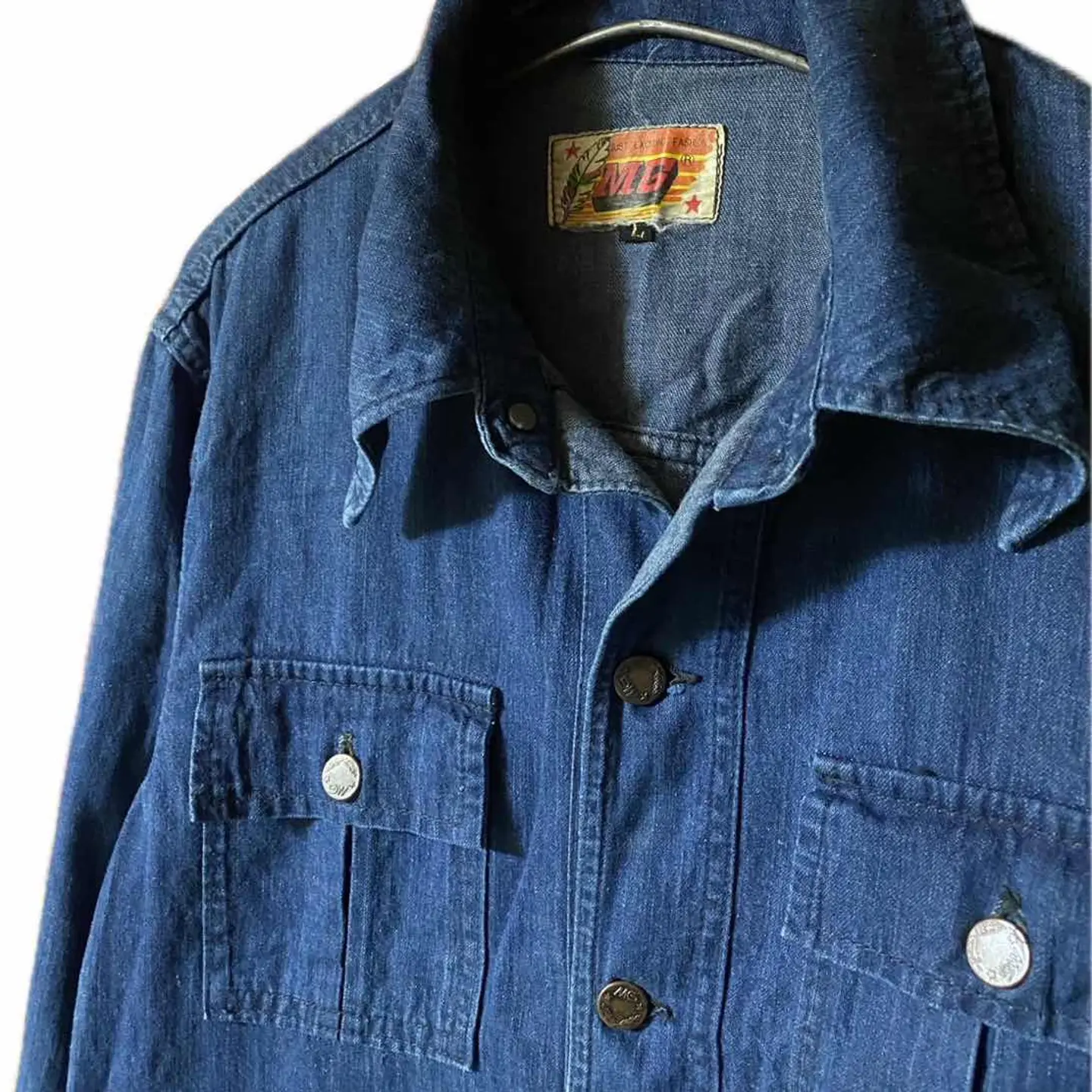 60-70sプレミア【MG】4ポケ カッター Safari coverall L premier vintage limited 【MG】の、デニムサファリカバーオールジャケットです。60.70年代頃の商品で カバーオール的な機能と鋭いカッター襟が、ヴィンテージの雰囲気抜群、 ヴィンテージ確認ポイントは全てチェックで写真に載せております。 自由を求めた時代のかっこよすぎるデニムジャケット ↓【歴史】 イブサンローラが60s発表したことにより世界的に人気がついた、Safariジャケット、次↓ ファッションは自由だと言う概念からワークアイテムだったデニムジャケットを自由を求めるヒッピーの方たちが取り入れ始めた。それがこのデニムジャケットSafariとかの始まりと言われています。 そして現代おしゃれマスターたちがこの年代背景とスタンスにリスペクトして火がついているこのジャケット、ぜひあなたのワードローブに取り入れてください 念のため、70sと明記しときます、 コーデオーバーオールベージュ、白、デニムでもよい、に、インナーロゴTと、柄シャツアクセント アメカジワークミックスです^_^、参考に、 ▷color◁ 大人気の濃紺 ※ブラウザで異なる場合ありますがかなり実物には、近づけてます、 ▷size◁ 平置き片面採寸【㎝表記】 表記size 着丈/80 身幅/53 肩幅/47 袖丈 /64 DSは袖はハンガー採寸 ※多少の誤差は理解下さい 170/Mジャスト体型の私が着て、✔️参考に ジャスト オーバーサイズ✔︎ ビックサイズ 【素材】 denim 【状態】 よい、程よい雰囲気が、今後どんどん、あなただけ1着にそだちます、 検品、洗濯、検品で、3回チェックして発送しますので、ご安心して、お買い求め下さい!!